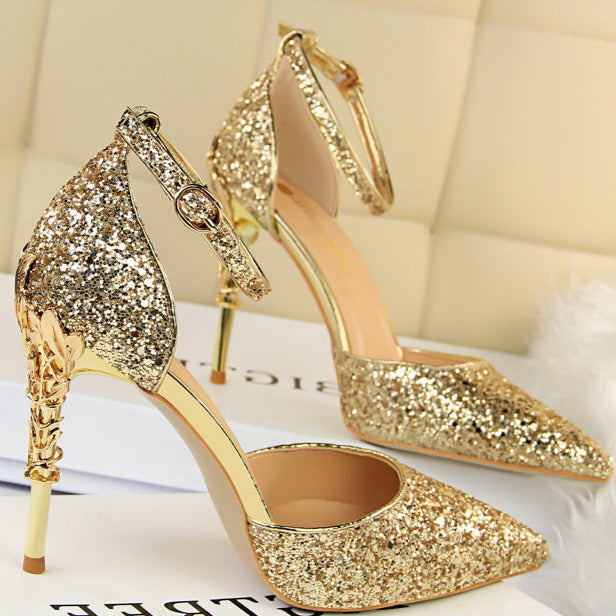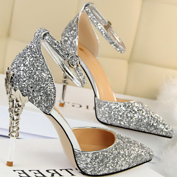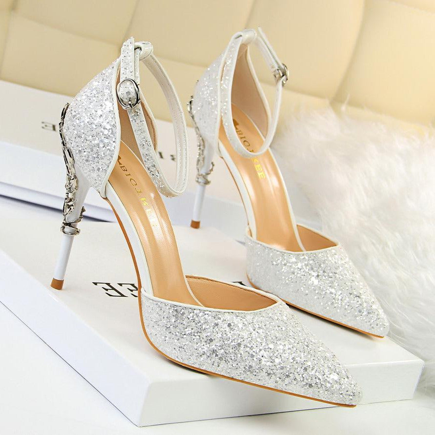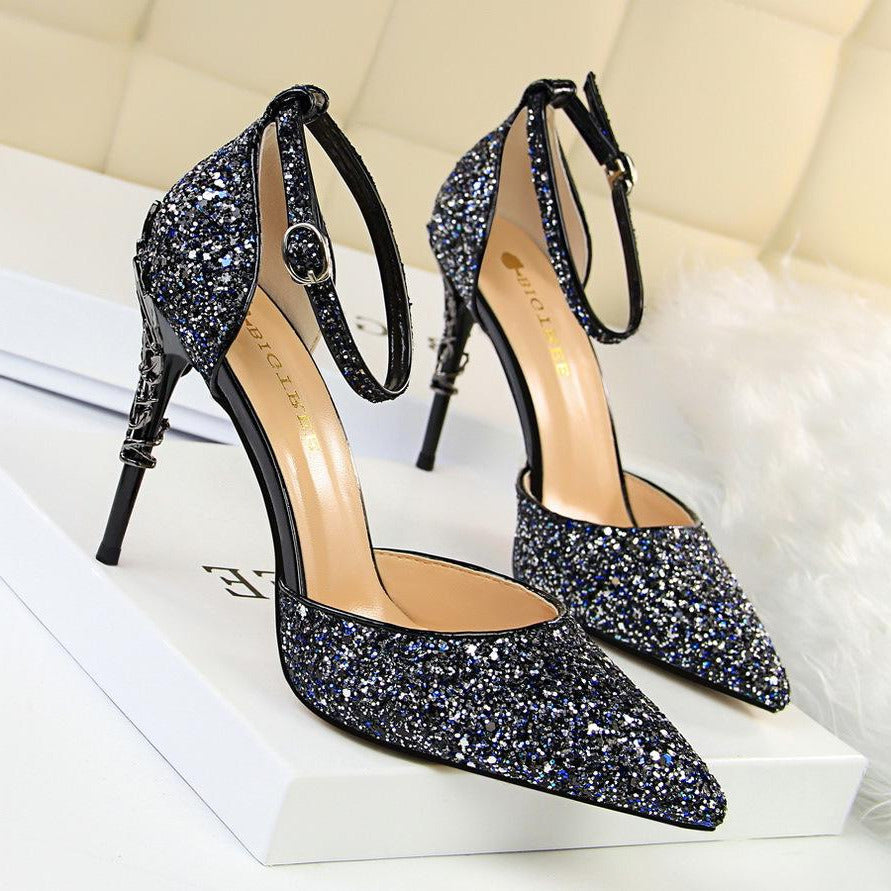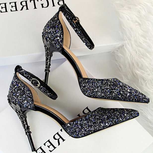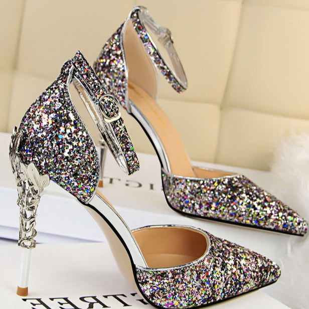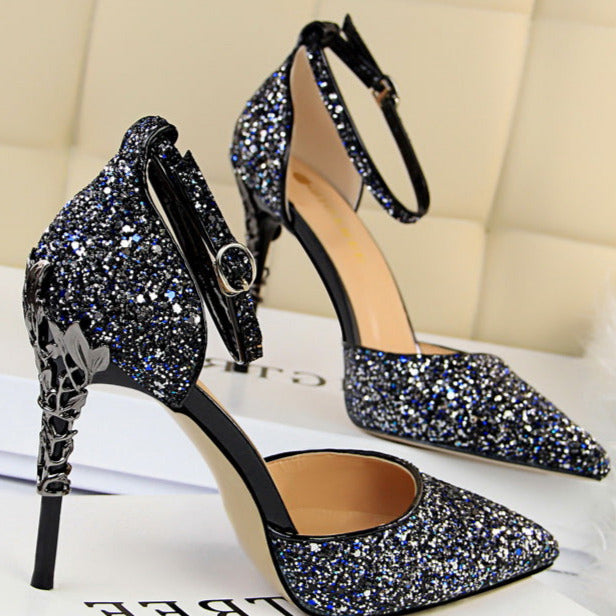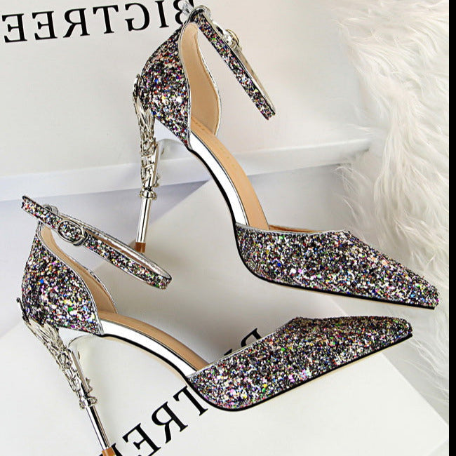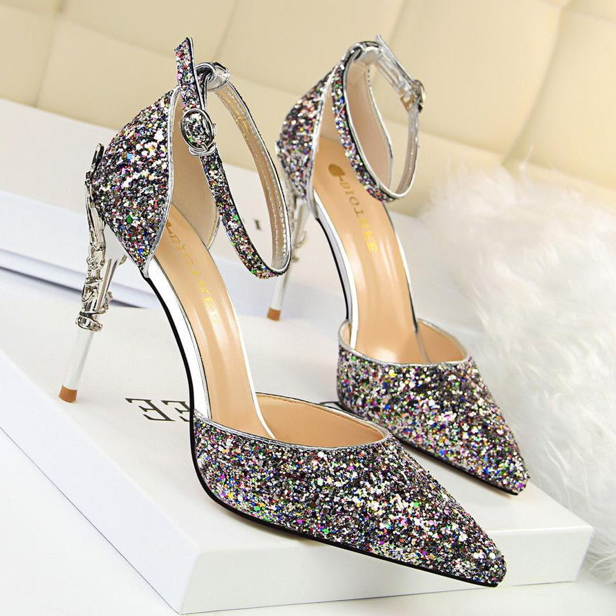 Glitter Point Toe Ankle Strap Sandals