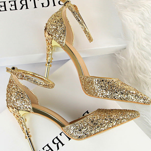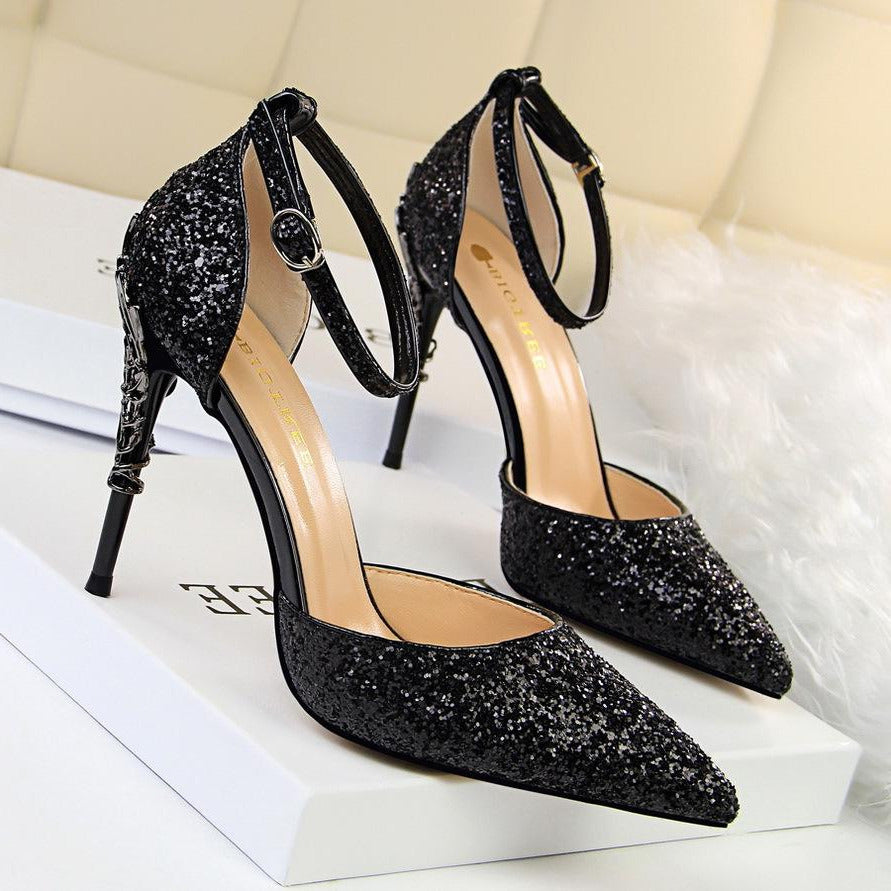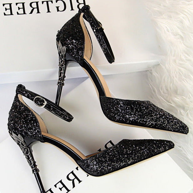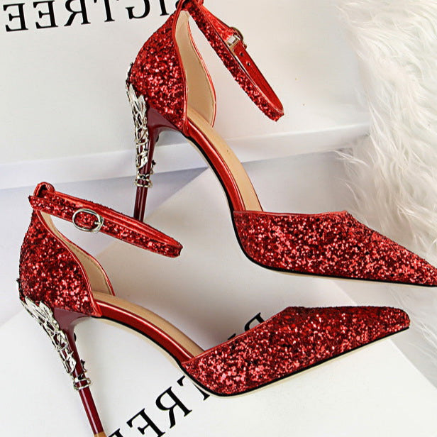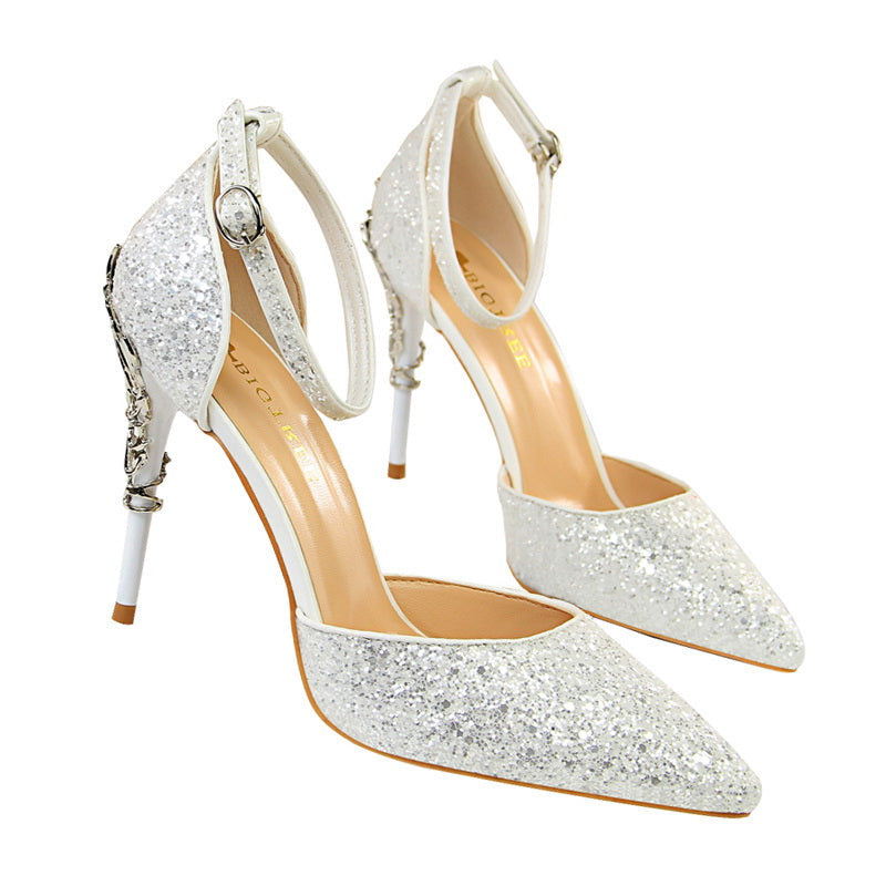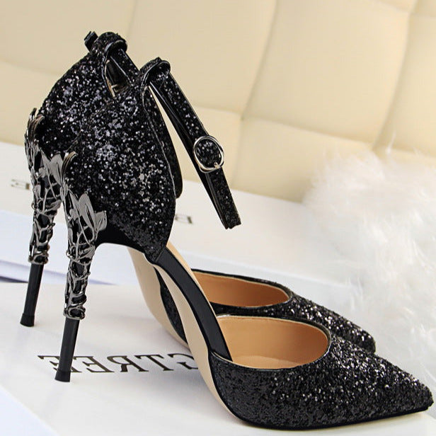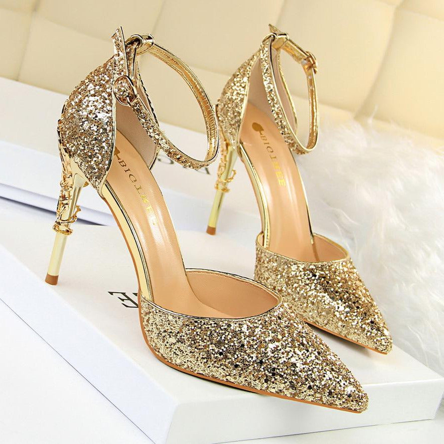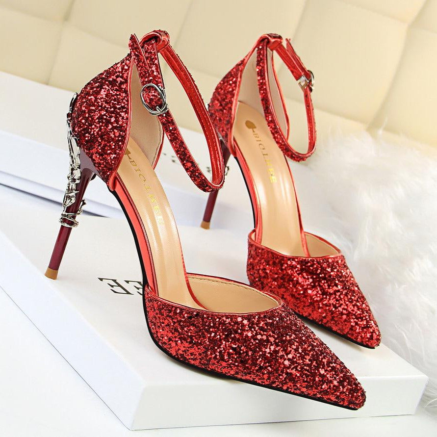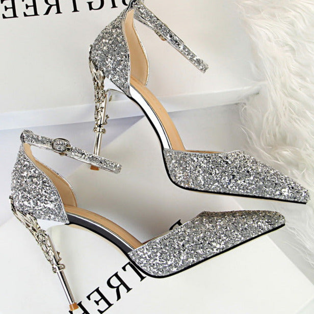Glitter Point Toe Ankle Strap Sandals