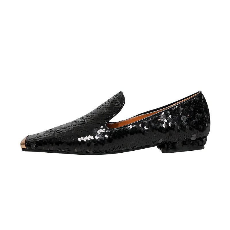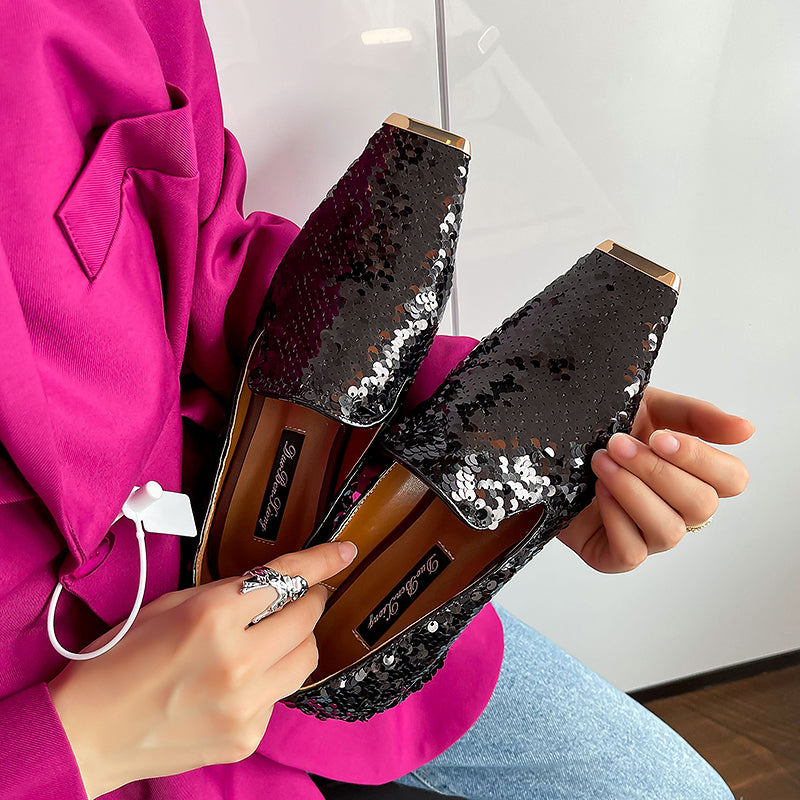 Introducing our newest addition to the shoe collection. black sequin flats! These shoes are perfect for any formal or special occasion. They feature a chic square toe design and beautiful sequin details. They are sure to make you stand out in any crowd.