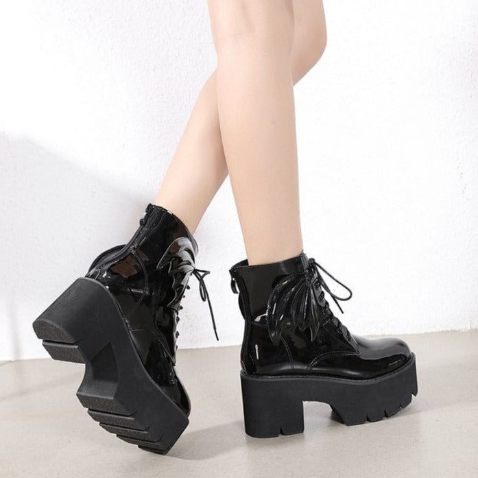 Halloween British Style Thick Heeled Patent Leather Martin Boots