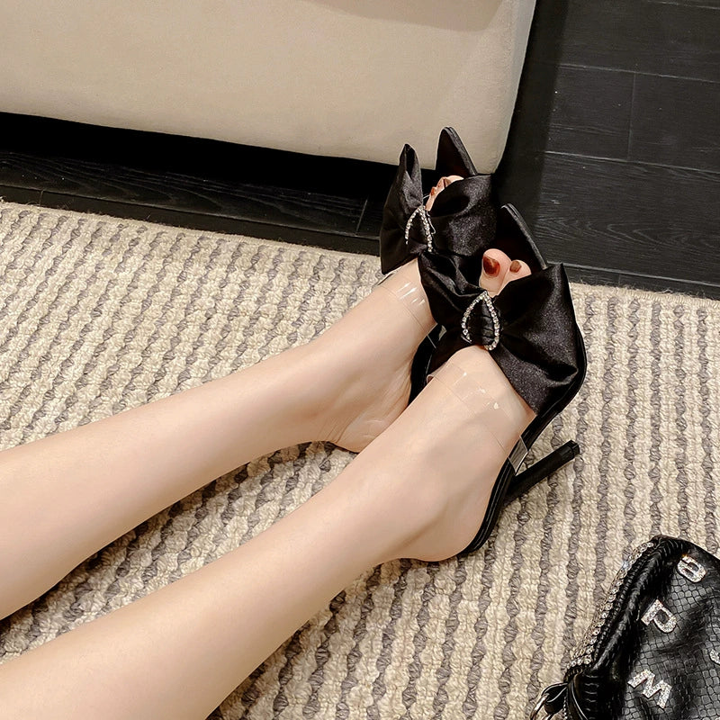 Diseño elegante y moderno: estas sandalias cuentan con un diseño de lazo y correa de rinetona, puntera abierta y tacones de aguja, lo que las convierte en una opción de moda para cualquier atuendo.
