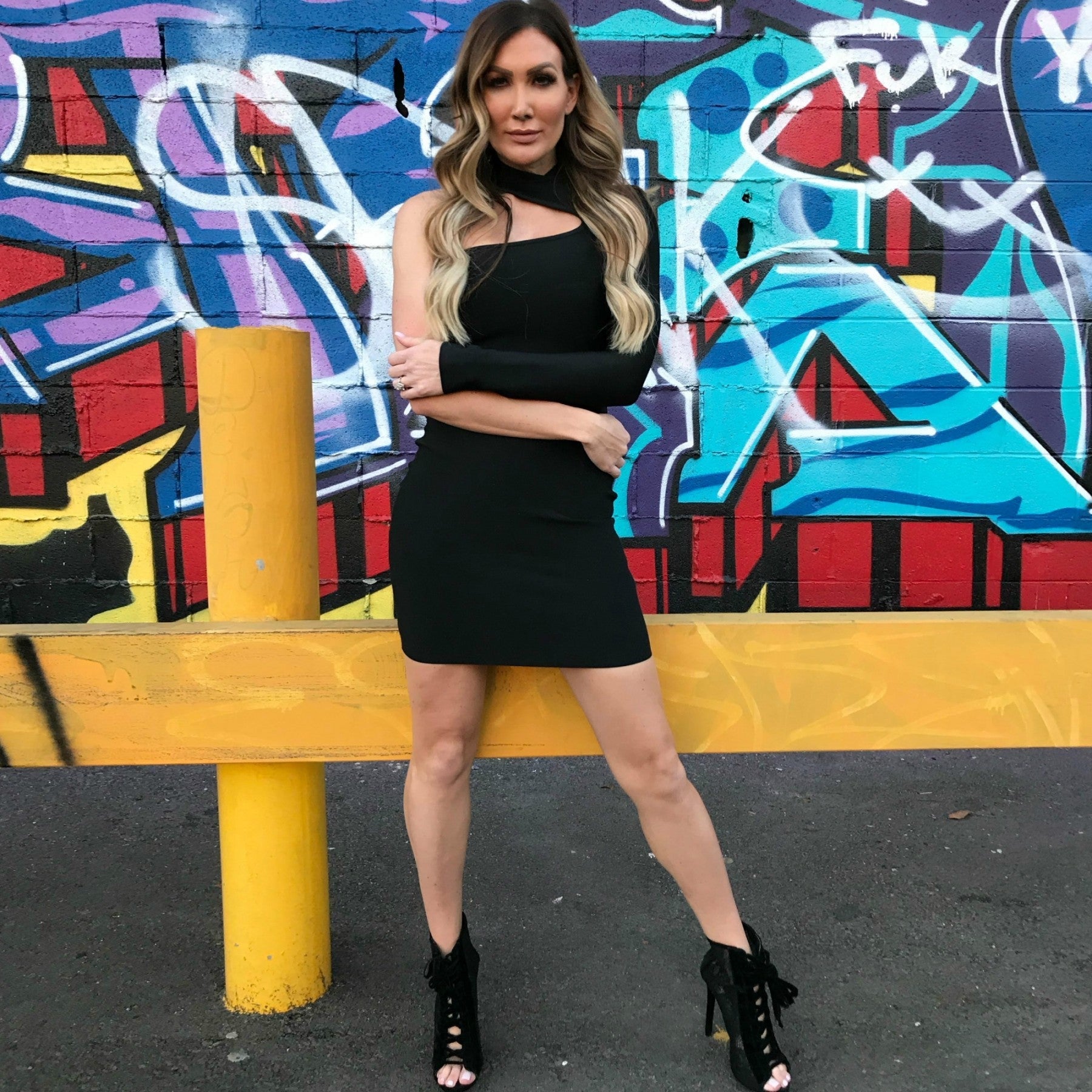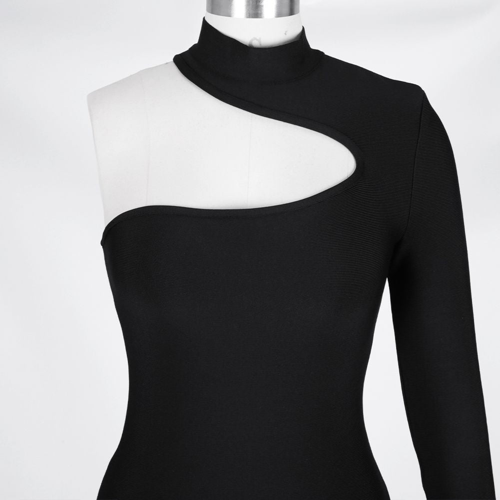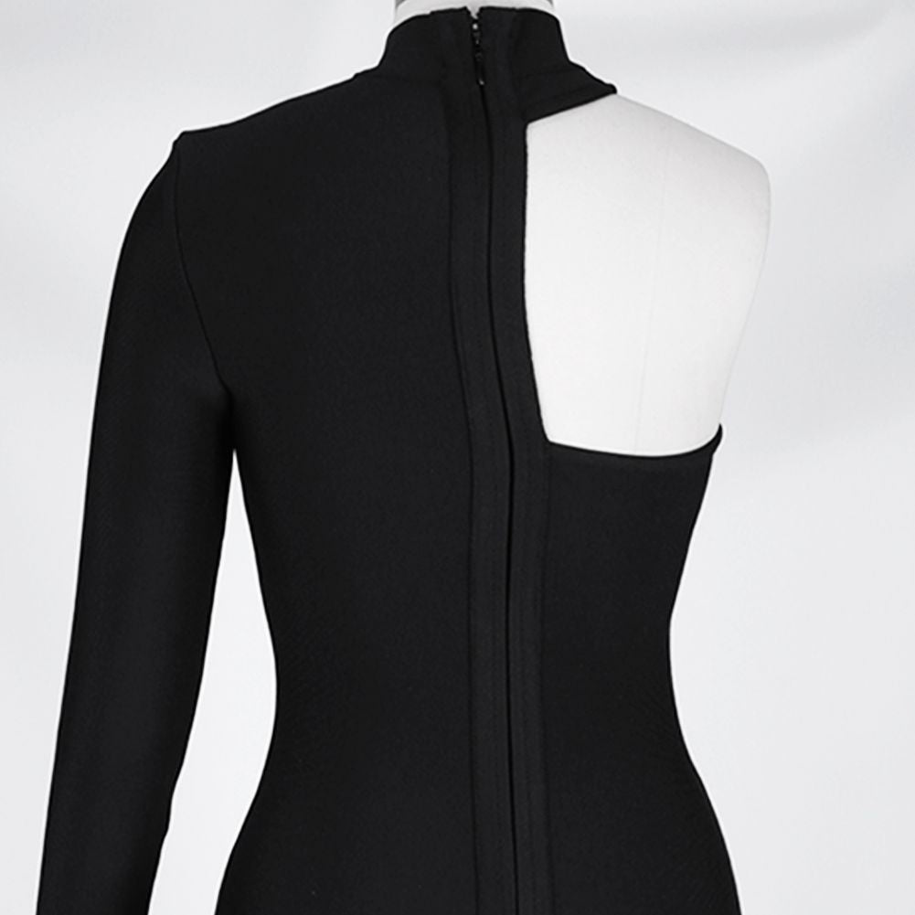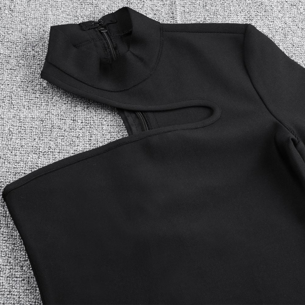 High Neck Long Sleeve Asymmetrical Mini Bandage Dress PZ19187