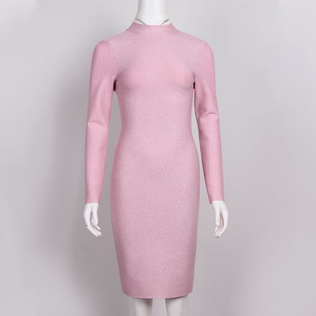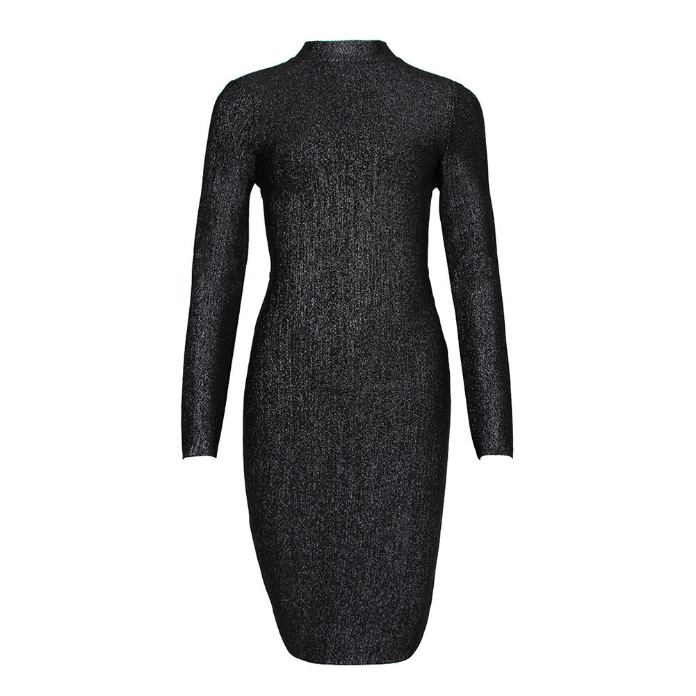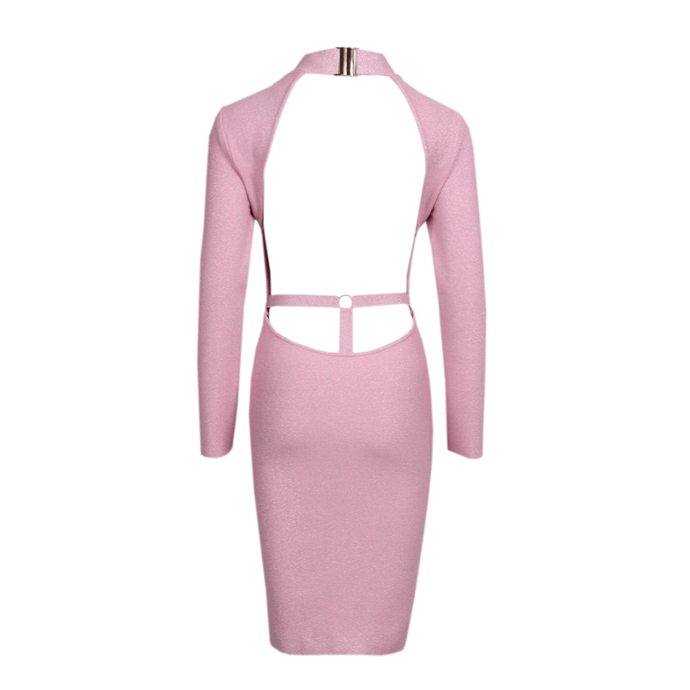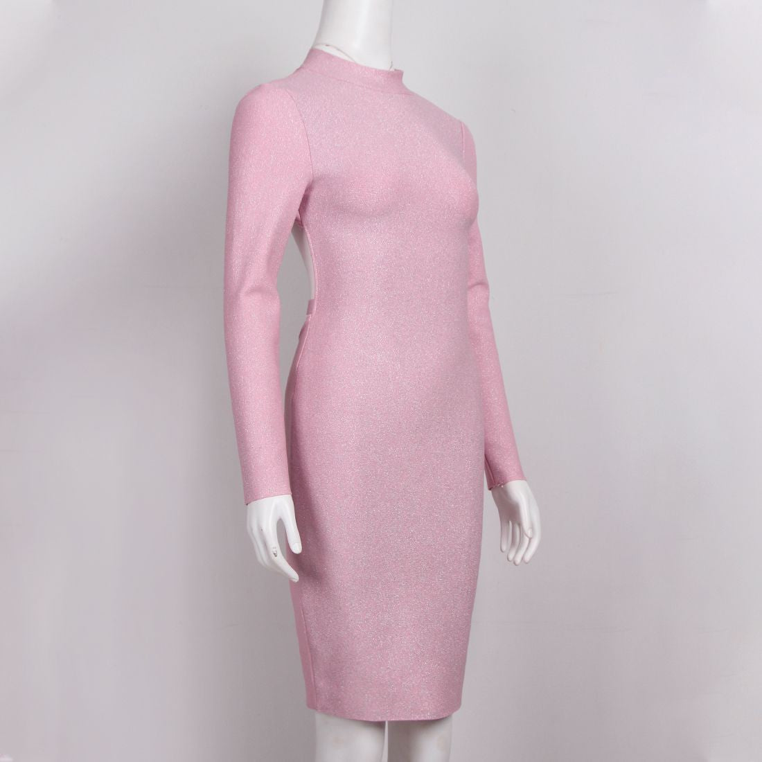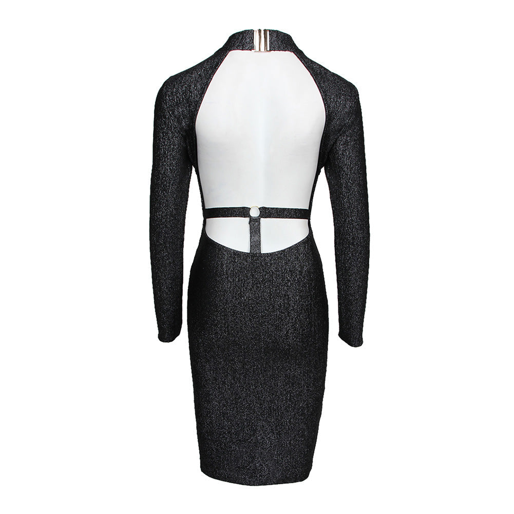 High Neck Long Sleeve Backless Midi Bandage Dress
