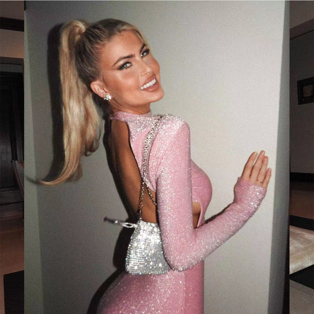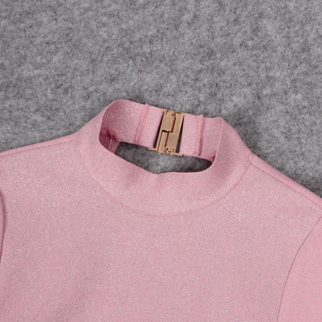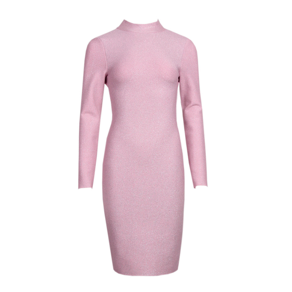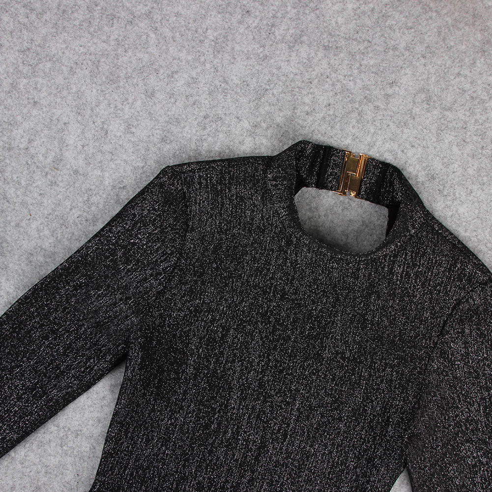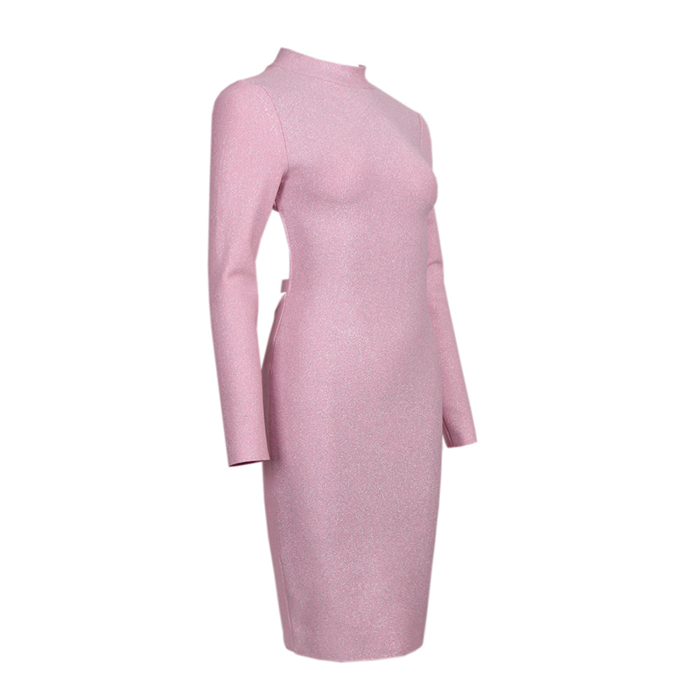 High Neck Long Sleeve Backless Midi Bandage Dress
