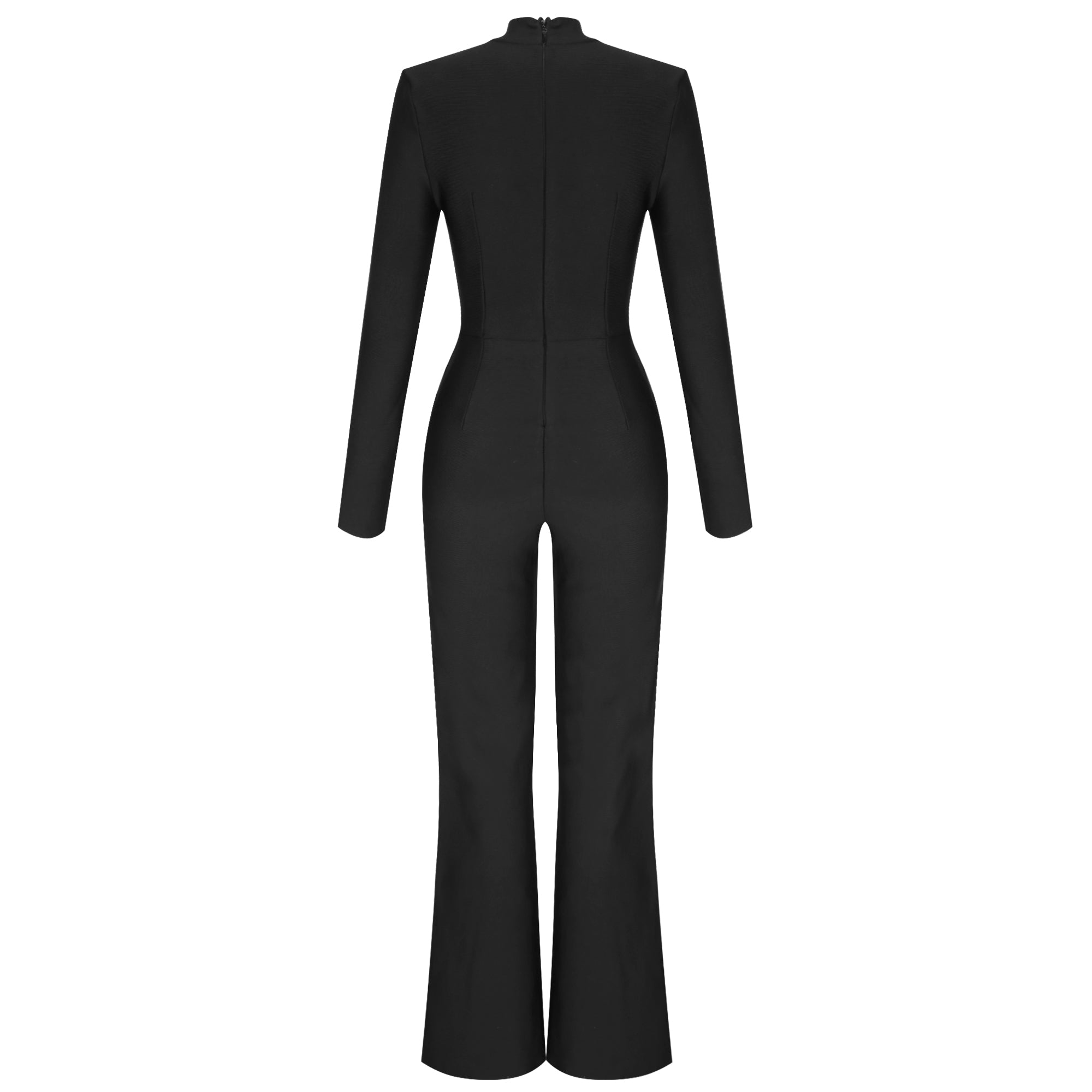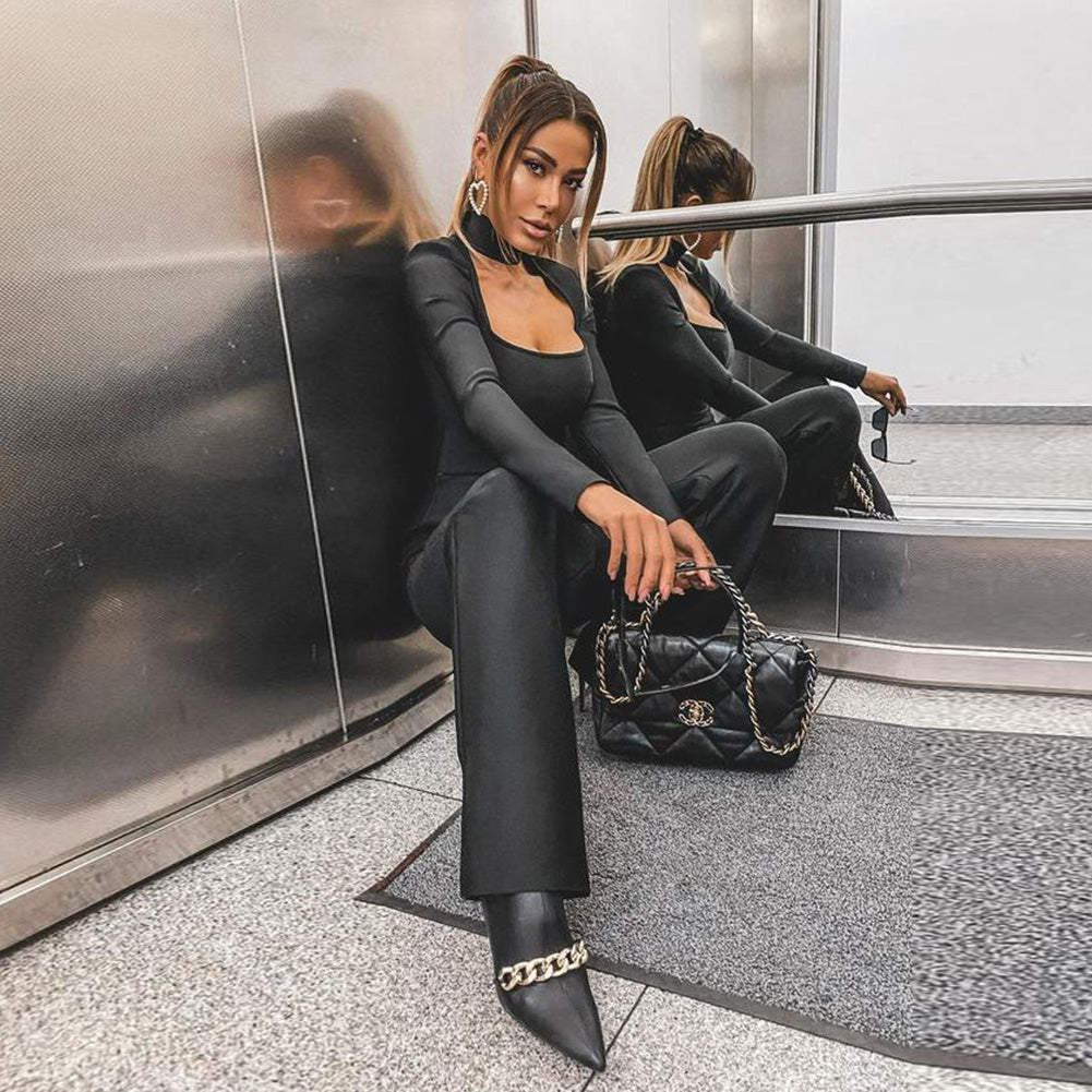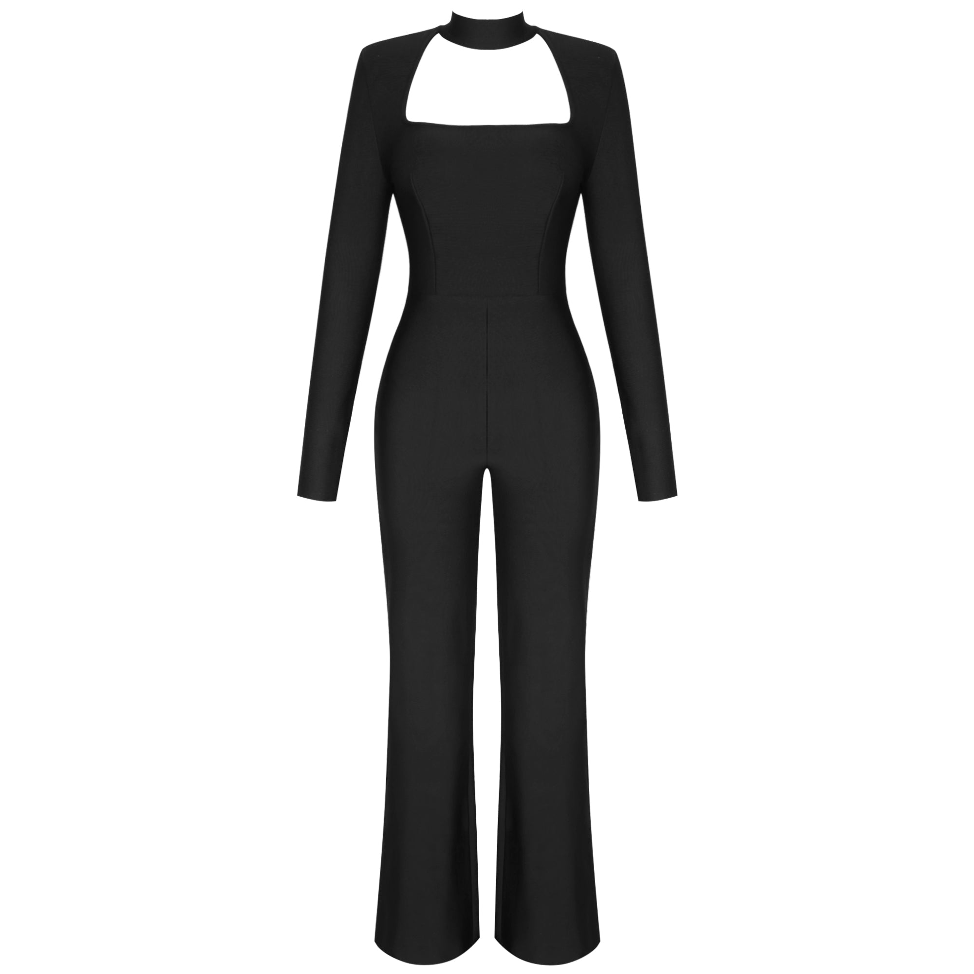 High Neck Long Sleeve Cut Out Bandage Jumpsuit