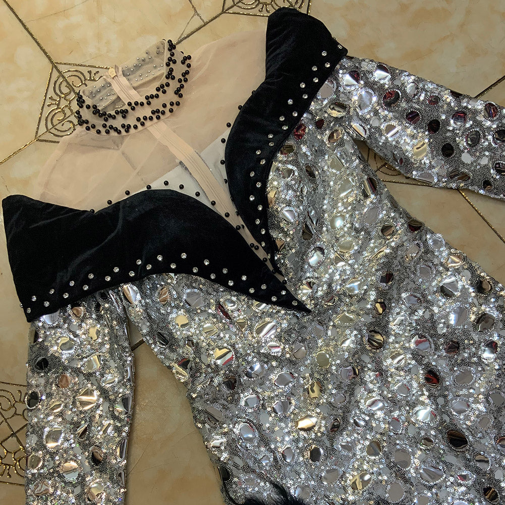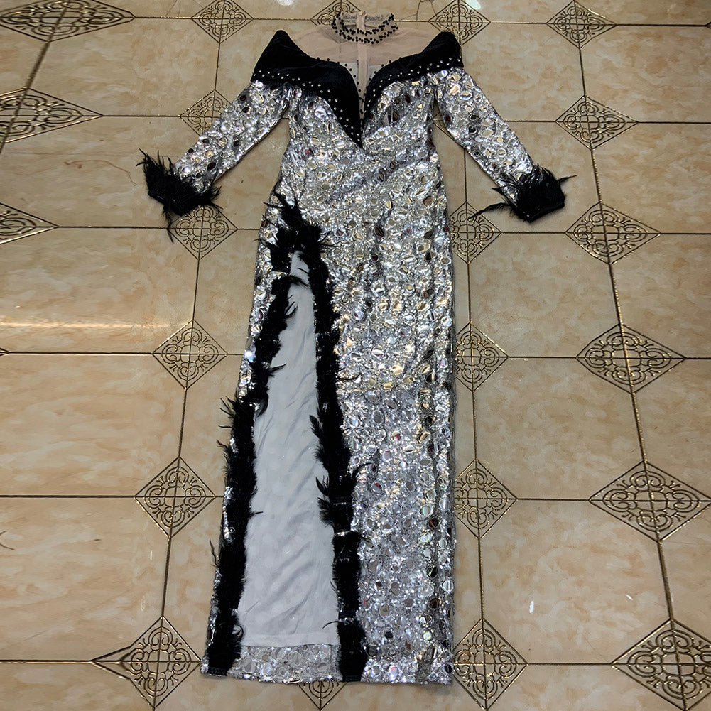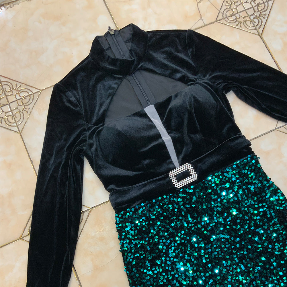 High Neck Long Sleeve Maxi Sequined Bodycon Dress