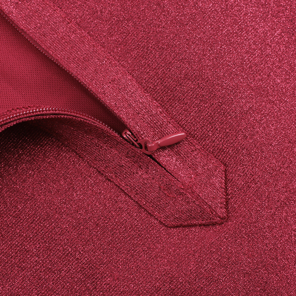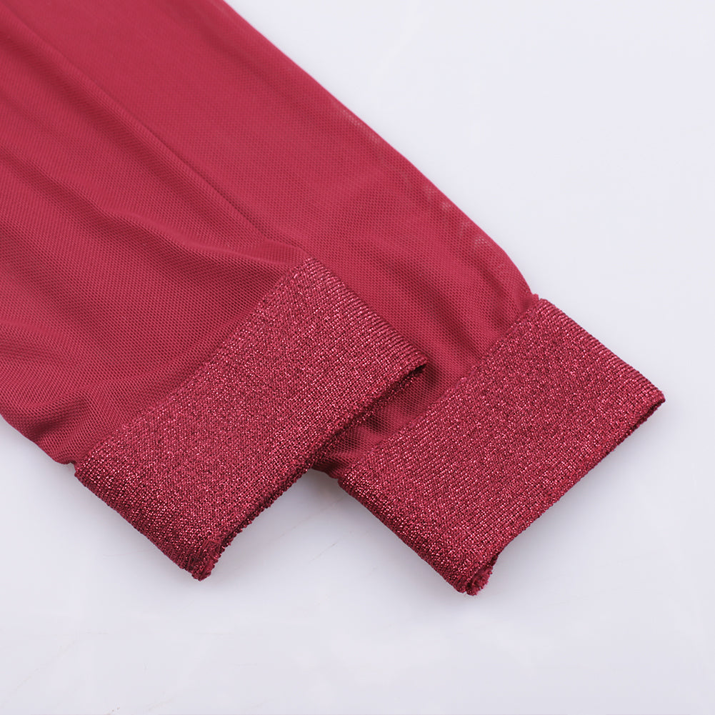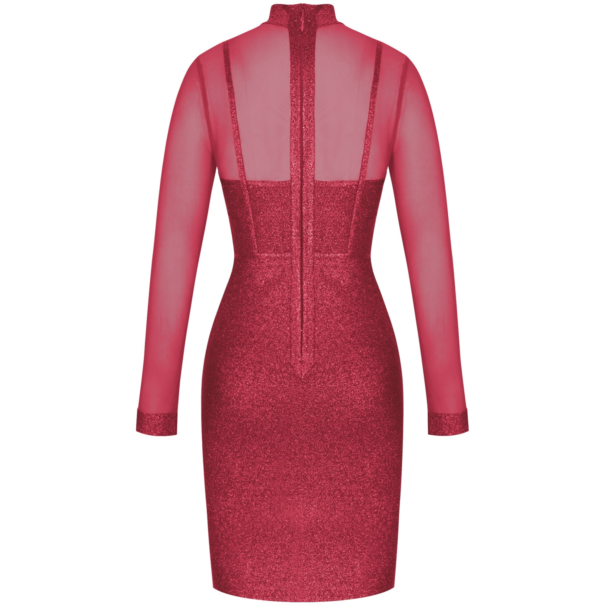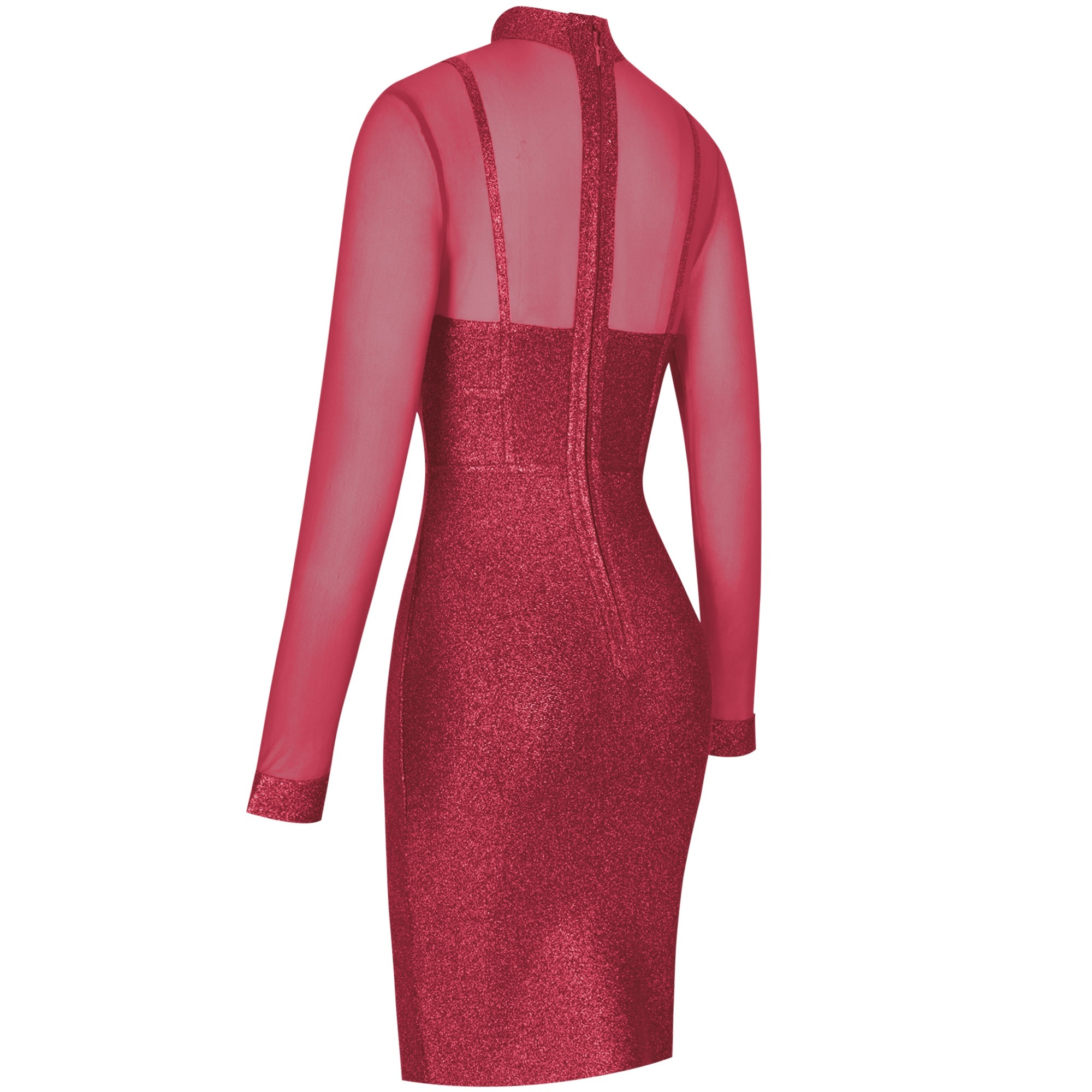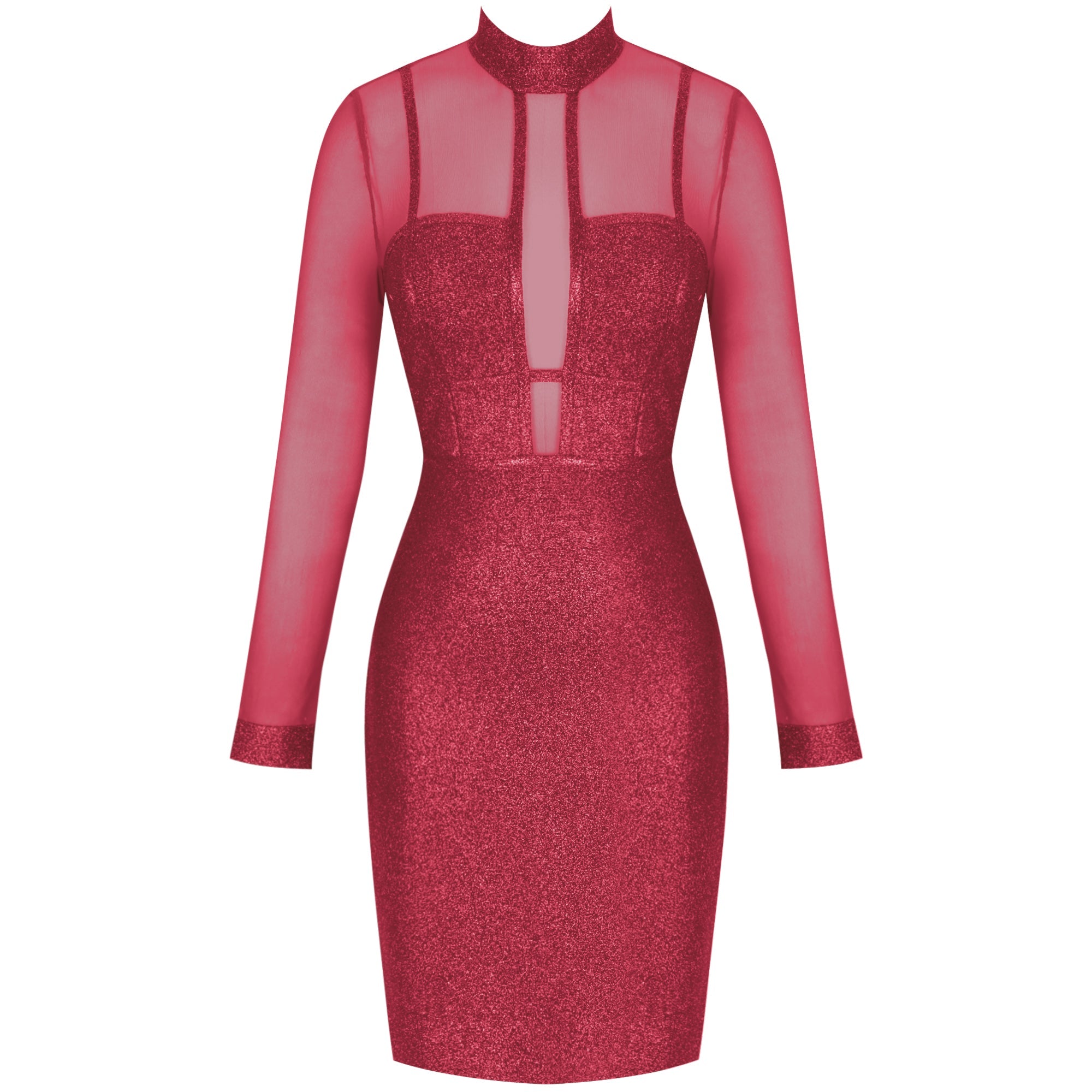 High Neck Long Sleeve Mesh Midi Bandage Dress