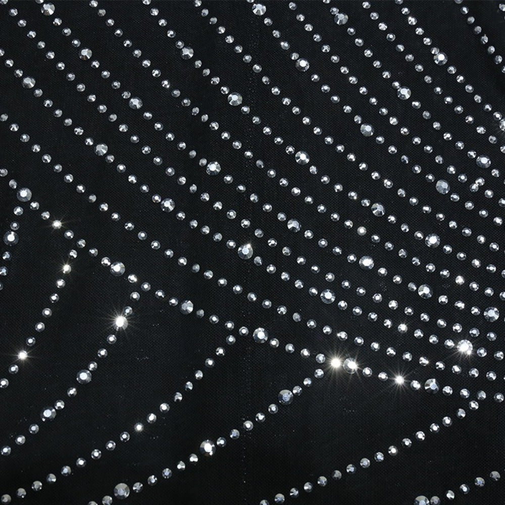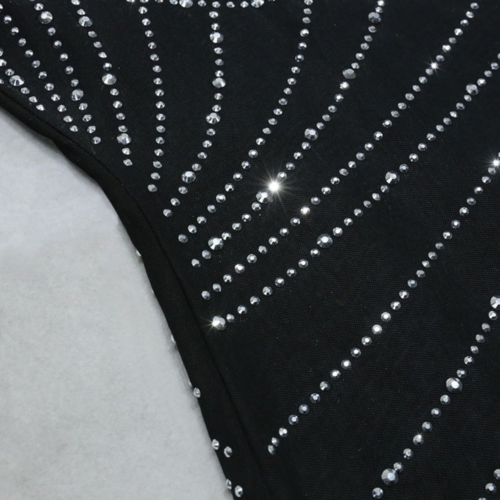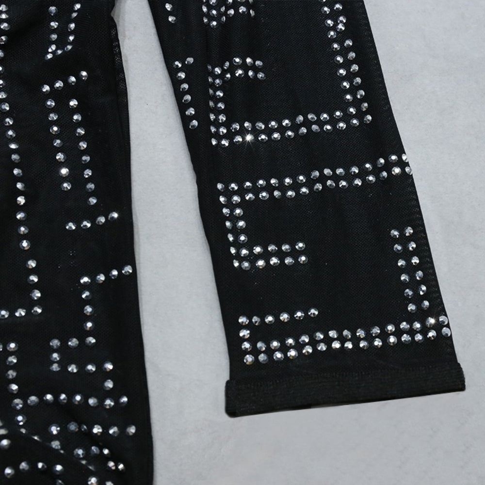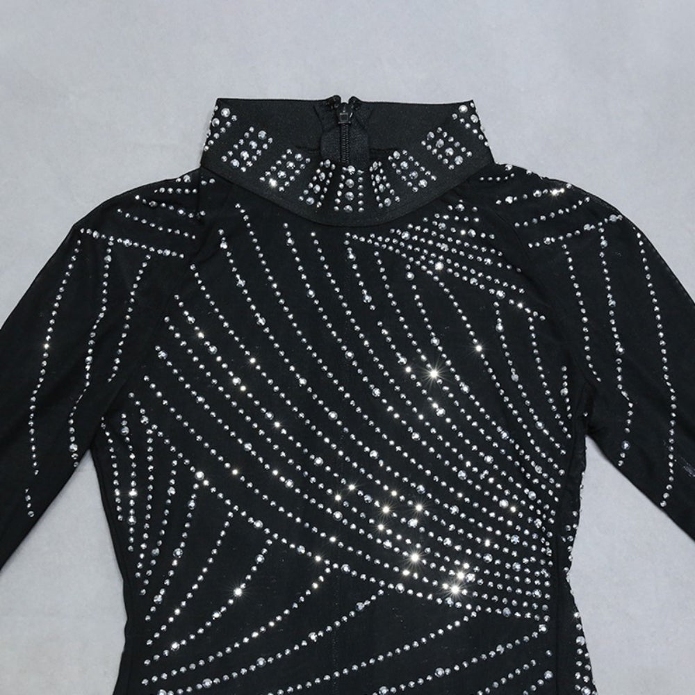 High Neck Long Sleeve Midi Rhinestone Bandage Dress
