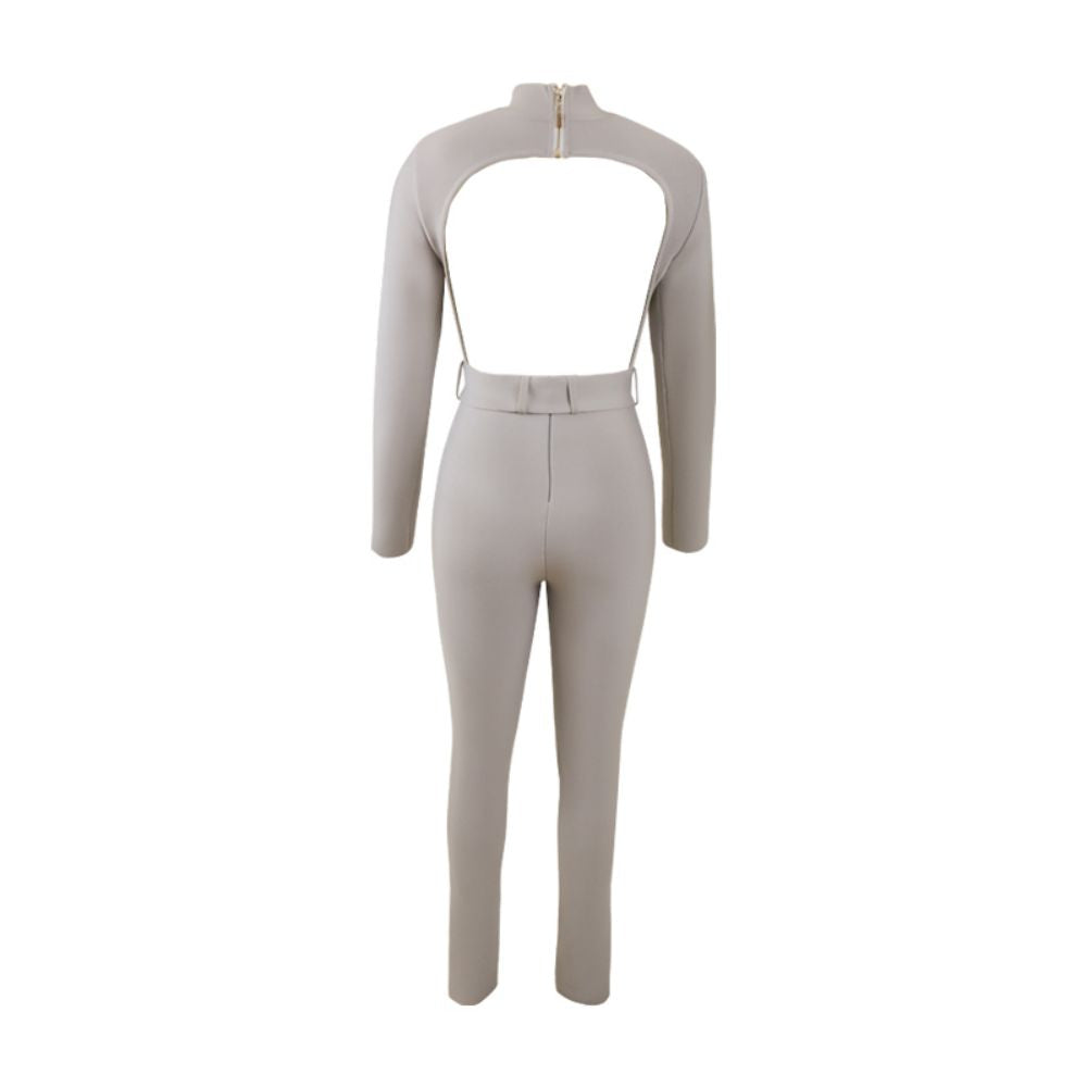 High Neck Long Sleeve With Belt Bandage Jumpsuit