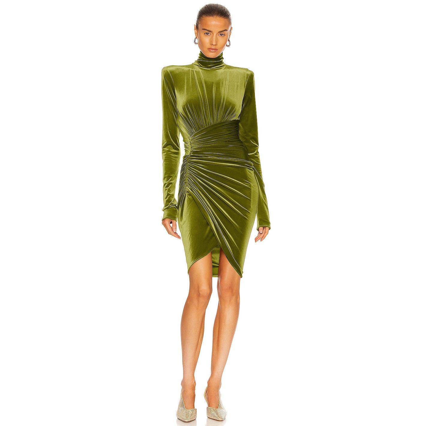 Crushed velvet fabric with front ruched detail.