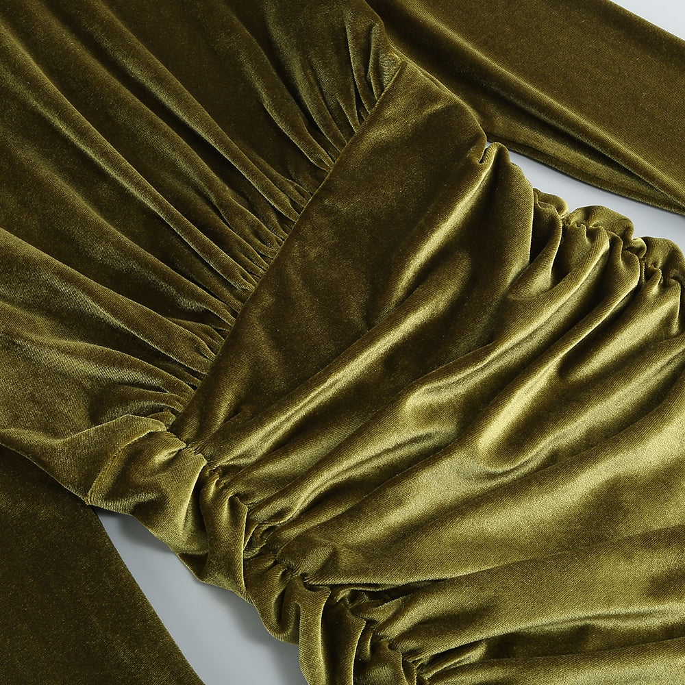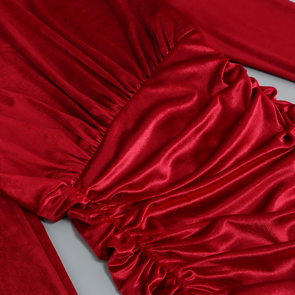 High Neck Long Sleeves Velvet Dress