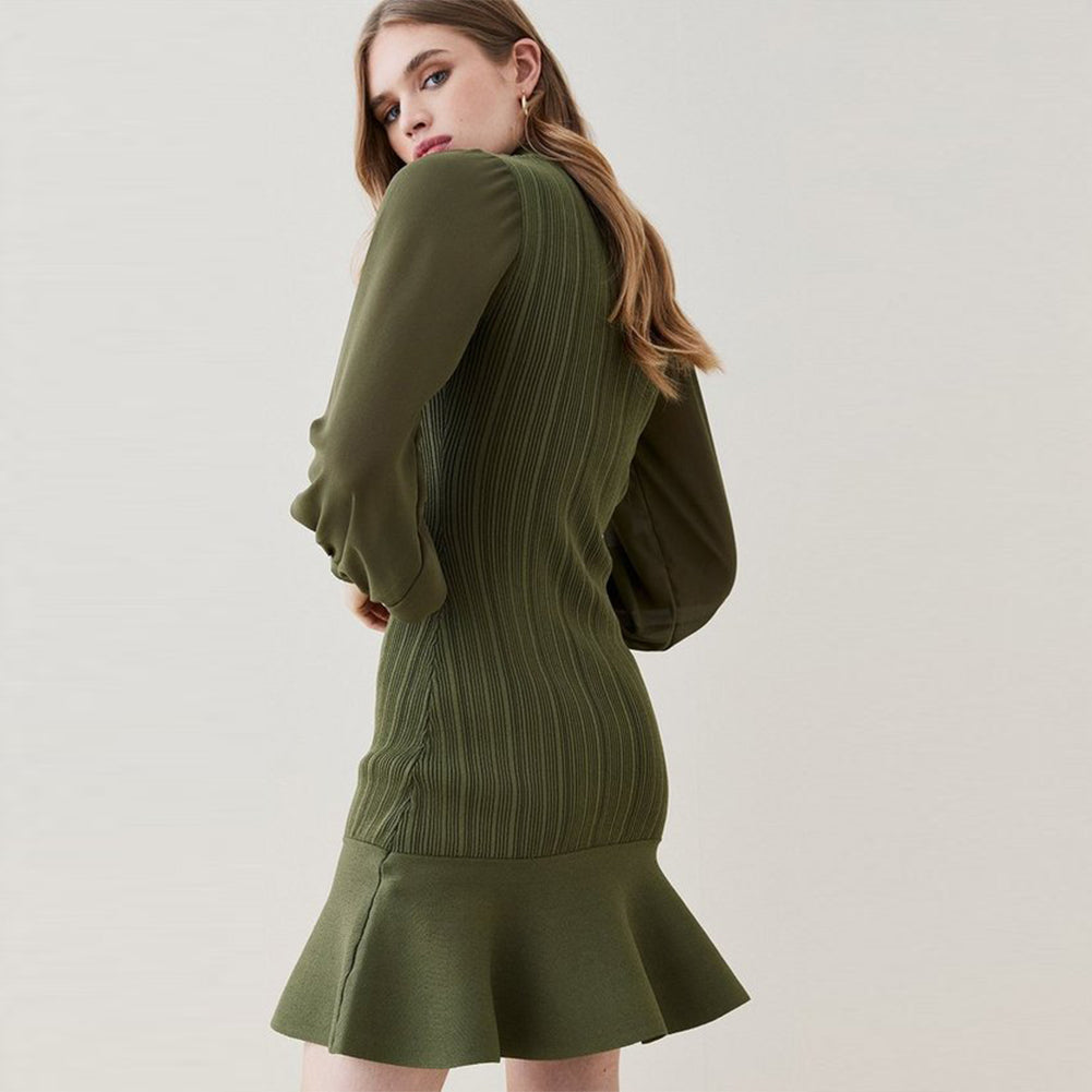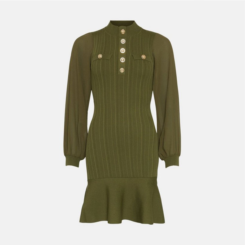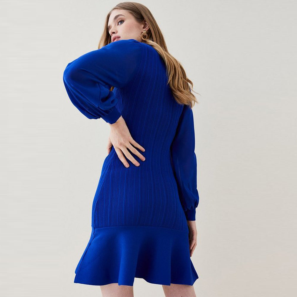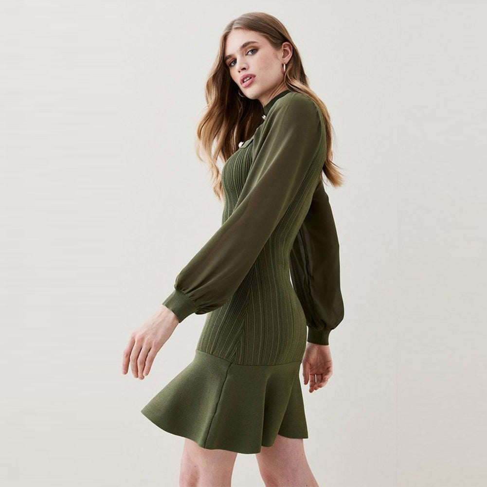 High Neck Metal Ornamental Buckle Mini Bandage Dress