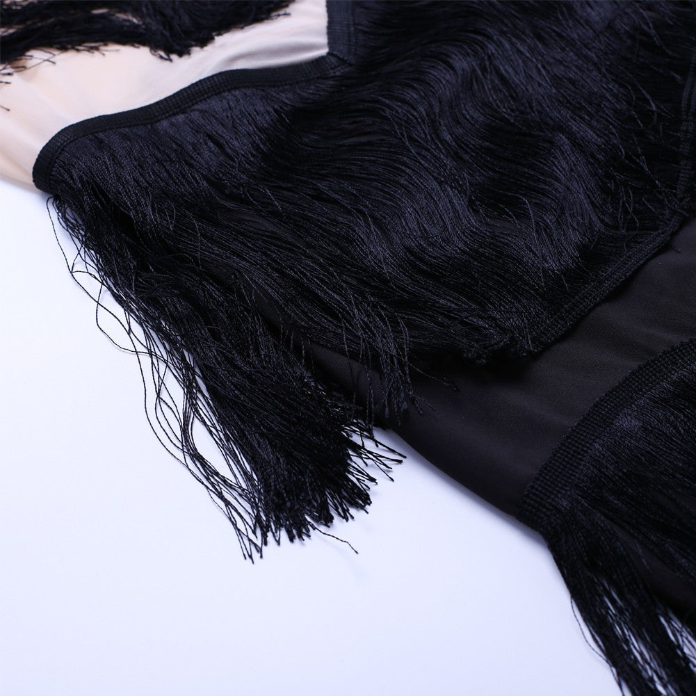 High Neck Mid Sleeve Tassels Mini Bandage Dress HJ454