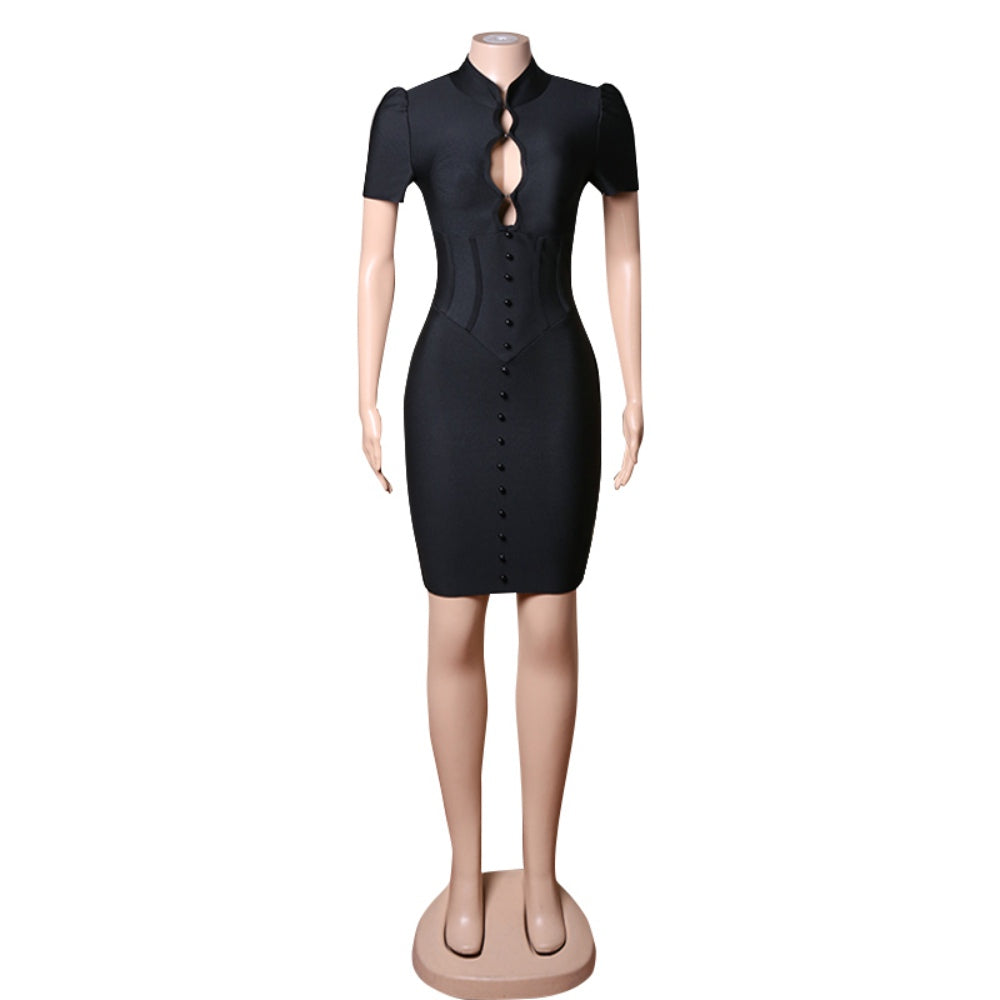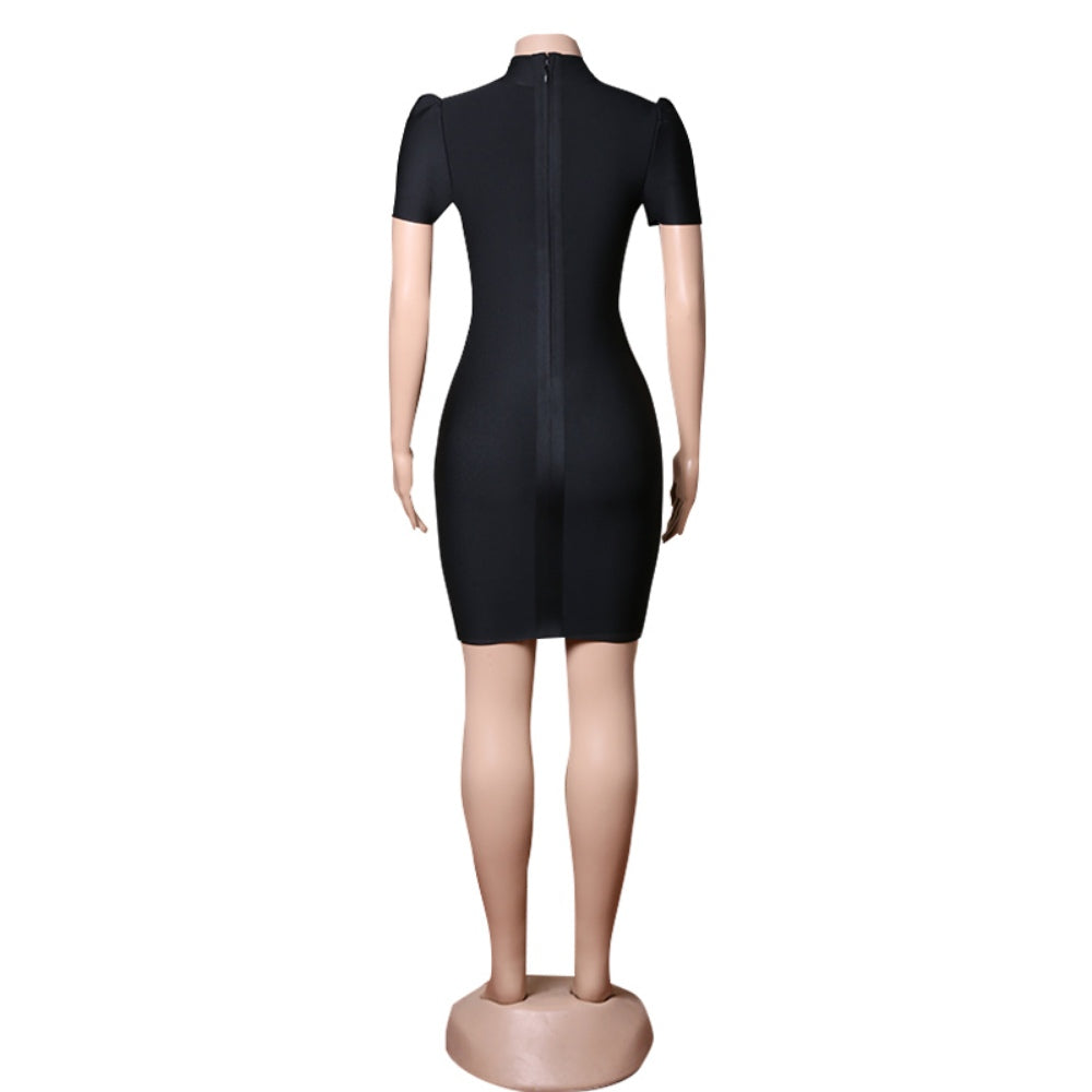 High Neck Short Sleeve Mini Cut Out Bandage Dress