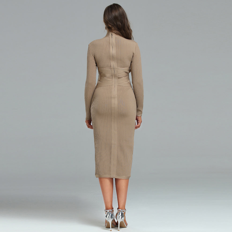 Take a risk in this High Neck Striped Midi Bandage Dress! With its bold stripe pattern. you'll stand out from the crowd and make a statement. Its midi length will empower you to take on any challenge without fear. Dare to be the trendsetter you are meant to be.