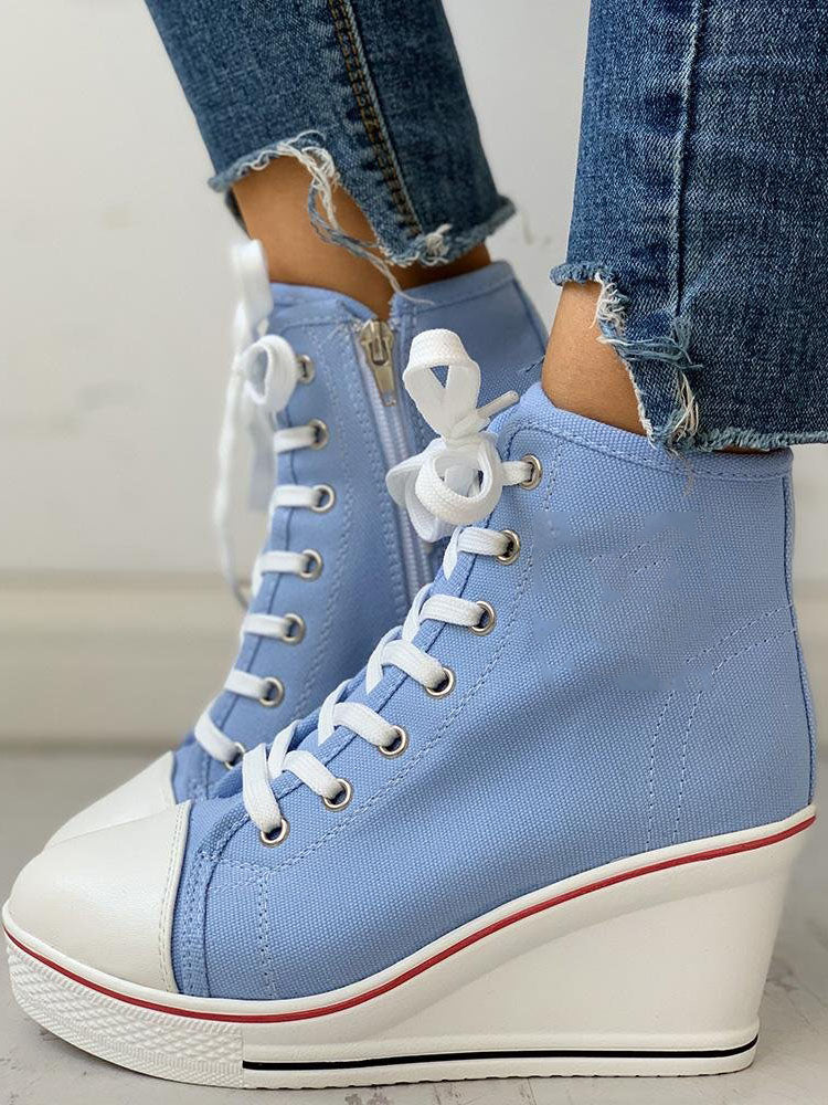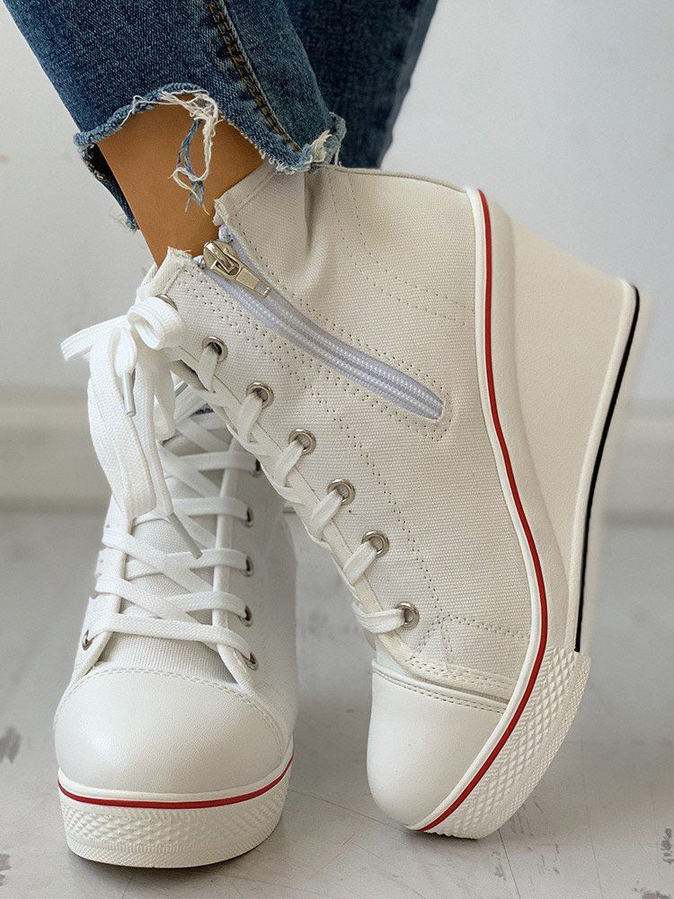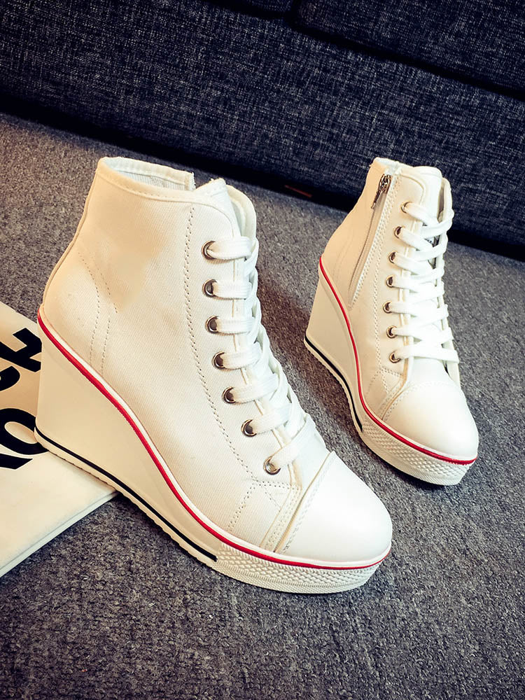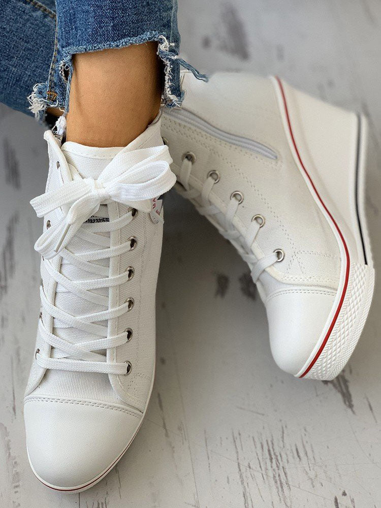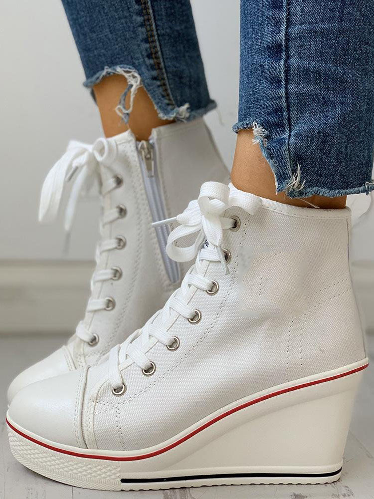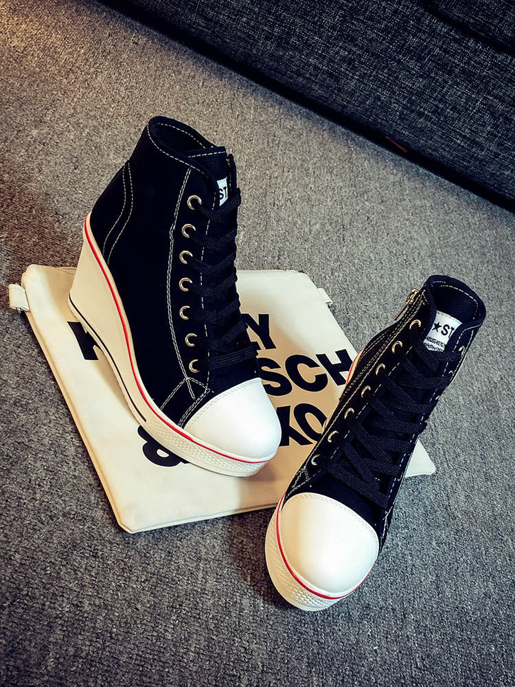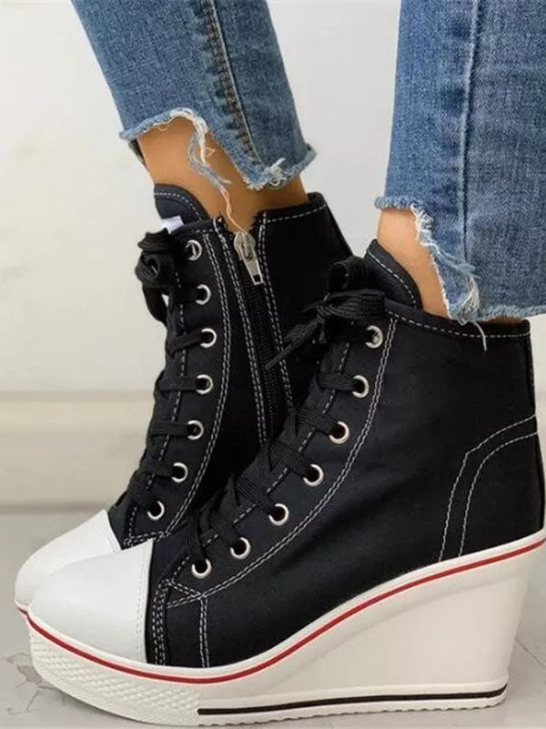 Lace-Up Thick Soled Heel Canvas Sneakers