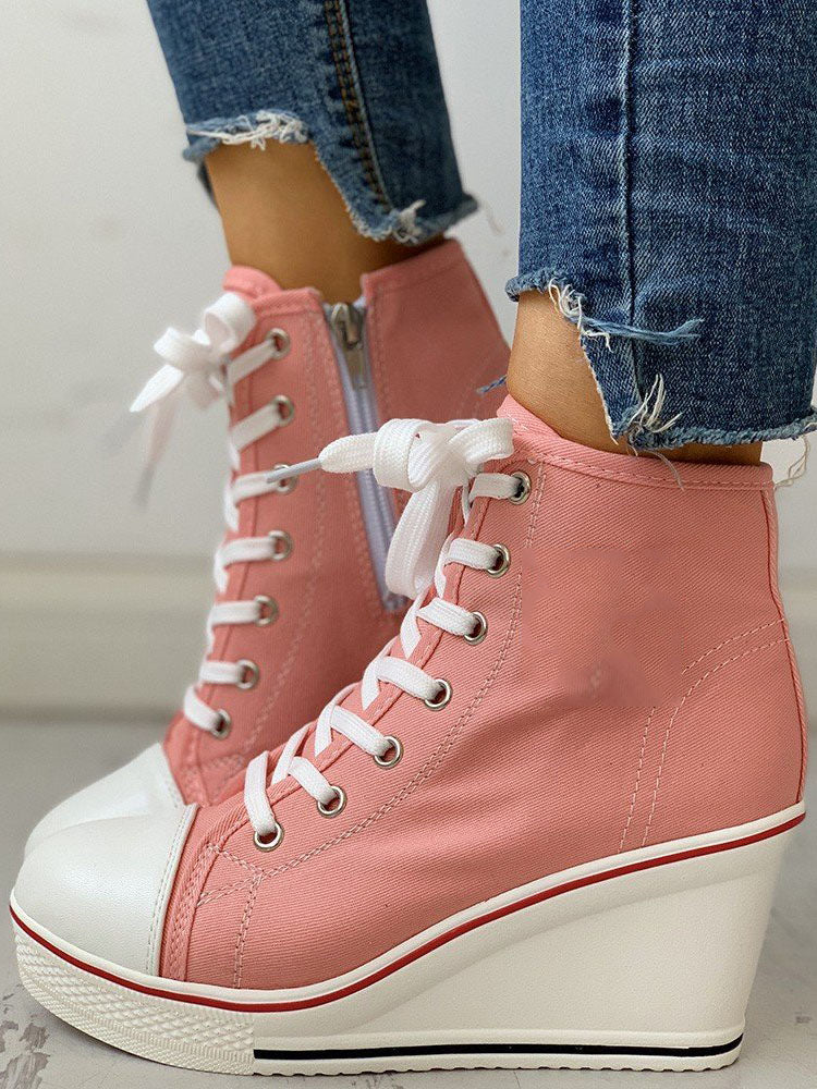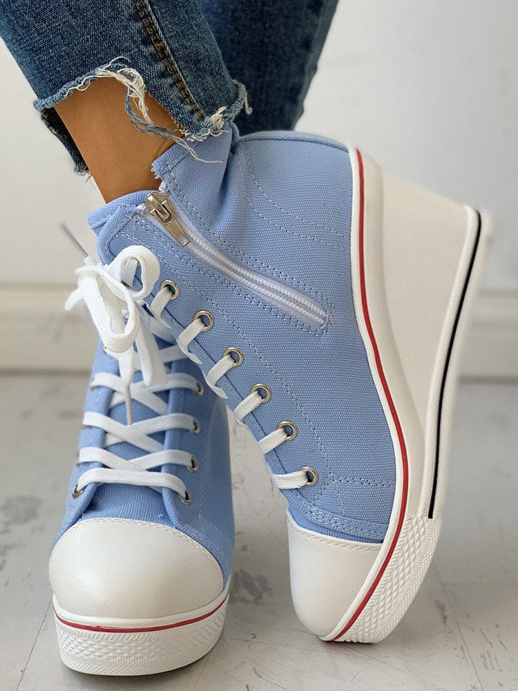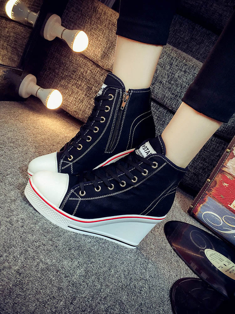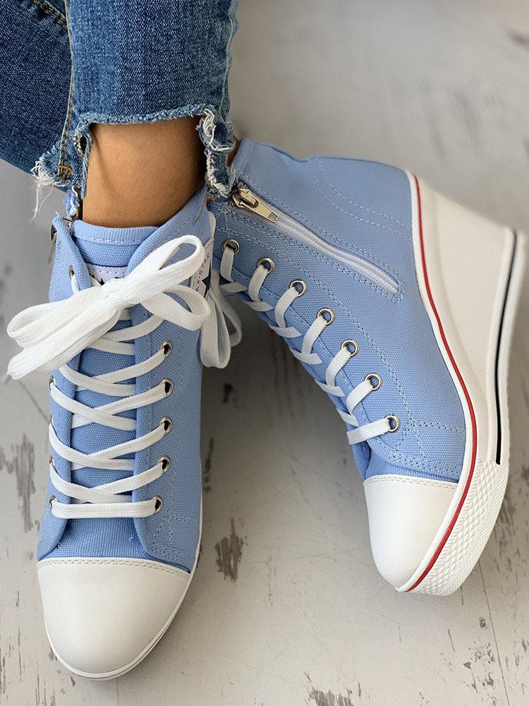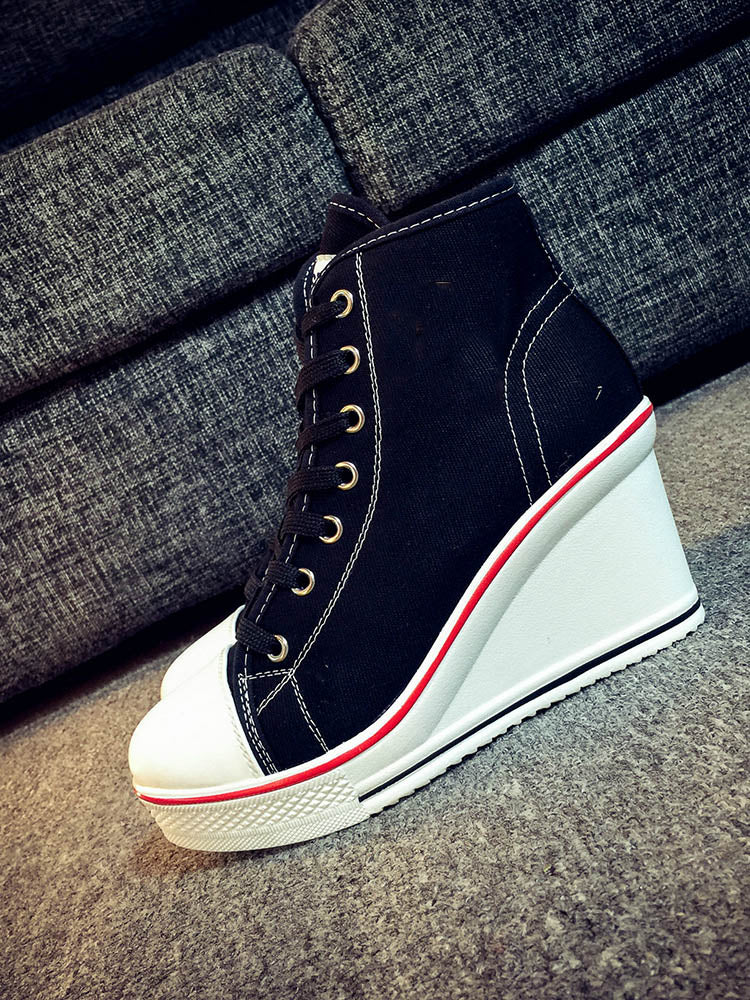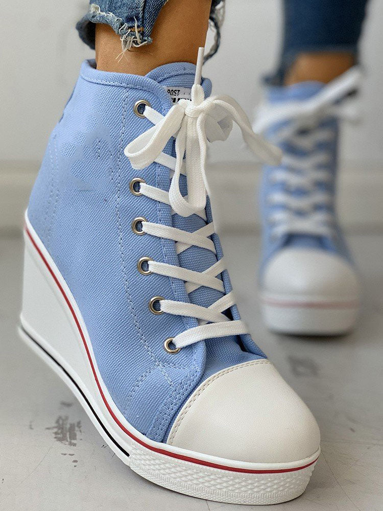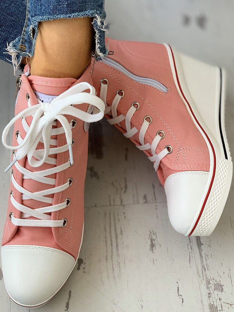 Lace-Up Thick Soled Heel Canvas Sneakers