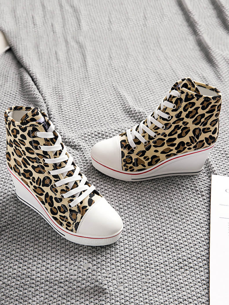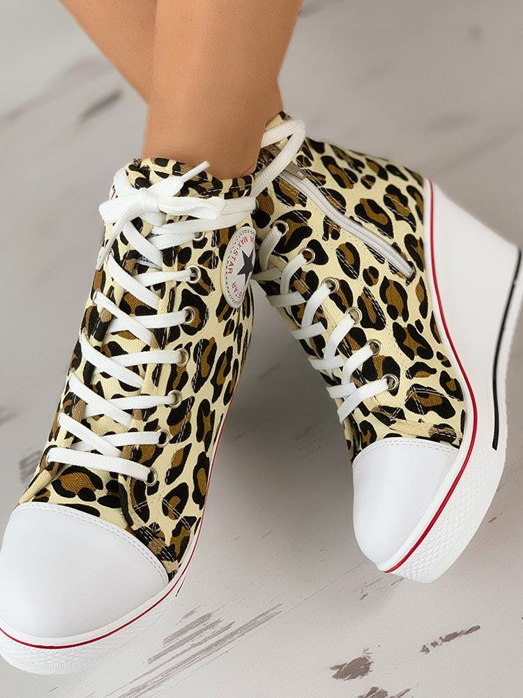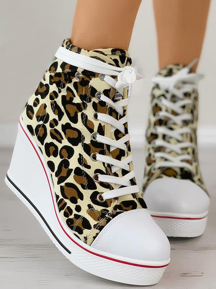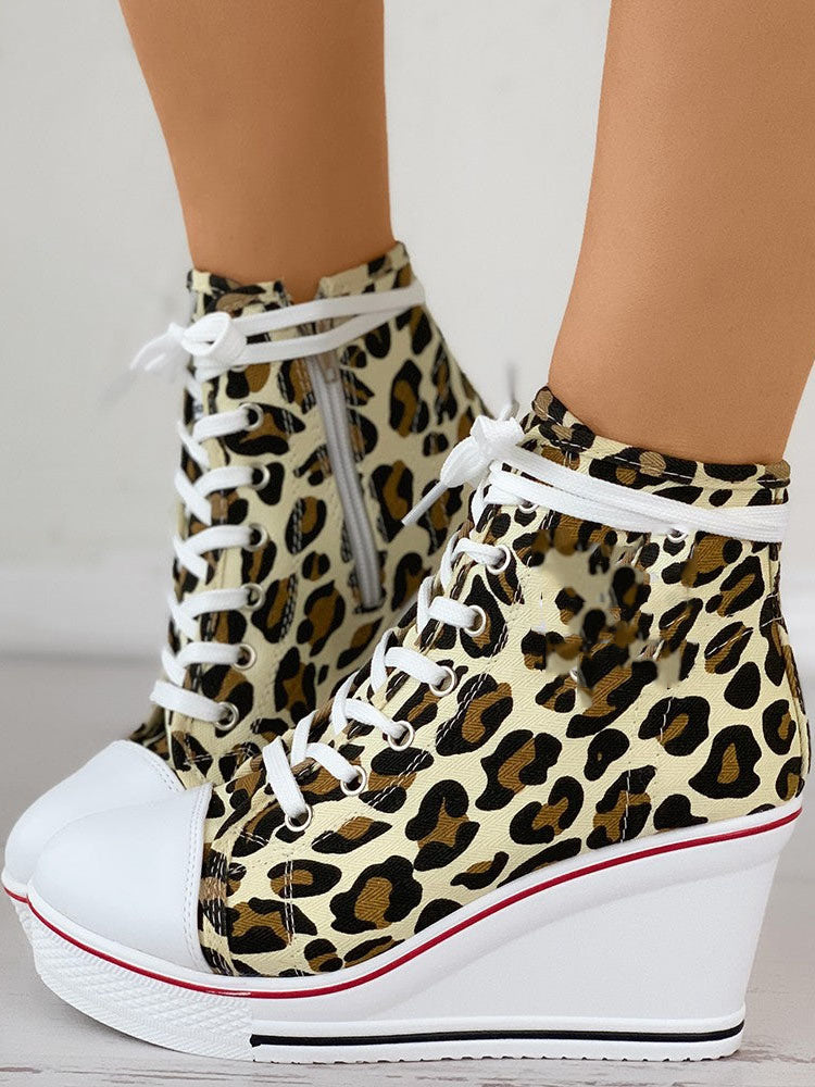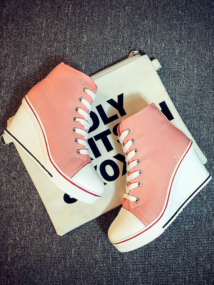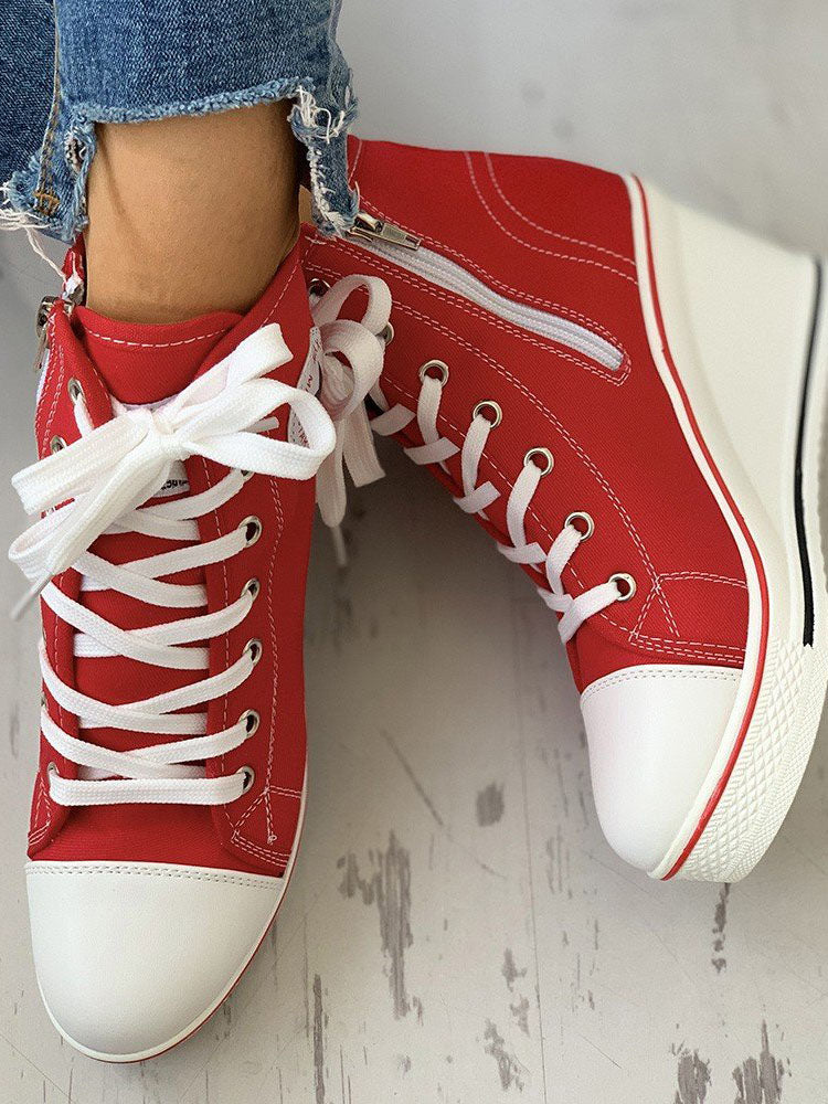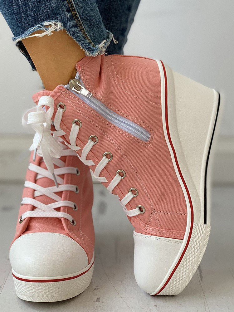 Lace-Up Thick Soled Heel Canvas Sneakers