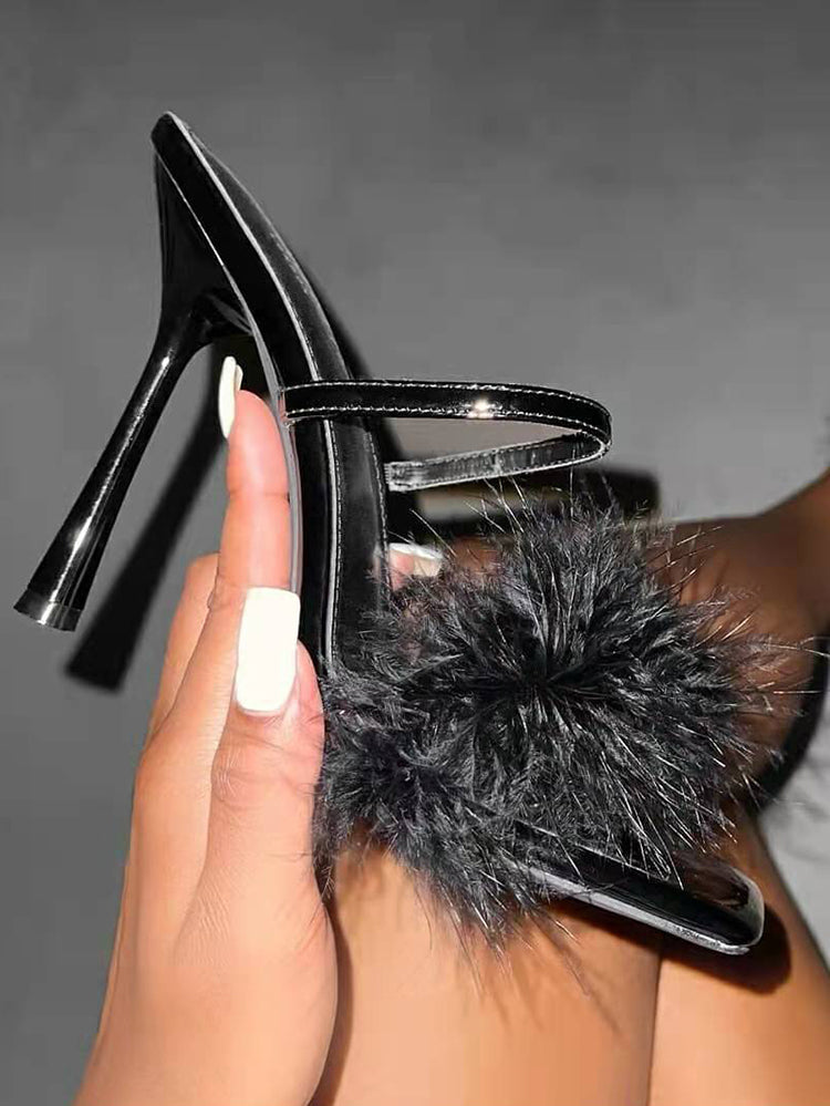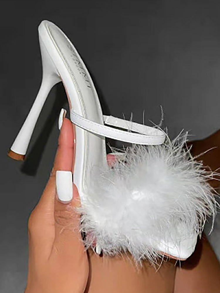 Leather With Feather Peep Toe Slipper
