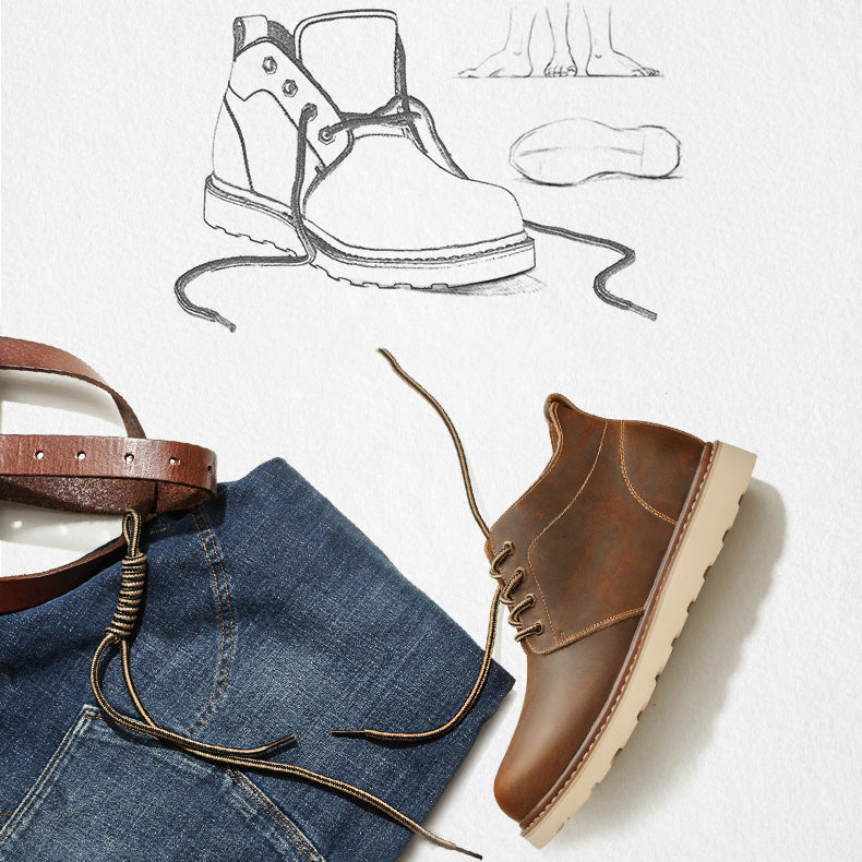 Revamp your wardrobe and add a touch of British style with our Mid-Cut Tooling Leather British Style Men's Desert Boot. Whether you're heading to a casual hangout or want to spice up your everyday look. these boots are the perfect choice. Don't miss out on this opportunity to elevate your style and make heads turn wherever you go. Grab your pair today and step into a world of fashion and comfort!