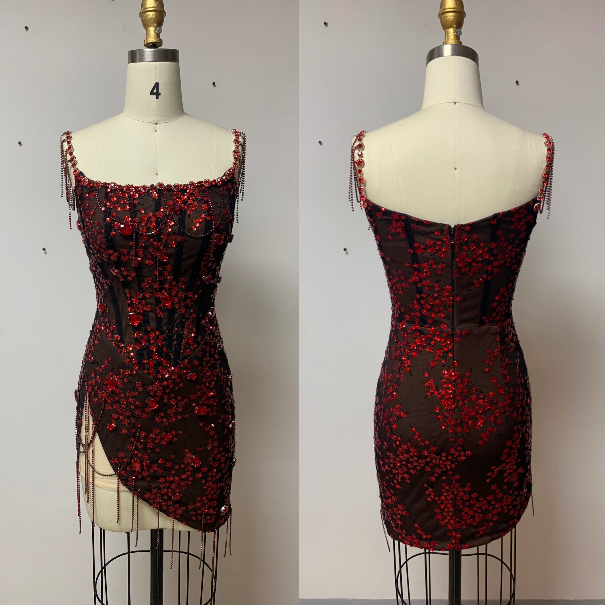 Off Shoulder Diamente Embellished Mini Bodycon Dress