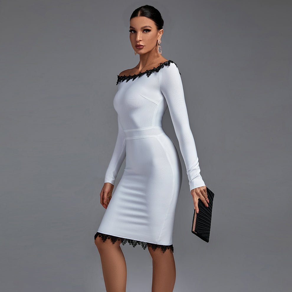 Off Shoulder Long Sleeve Lace Midi Bandage Dress