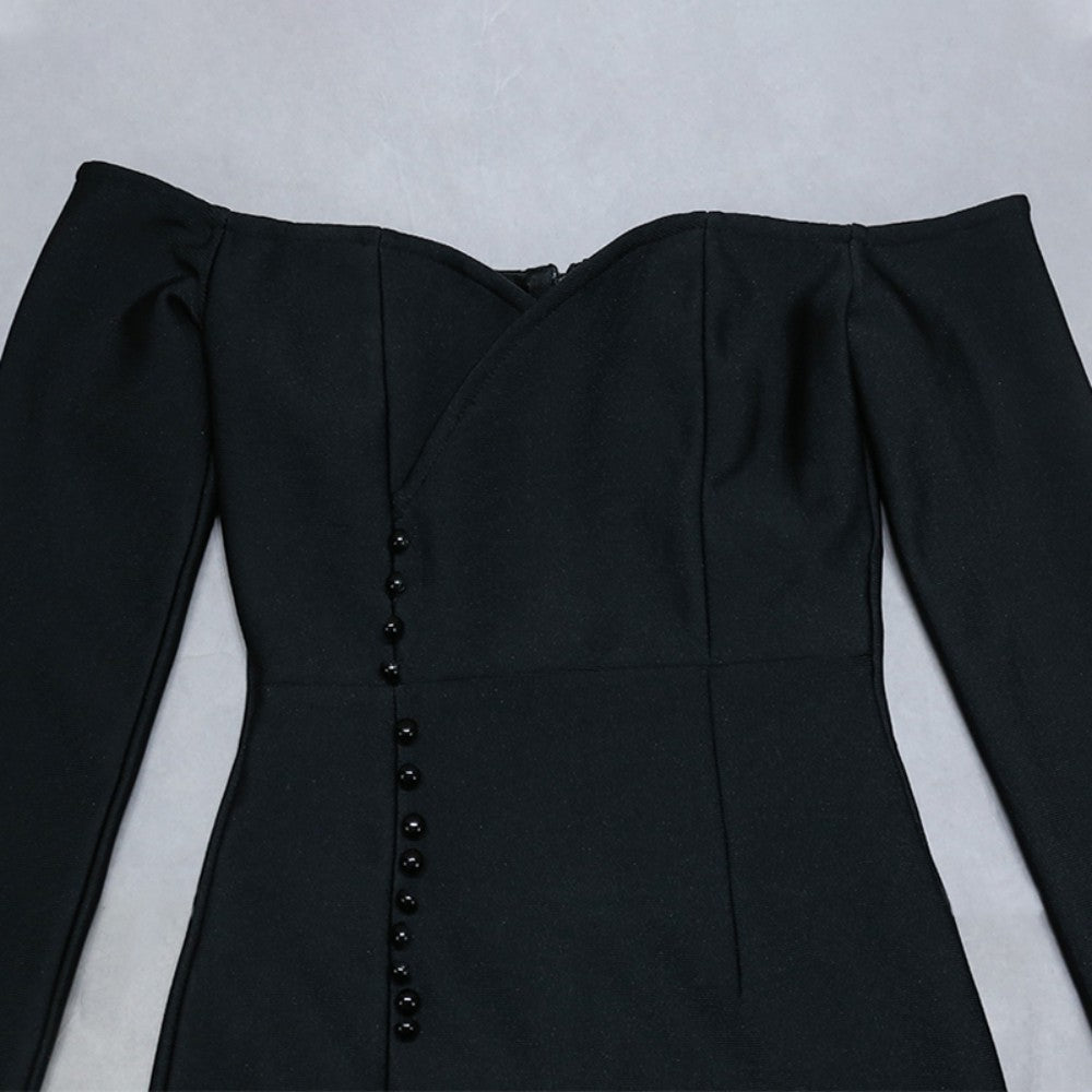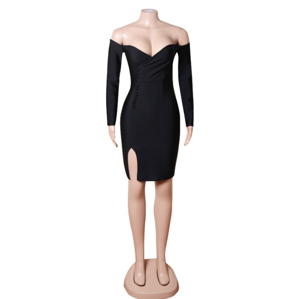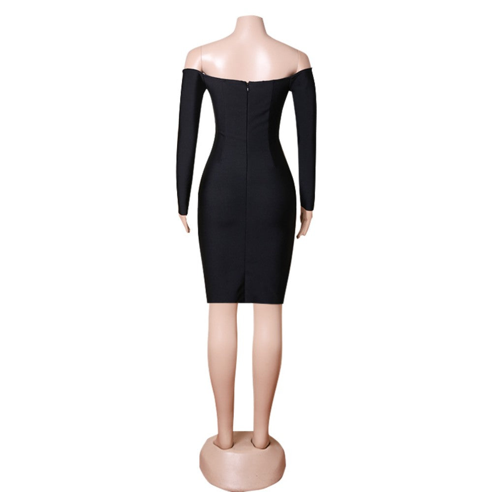 Off Shoulder Long Sleeve Mini Slit Bandage Dress