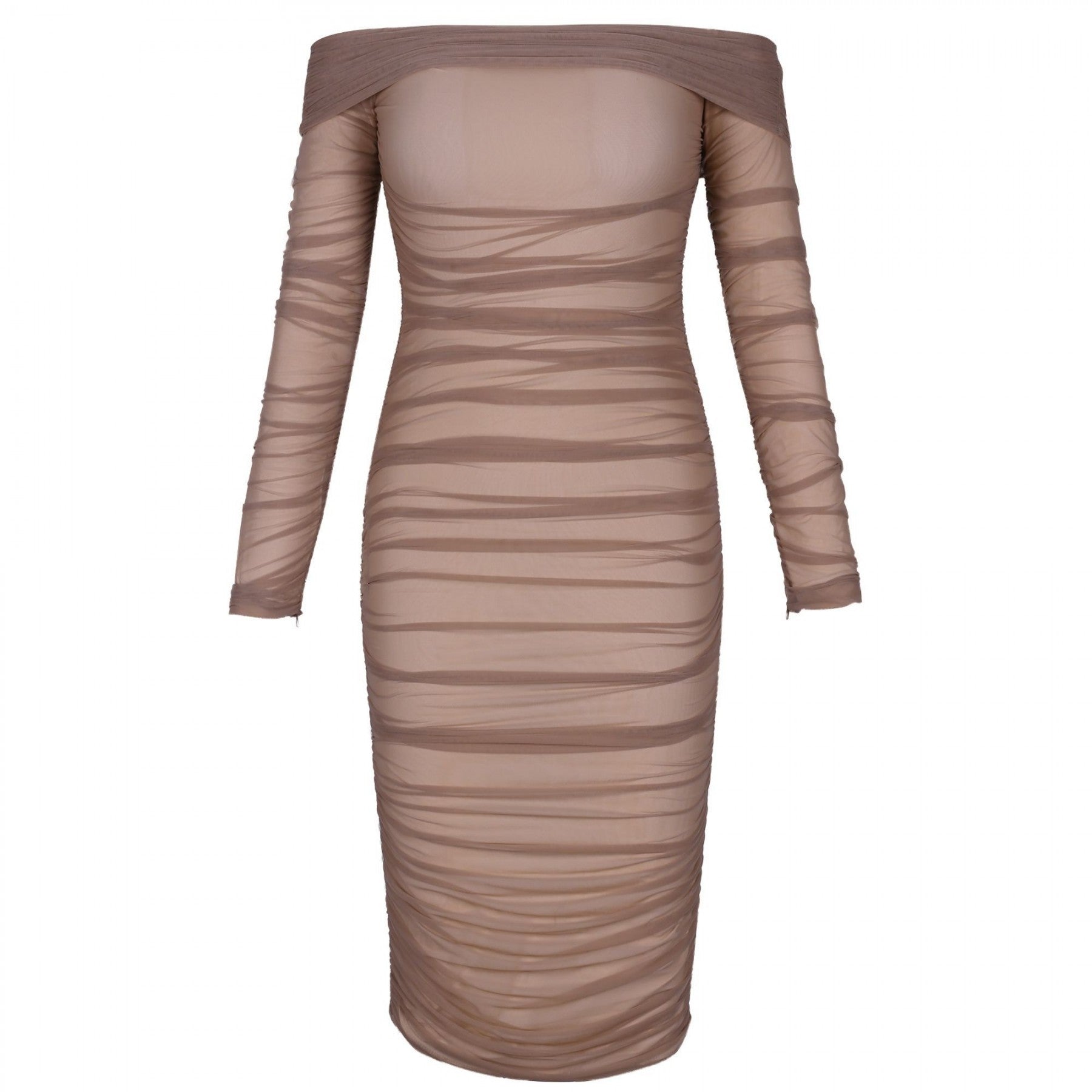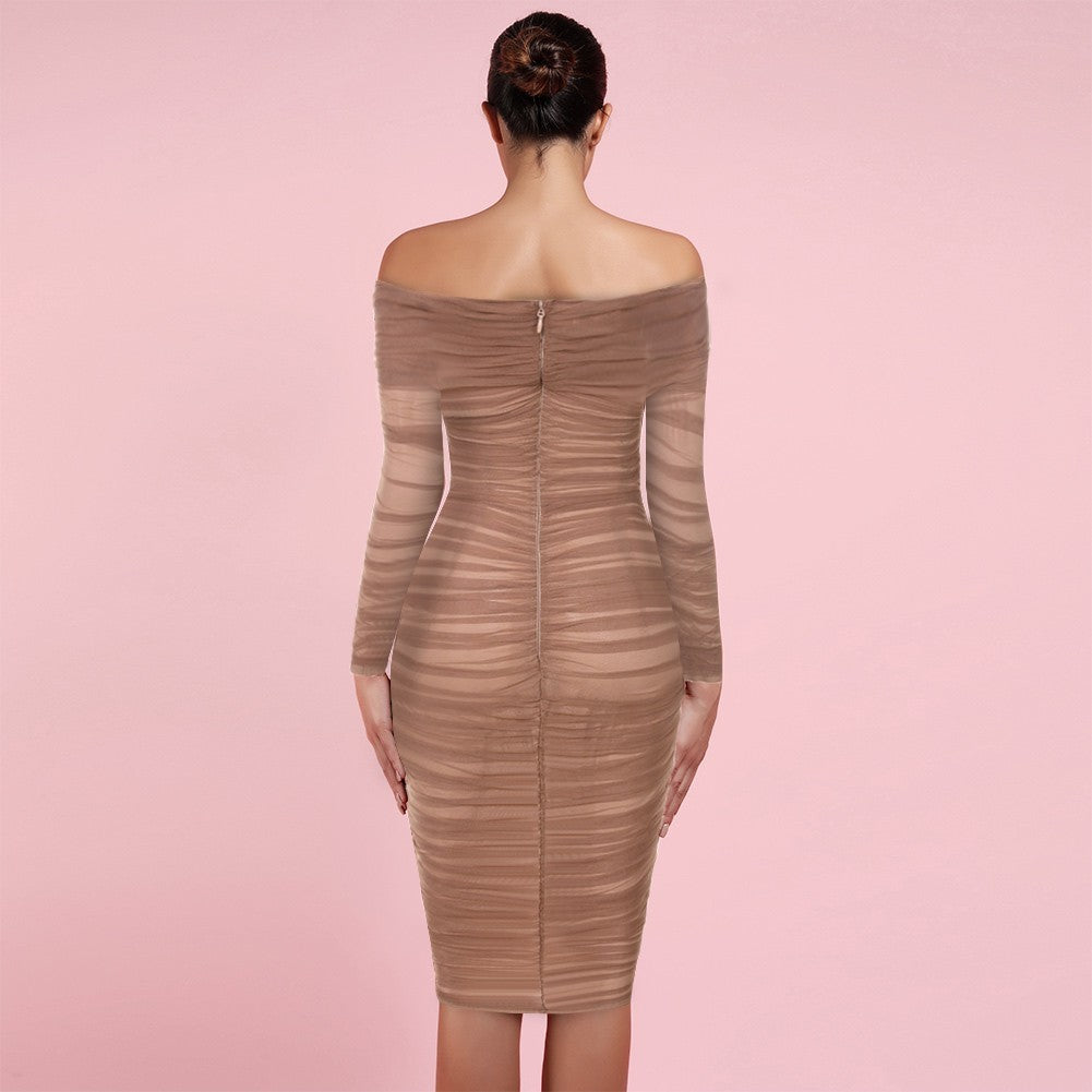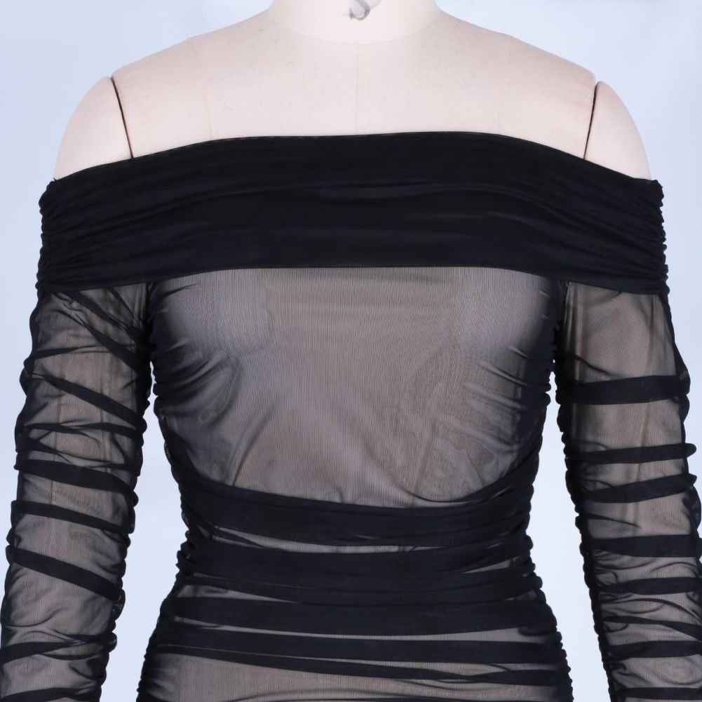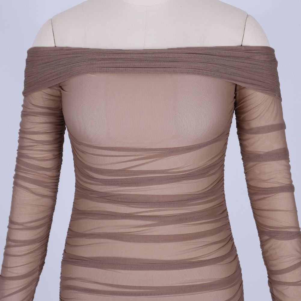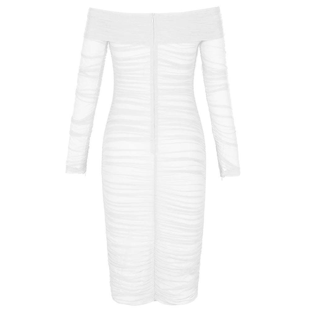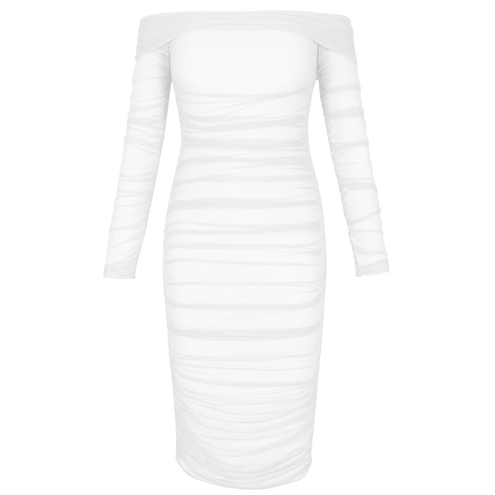 Off Shoulder Long Sleeve Ruched Mini Bodycon Dress FSP19054