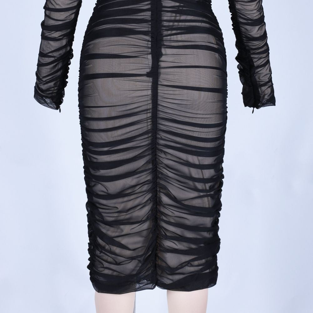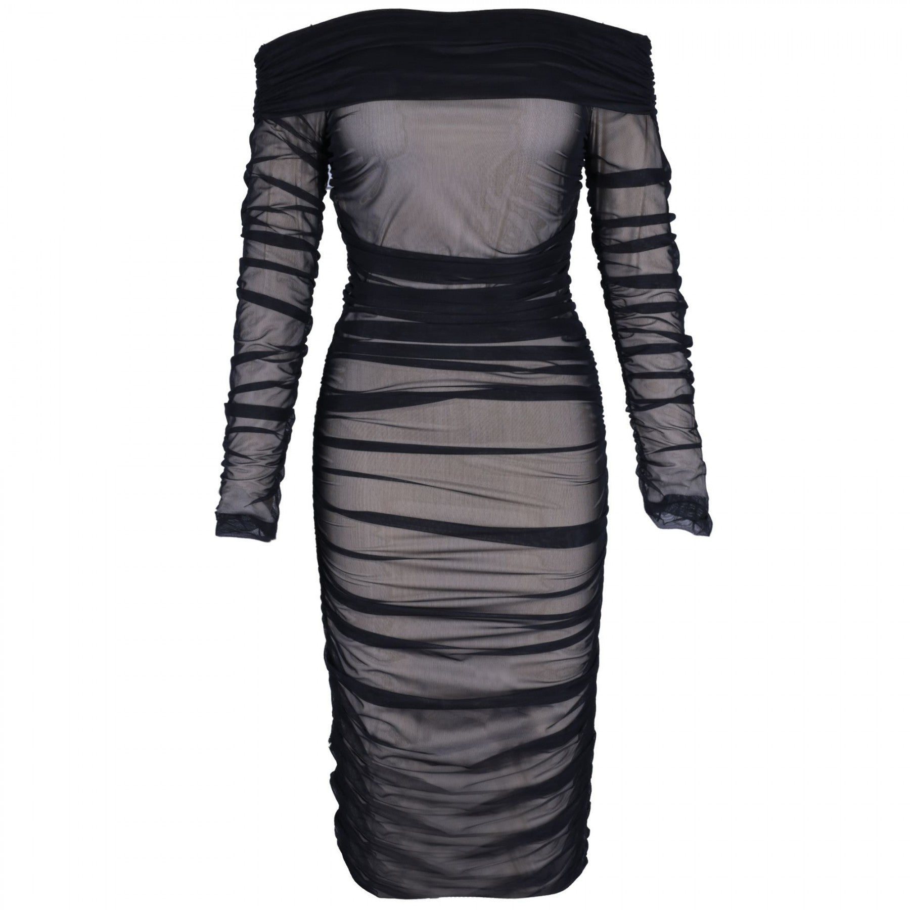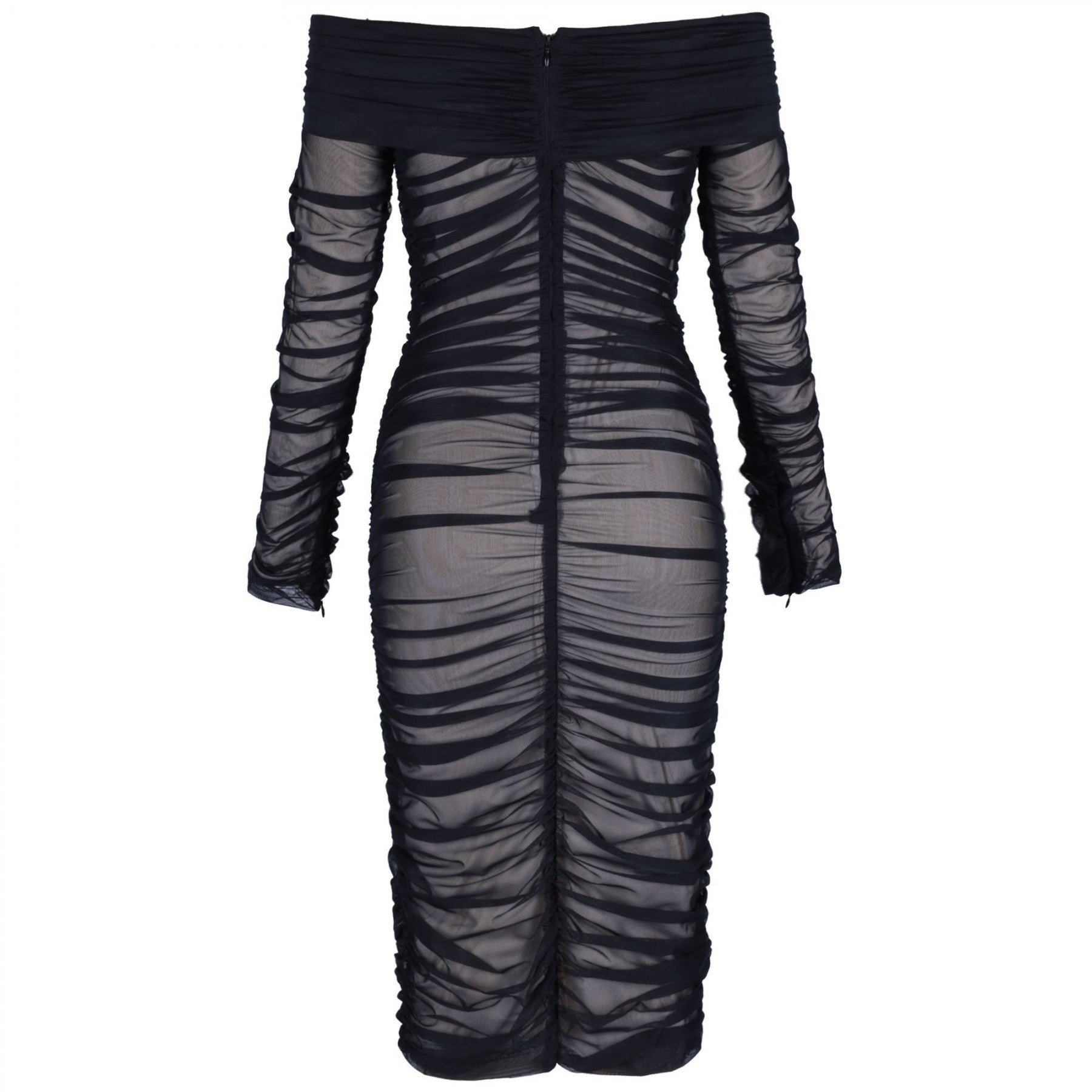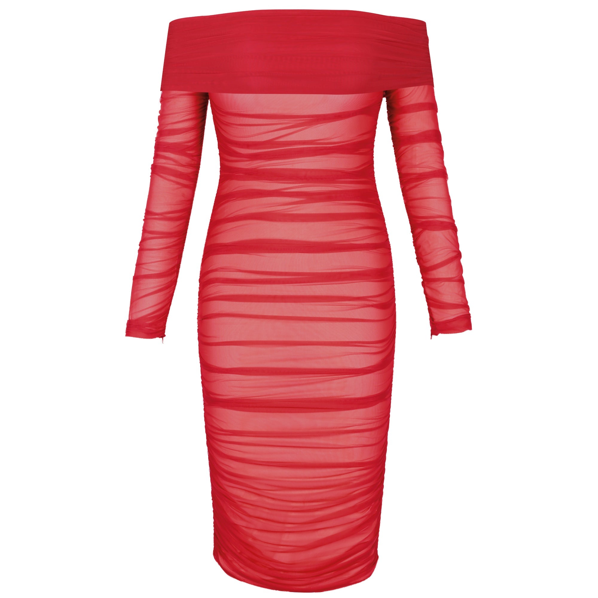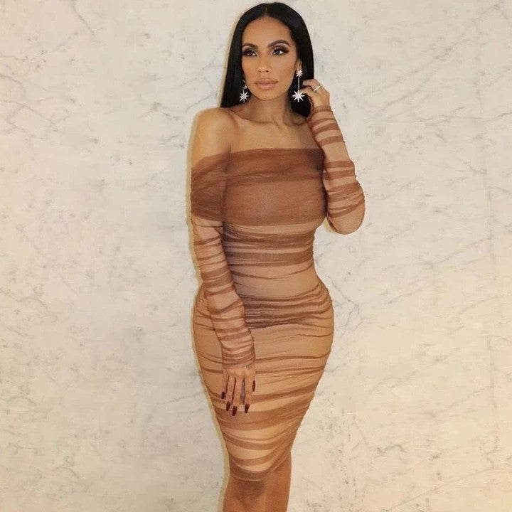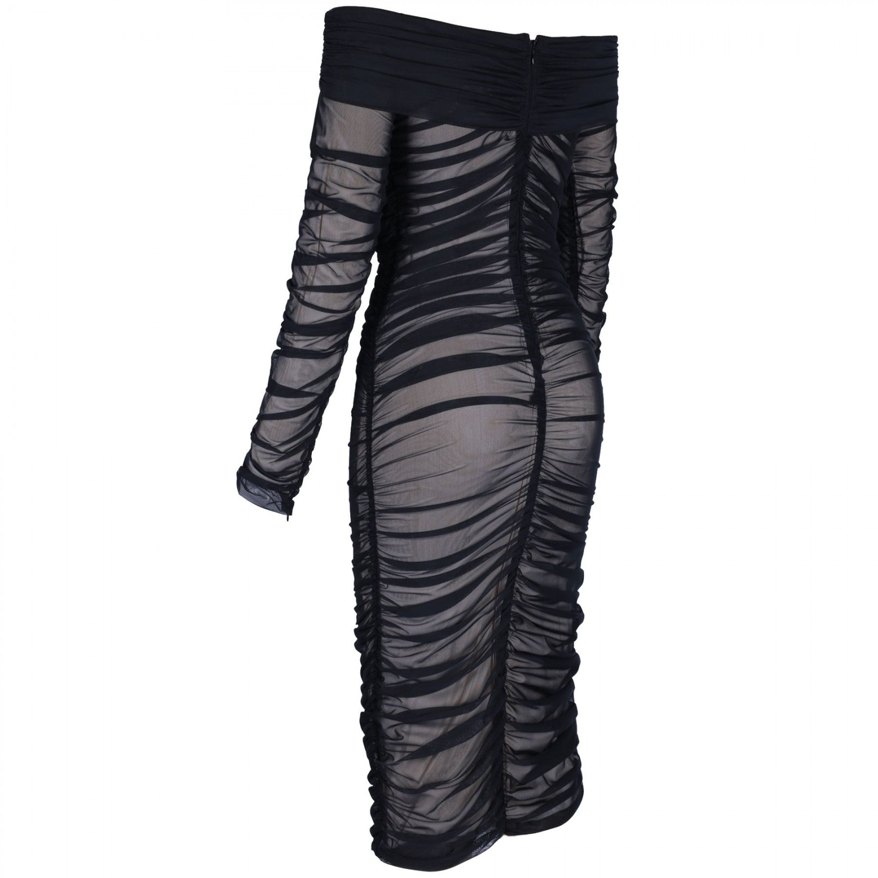 Off Shoulder Long Sleeve Ruched Mini Bodycon Dress FSP19054