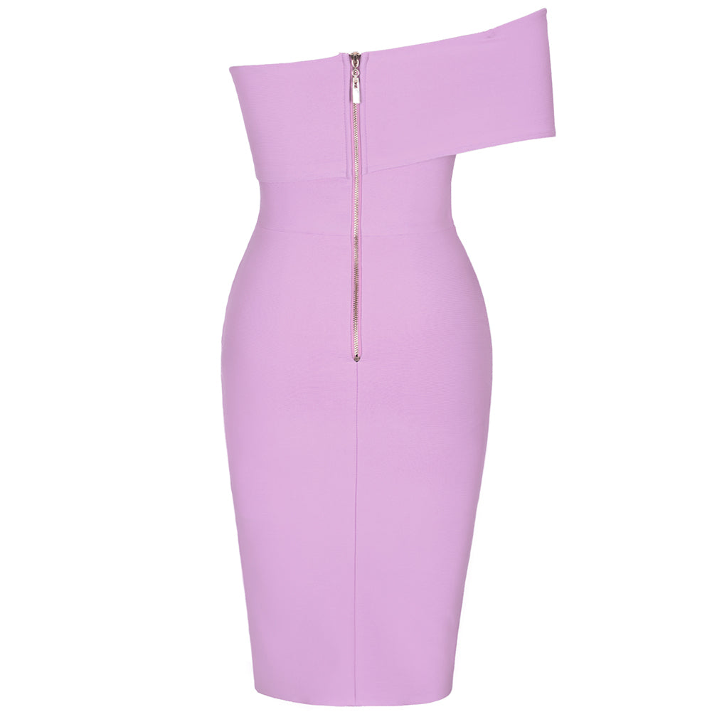 Off Shoulder Short Sleeve Asymmetrical Midi Bandage Dress