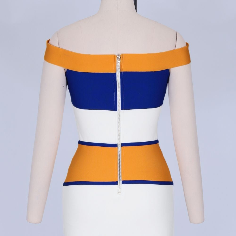 Off Shoulder Short Sleeve Fishtail Over Knee Bandage Dress