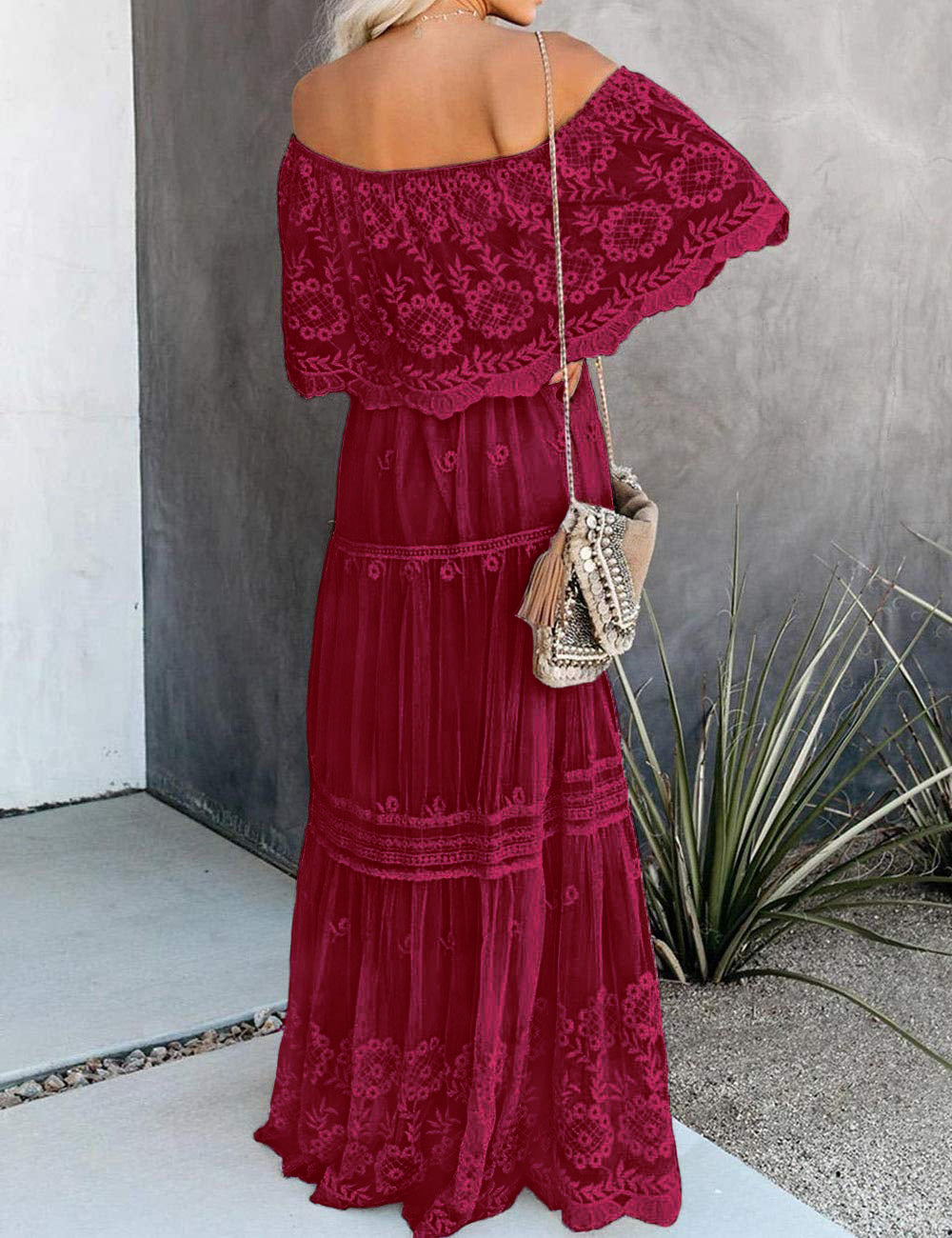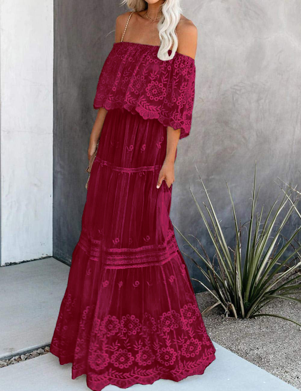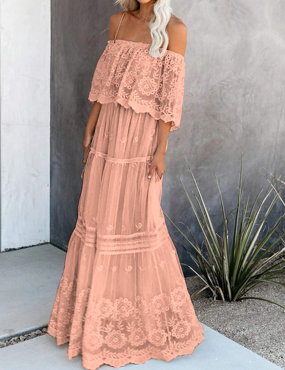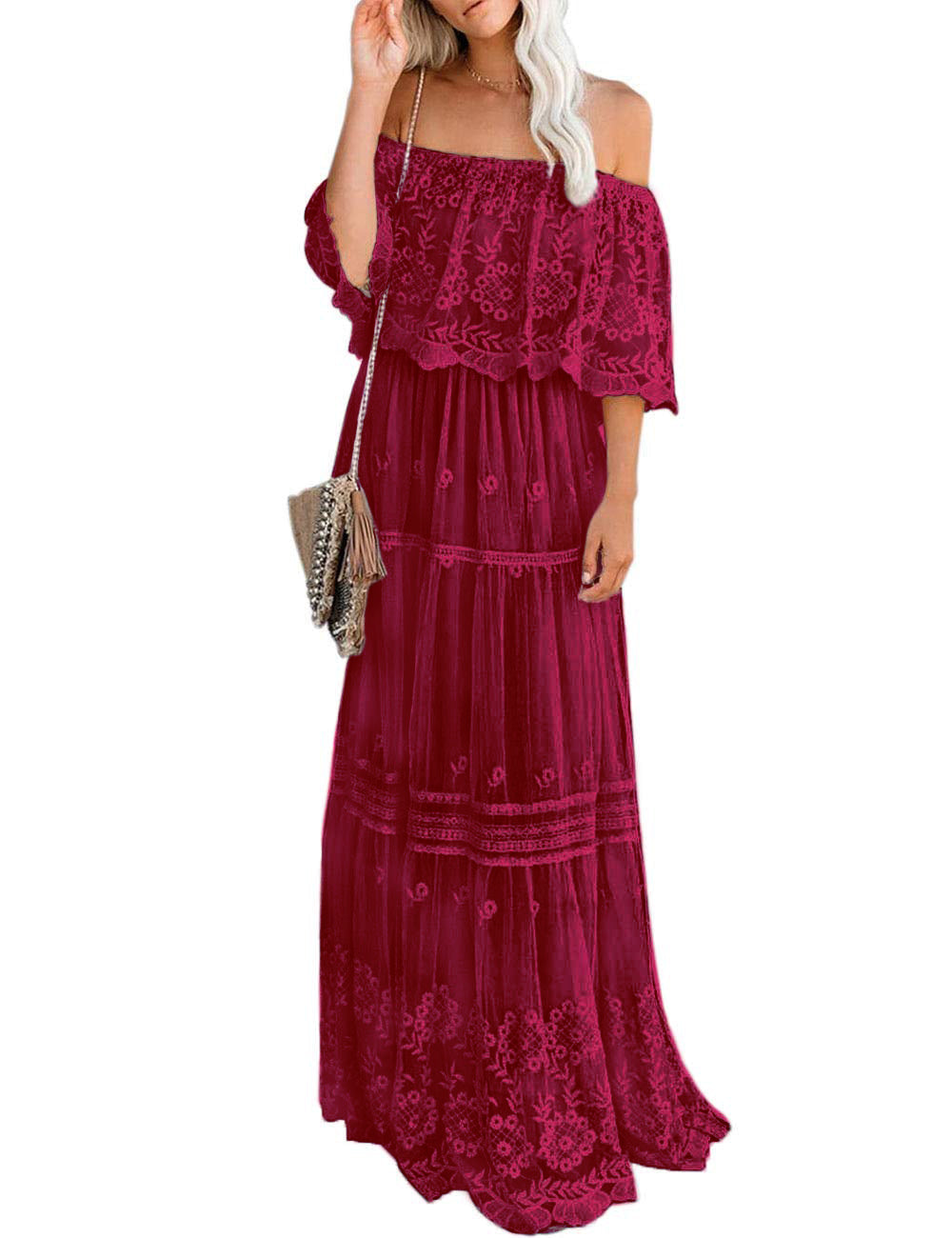 ImportedMaterial: Women's Lace Dress is made of lace fabrication. is soft and comfy to wearDesign: with deep v neck. short sleeves. floral lace fabrics and maxi long length cutFeature: this maxi party prom dress with high quality lace fabrication to show your elegance in partiesOccassions: suitable for causal wear. holiday. beach. dating. evening. going out. party. prom. celebrity and special occasionsSize (inch):