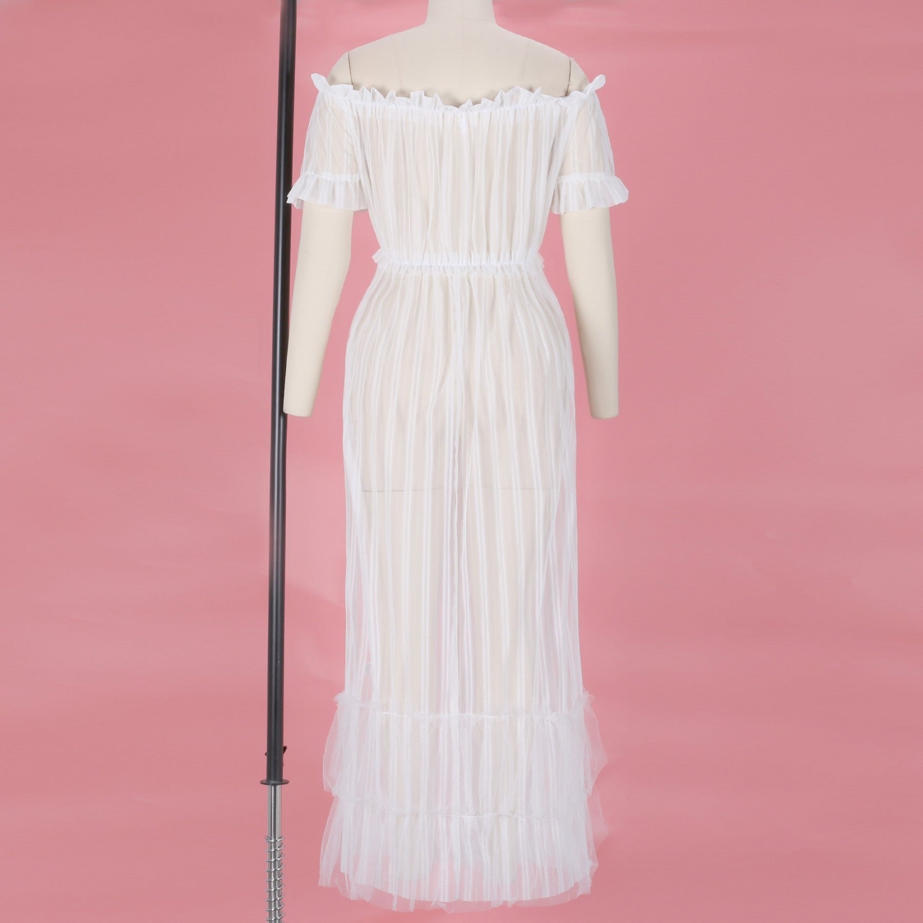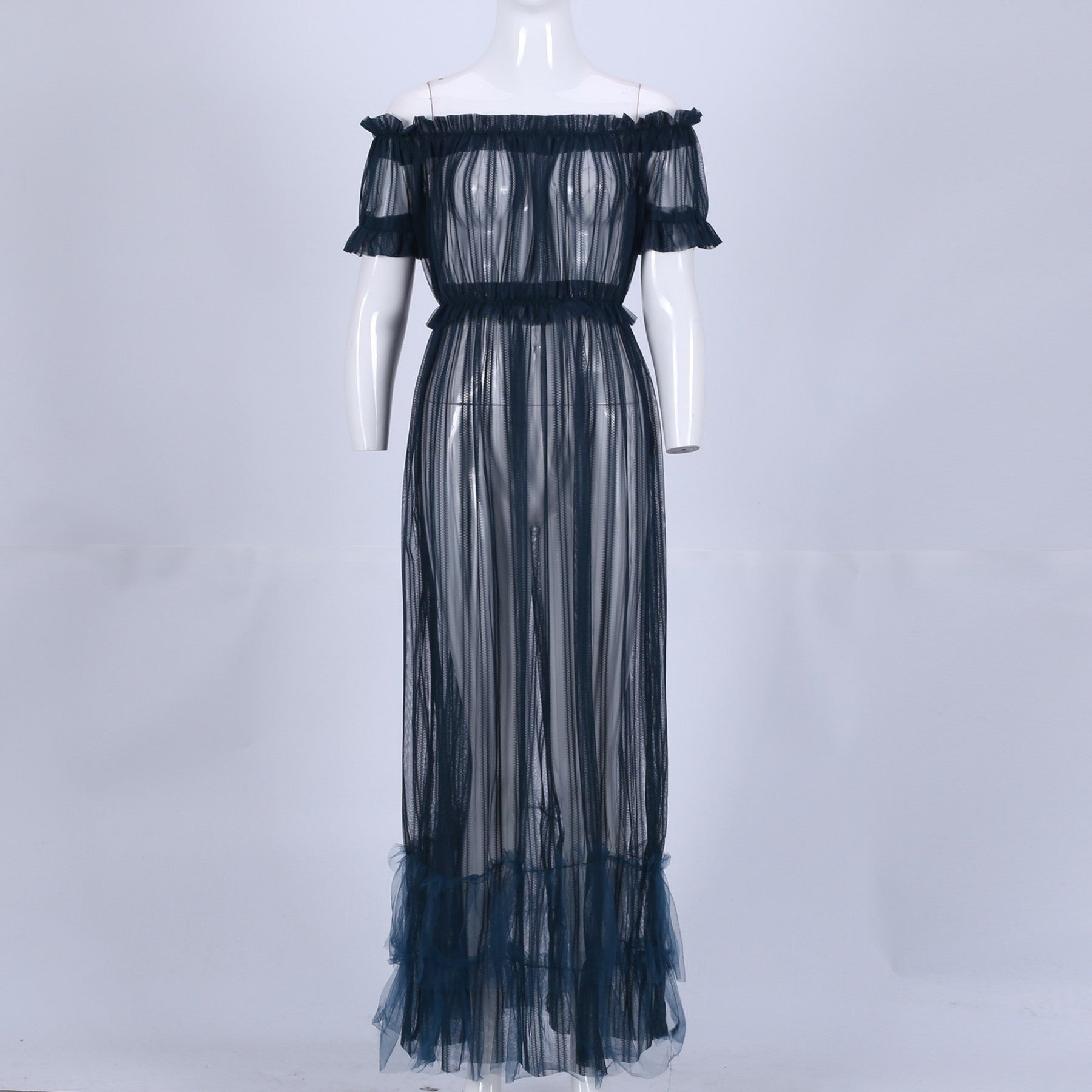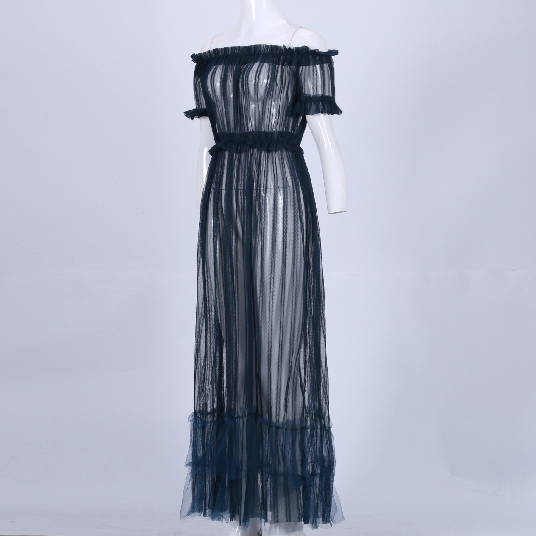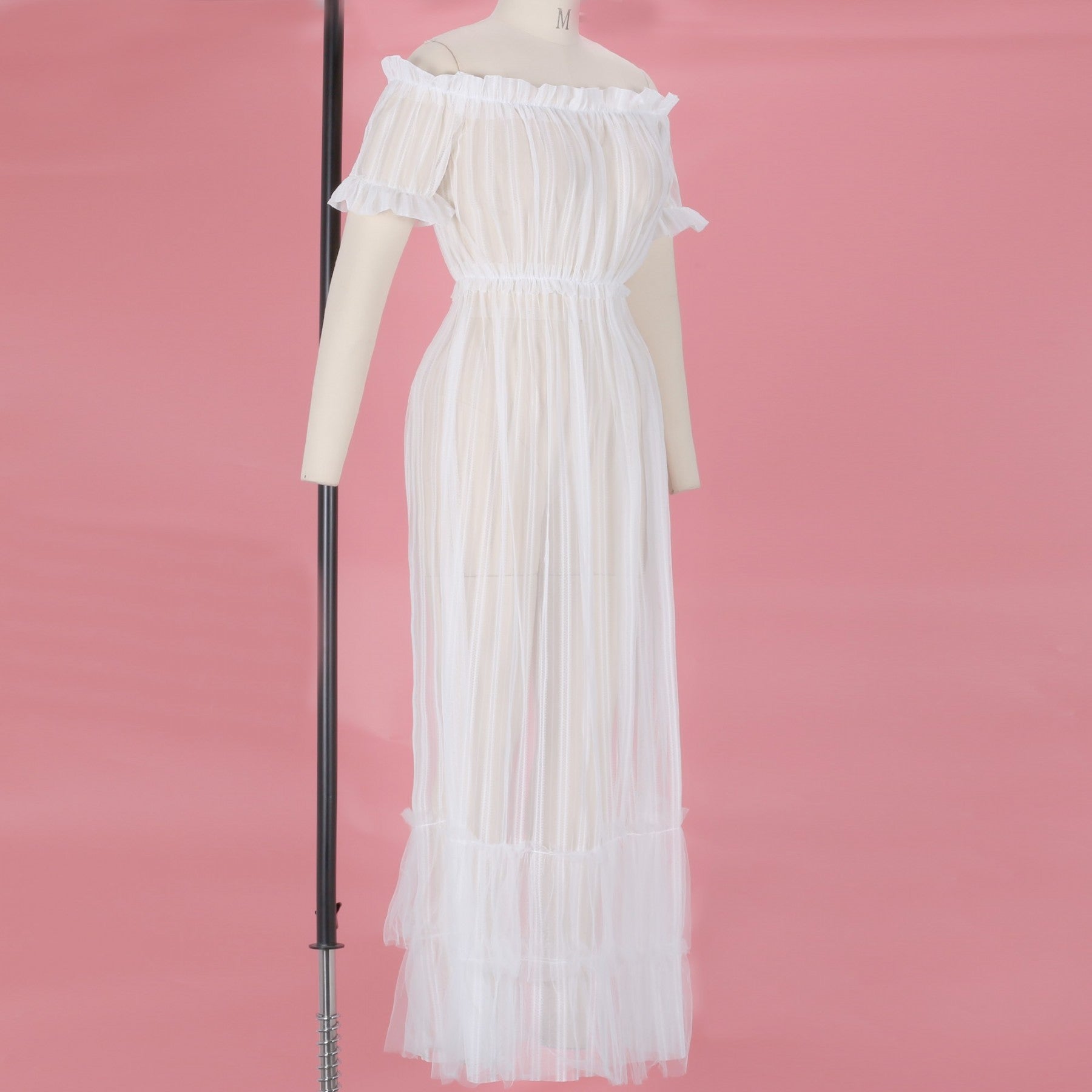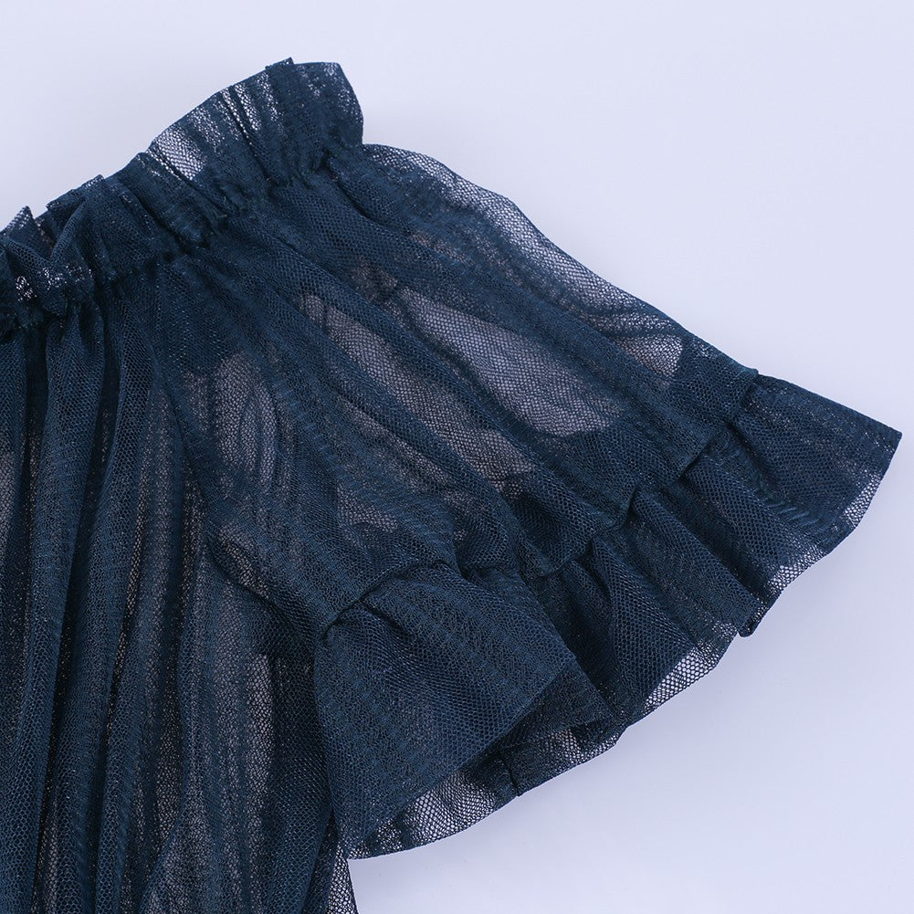 Off Shoulder Short Sleeve Lace Maxi Bodycon Dress K1962