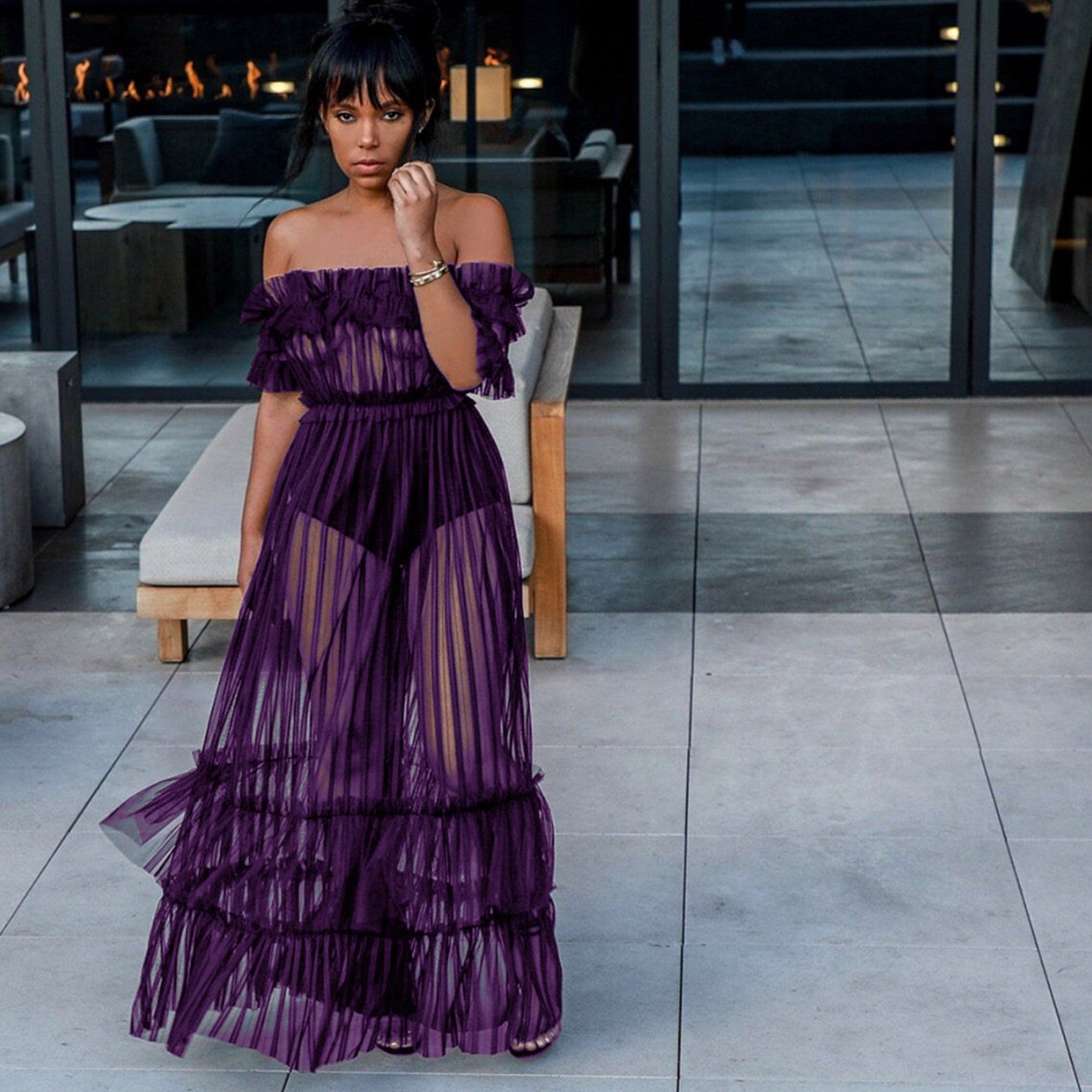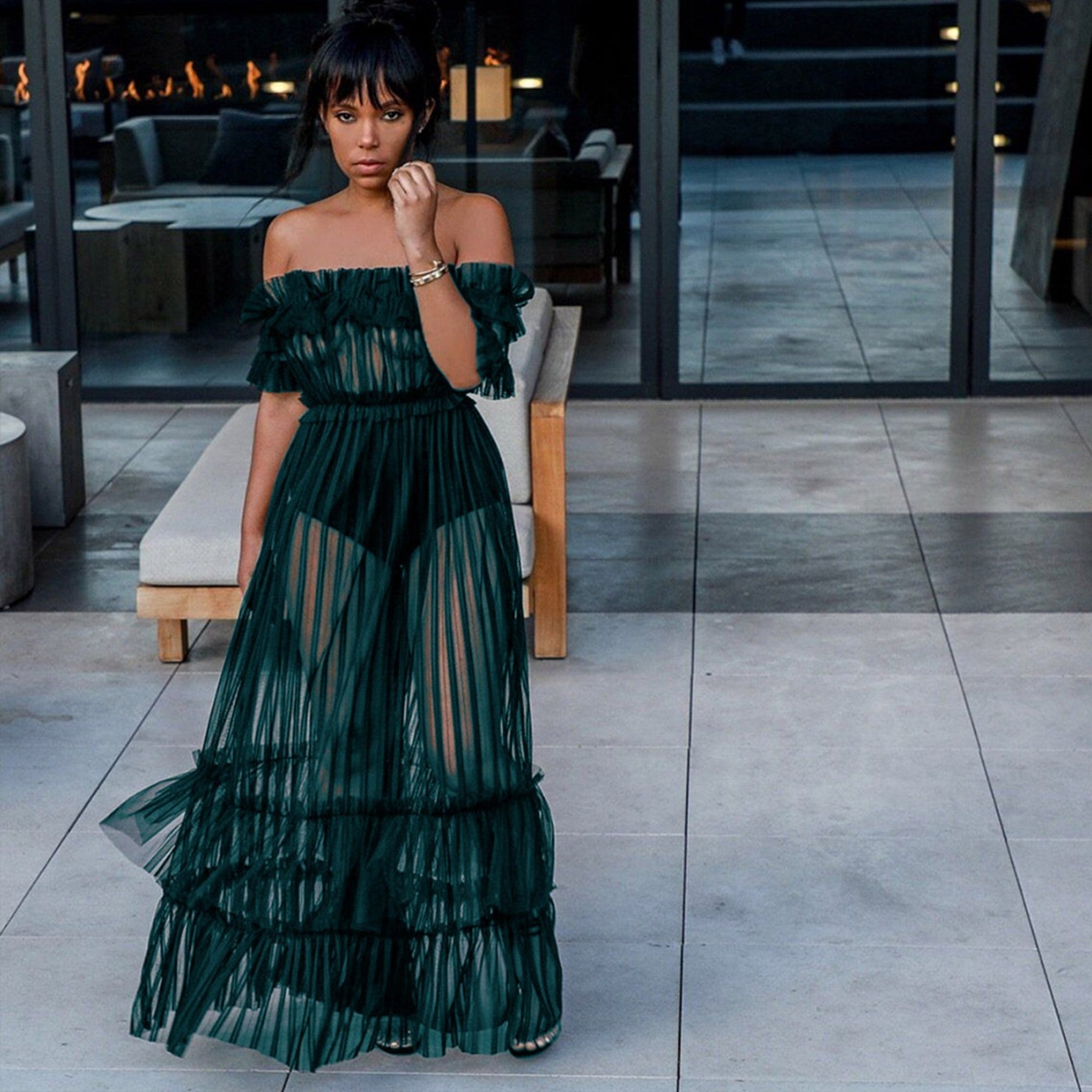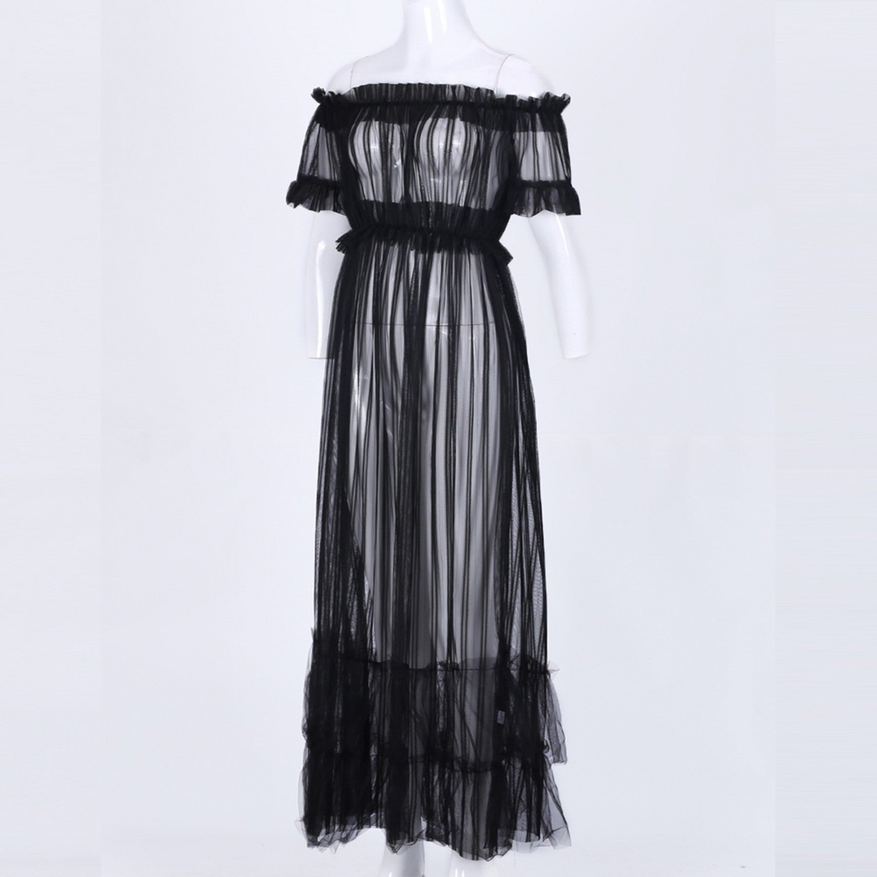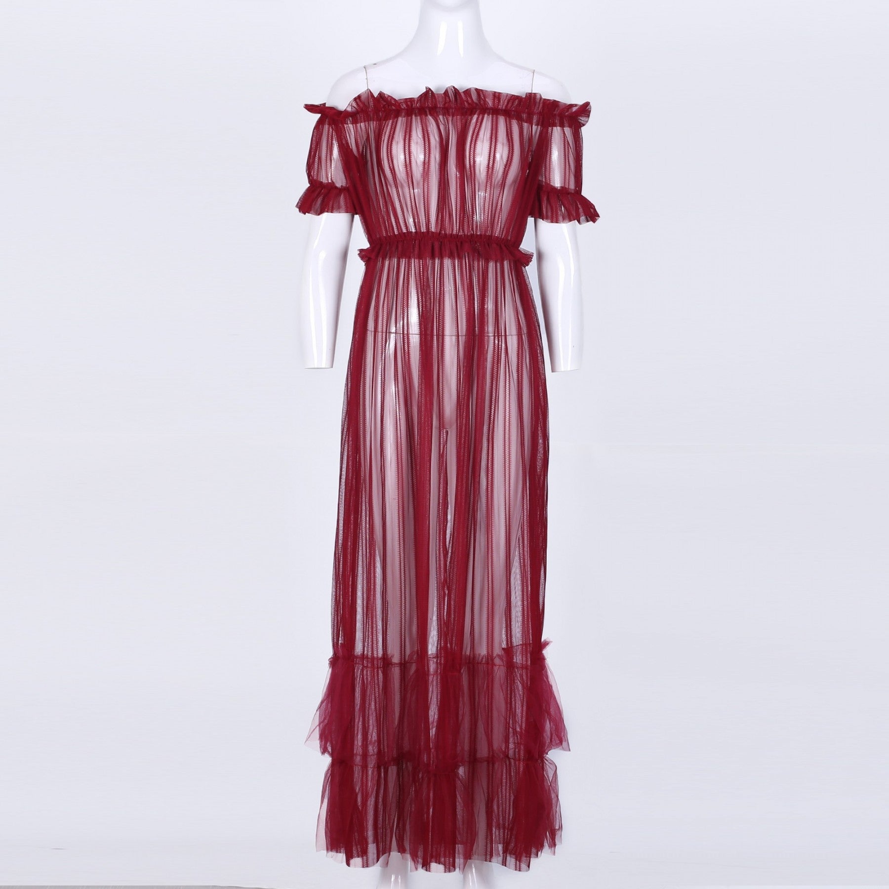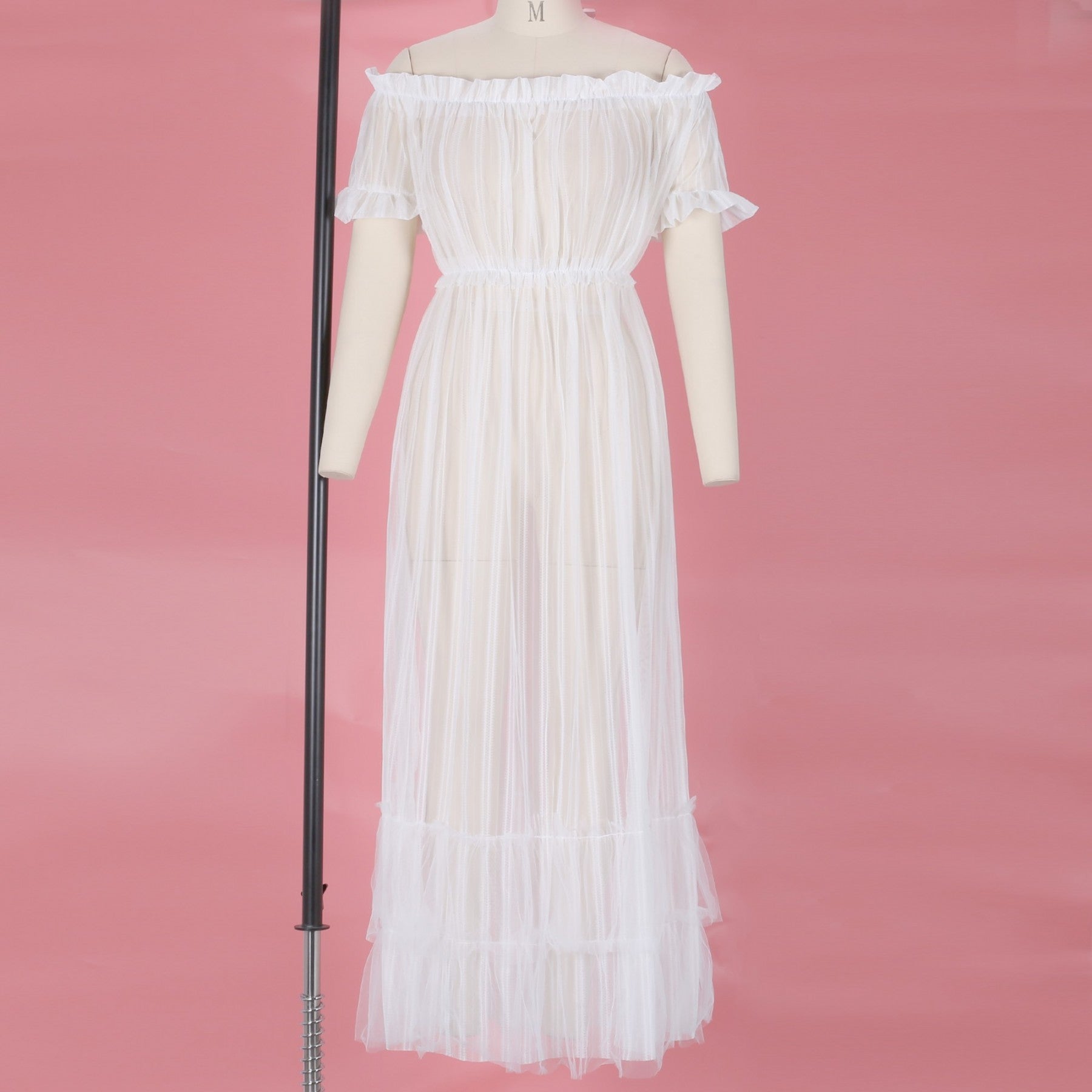 Off Shoulder Short Sleeve Lace Maxi Bodycon Dress K1962