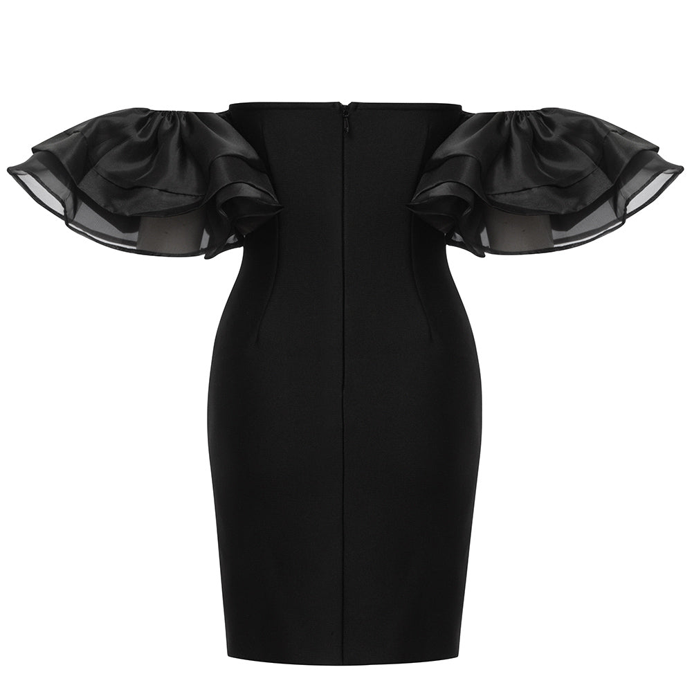 Off Shoulder Short Sleeve Mini Frill Bandage Dress