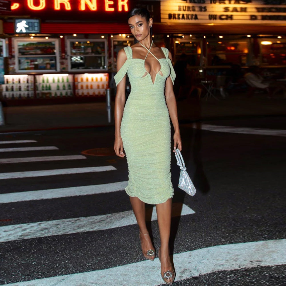 Short Sleeve Midi Hollow out Bodycon Dress