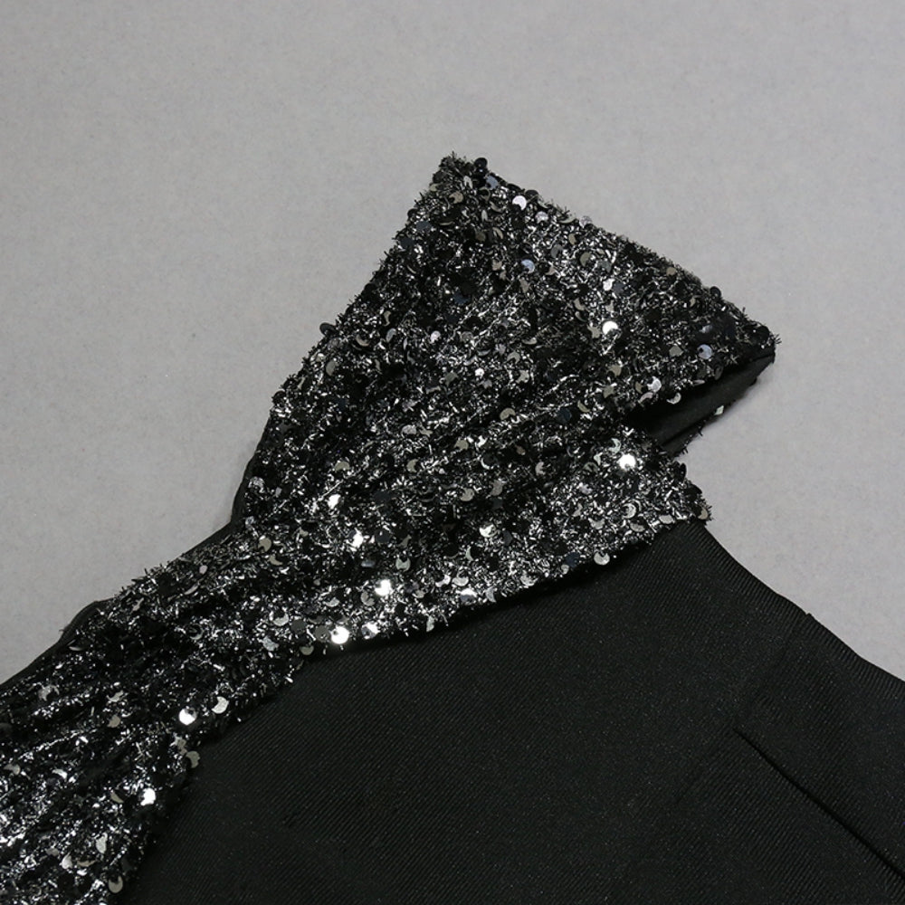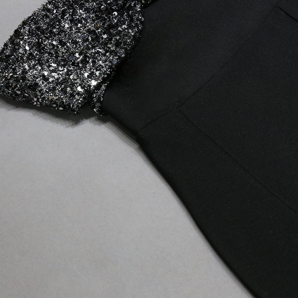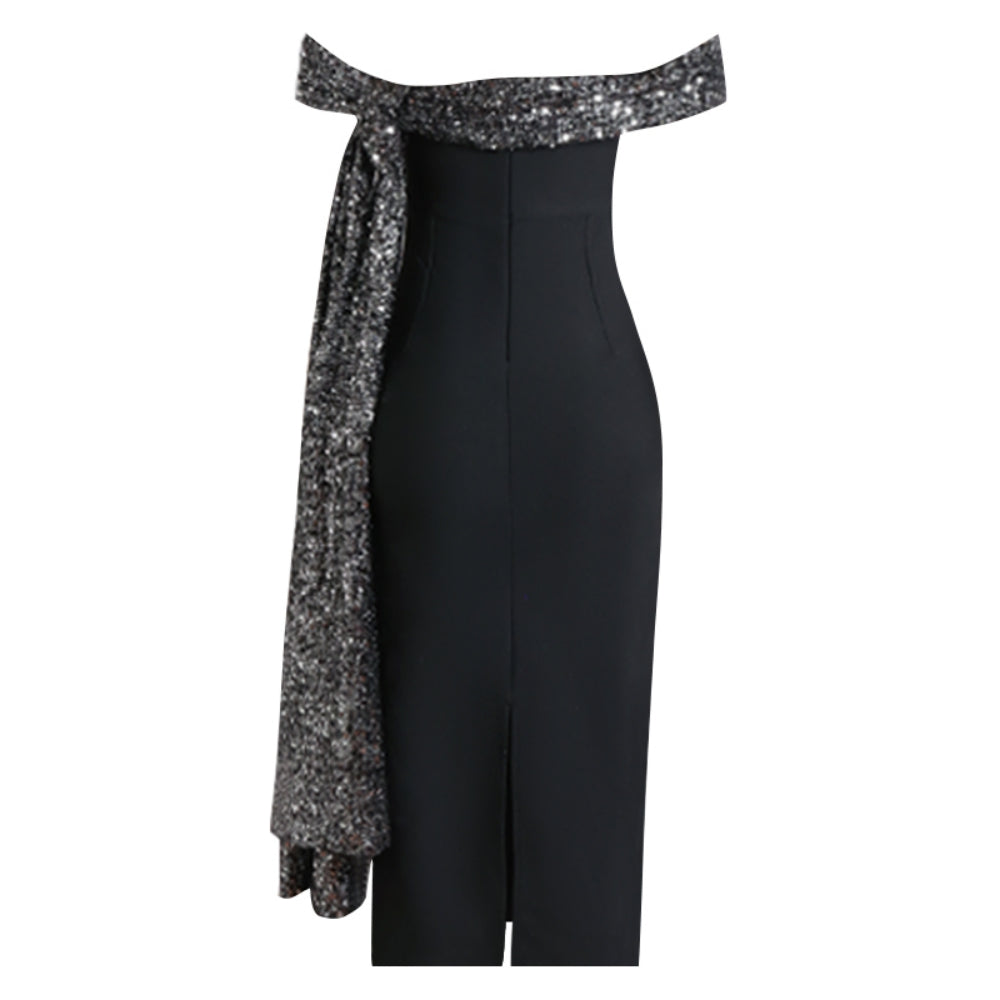 Off Shoulder Short Sleeve Sequins Midi Bandage Dress