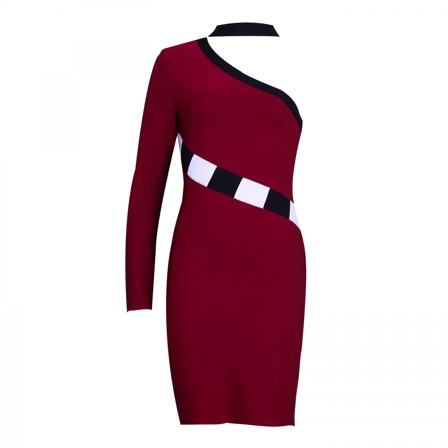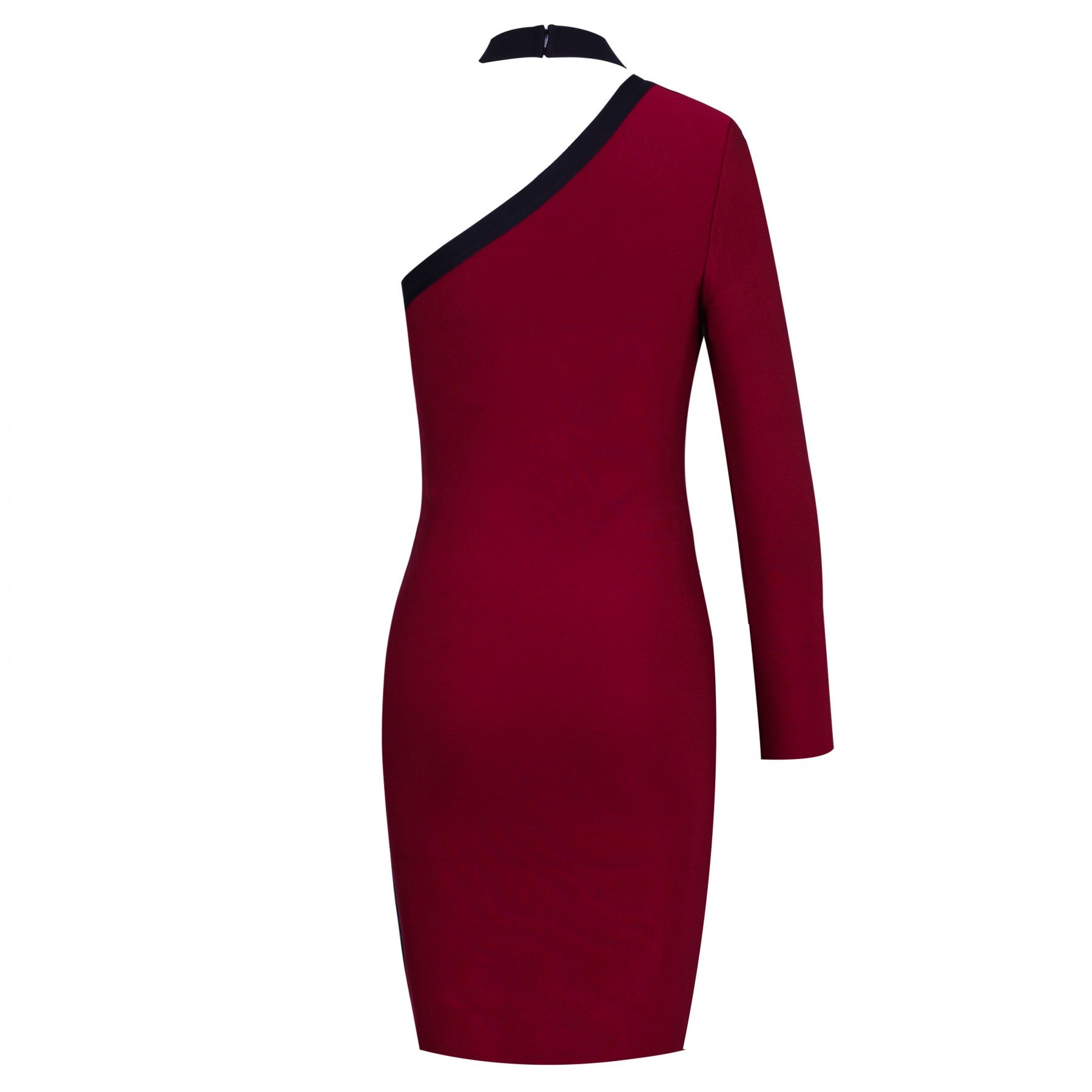 One Shoulder Long Sleeve Cut Out Midi Bandage Dress HI906