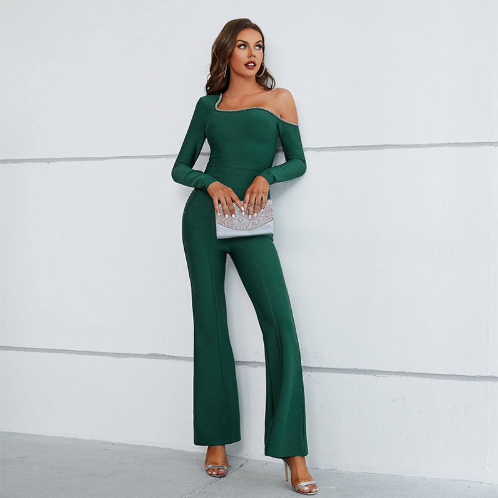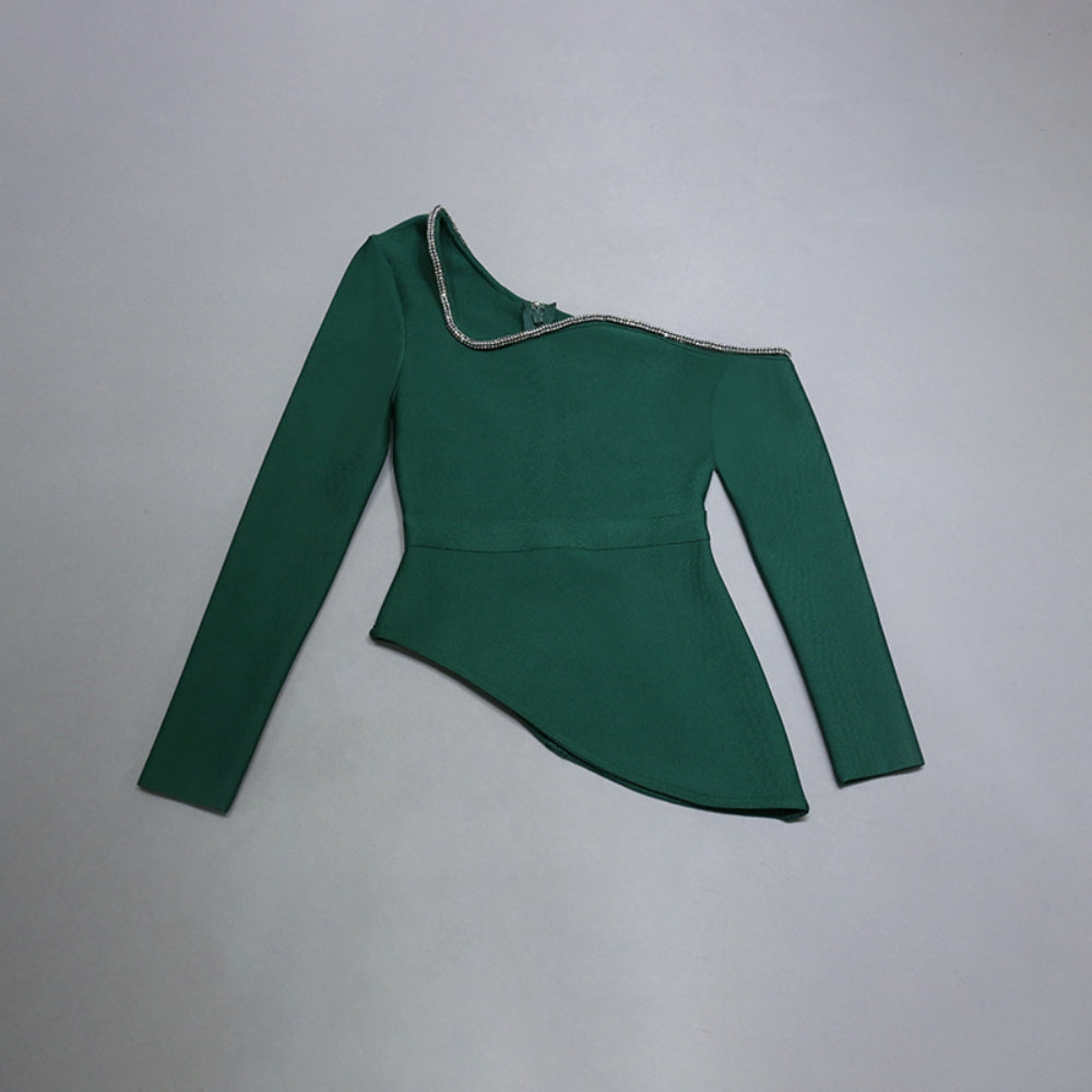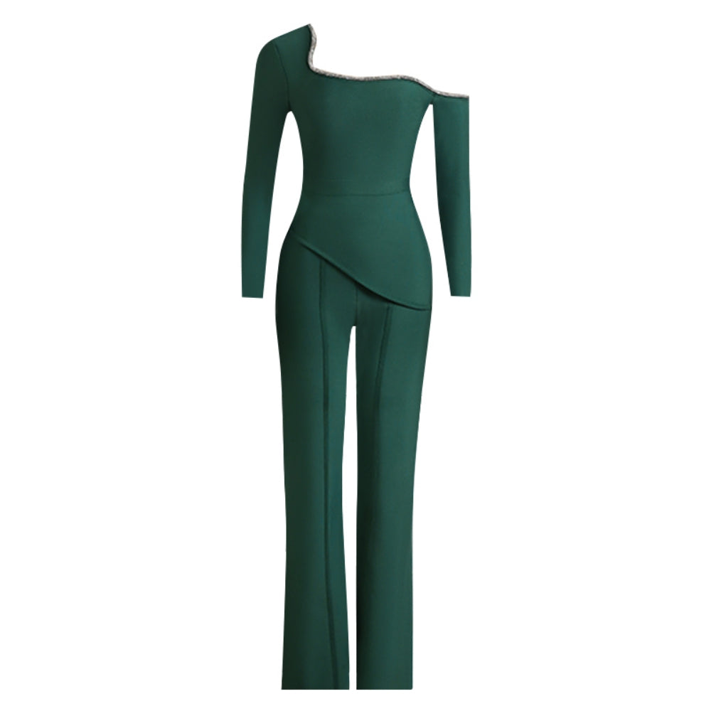One Shoulder Long Sleeve Diamente Embellished Bandage Set