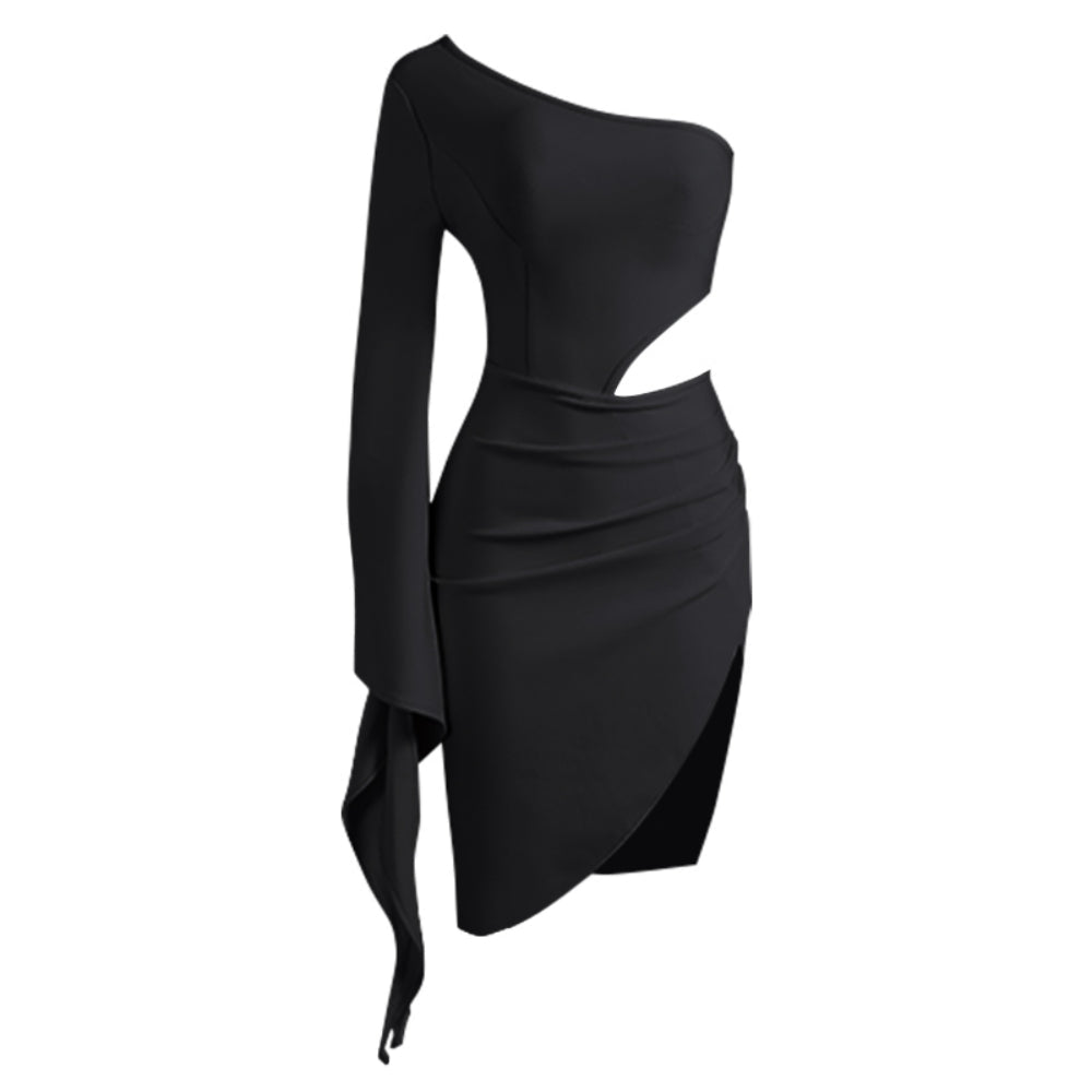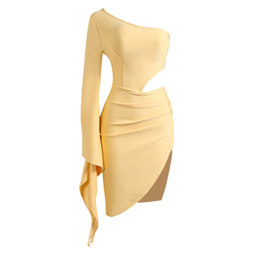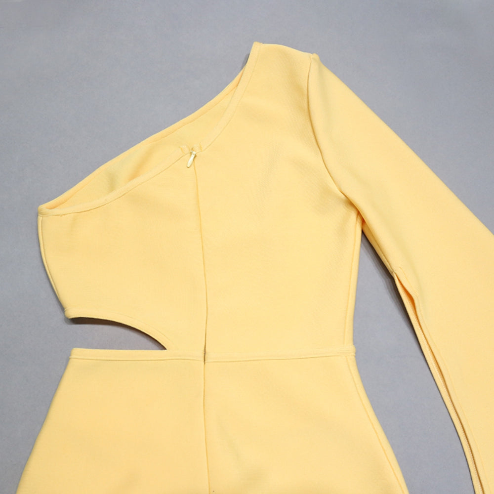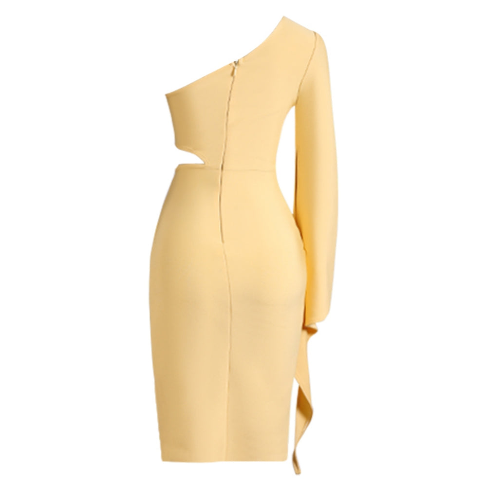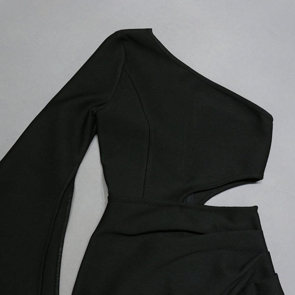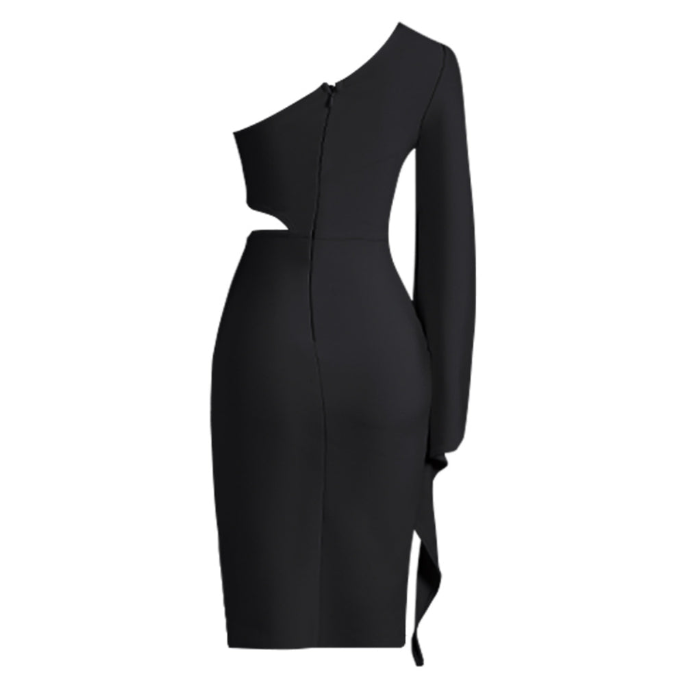 One Shoulder Long Sleeve Midi Hollow out Bandage Dress