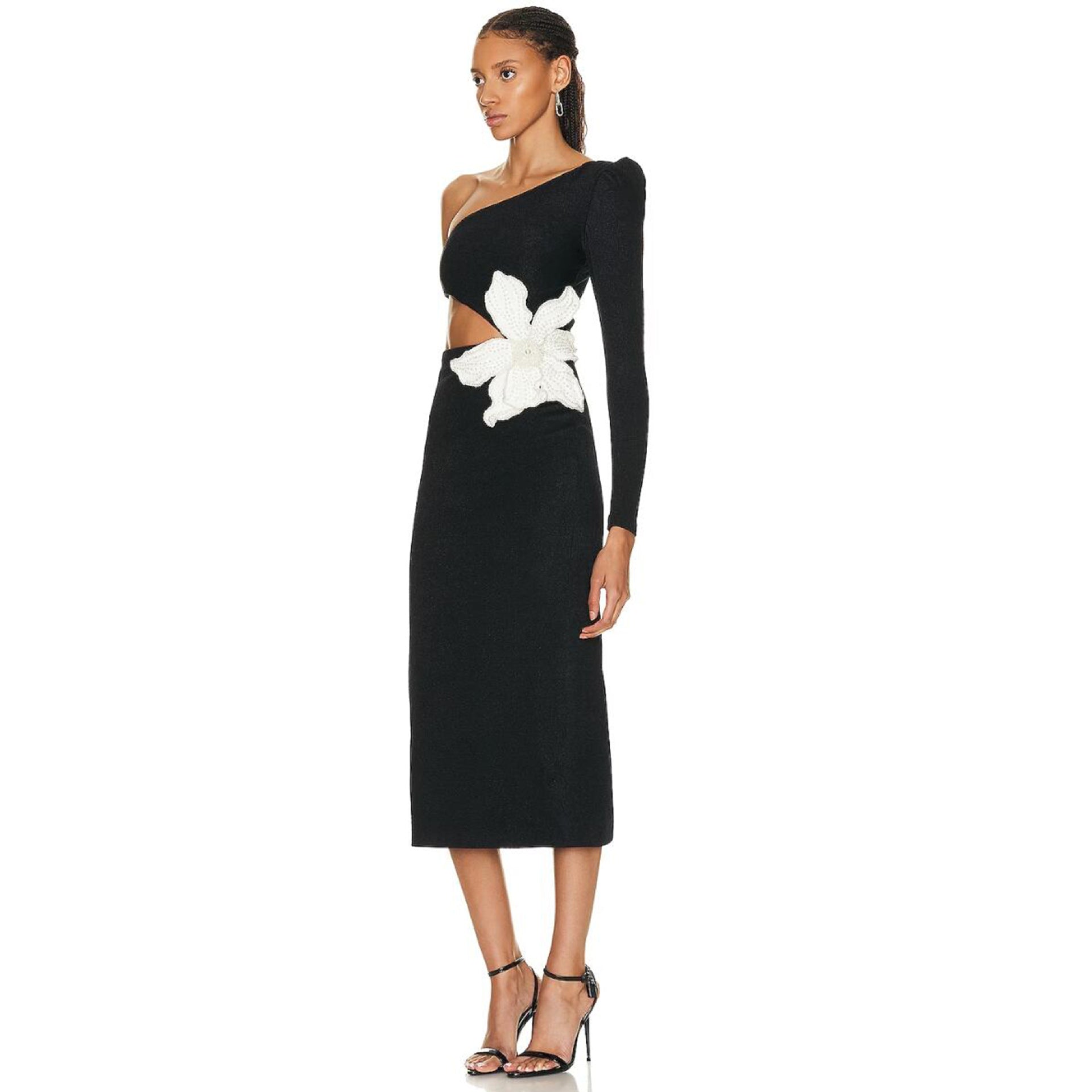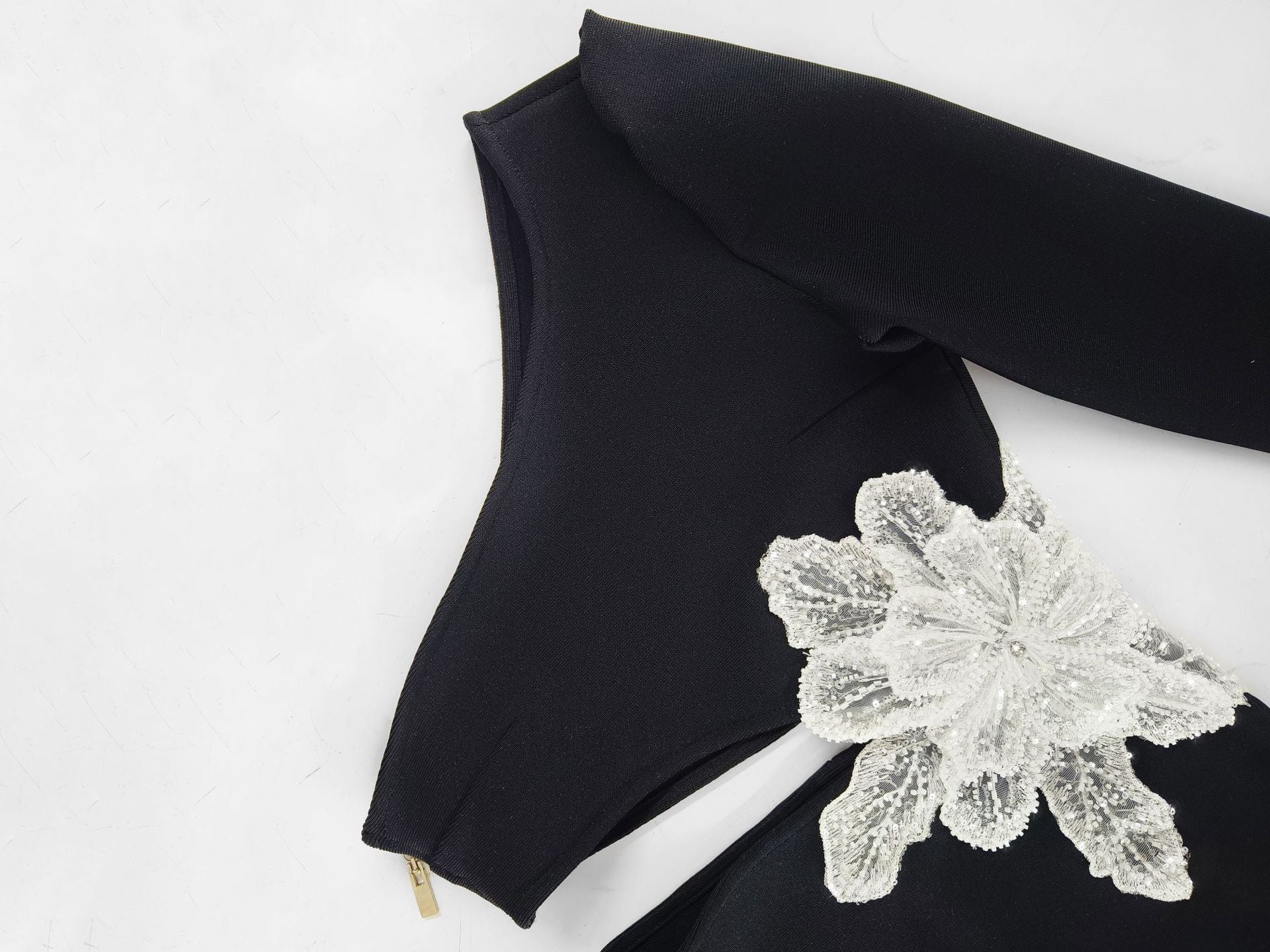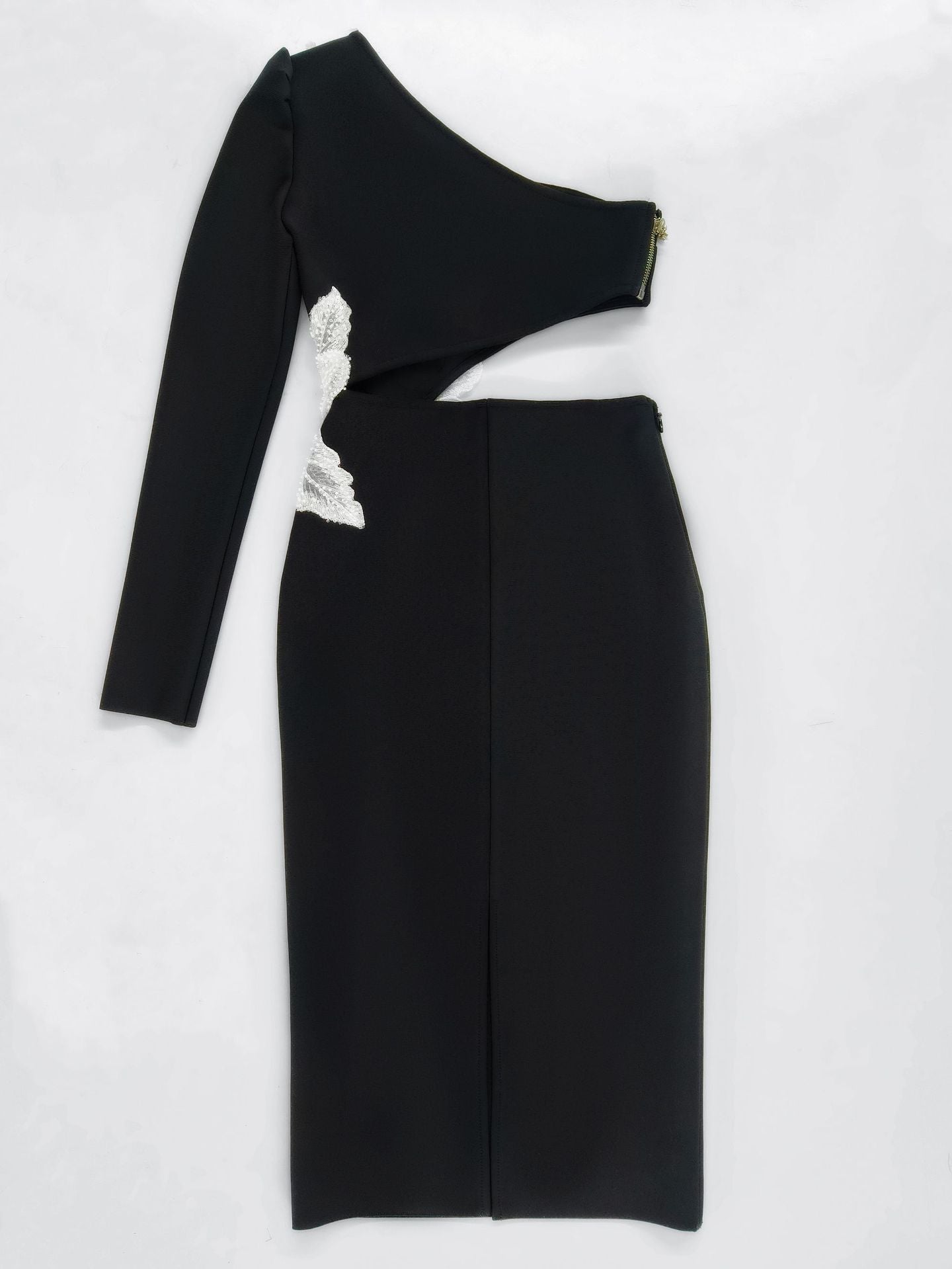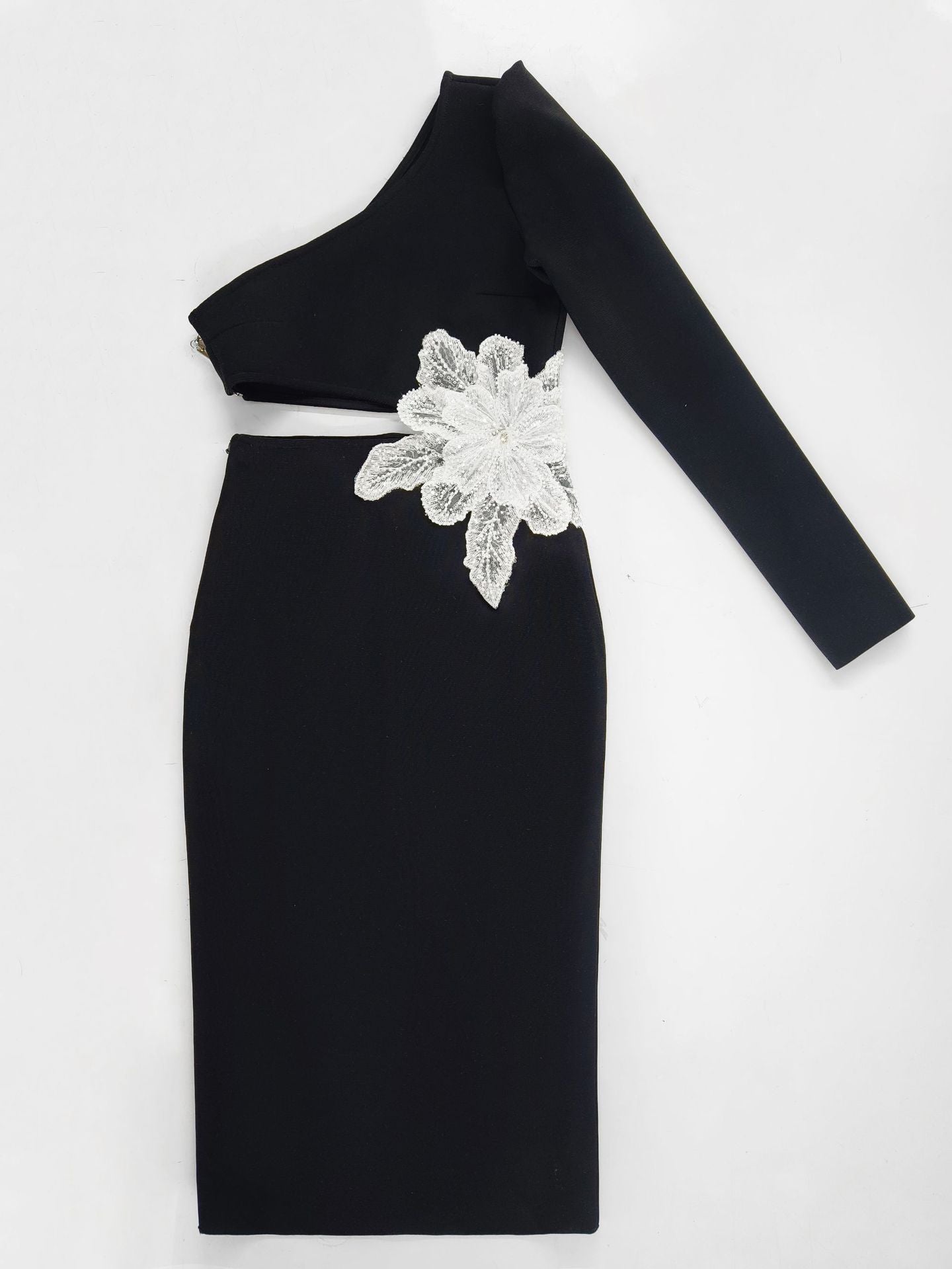 One Shoulder Long Sleeve Splicing Bodycon Set