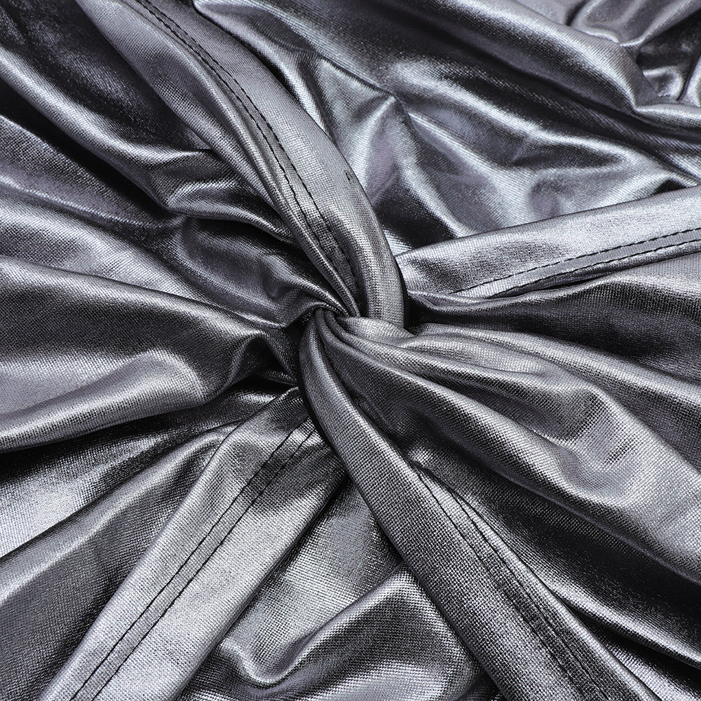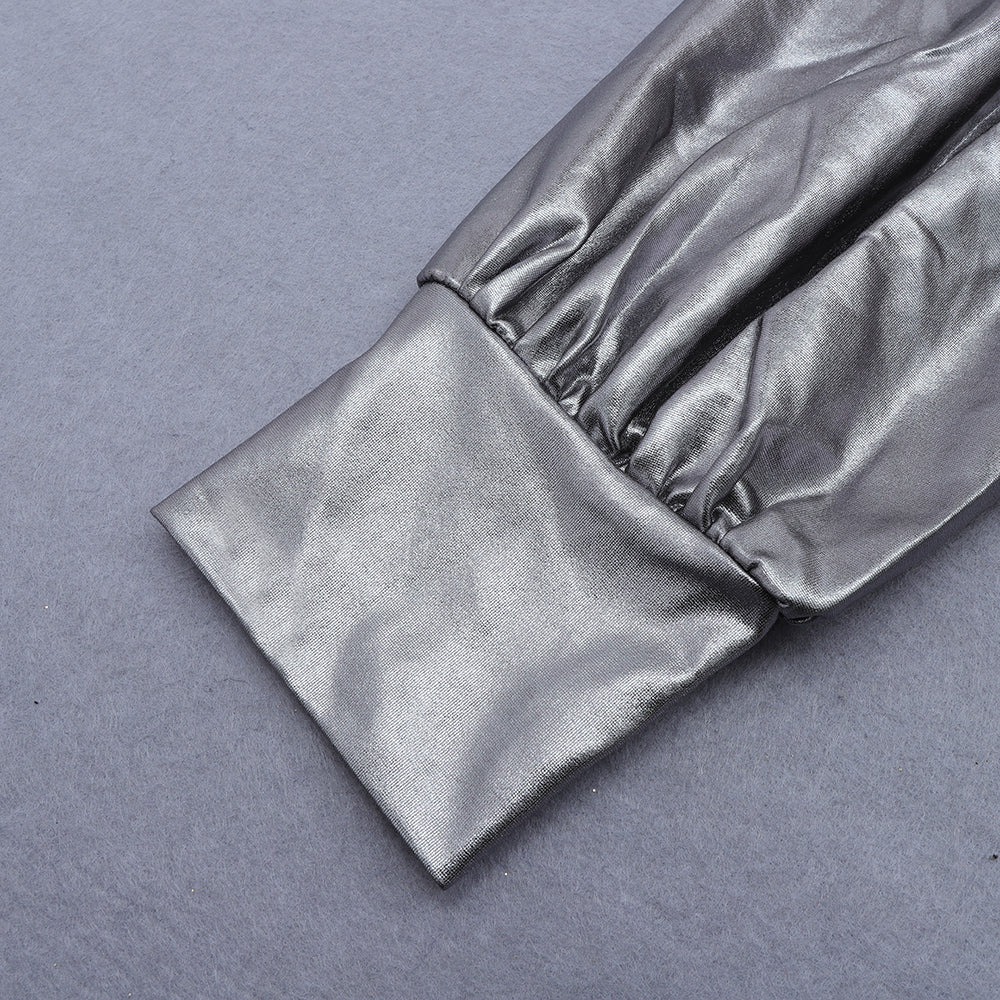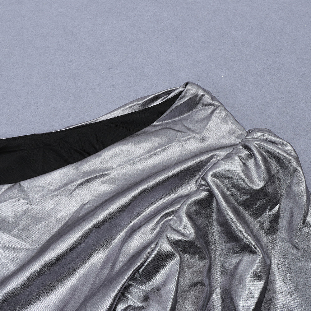 One Shoulder Long Sleeve Wrinkled Mini Bodycon Dress
