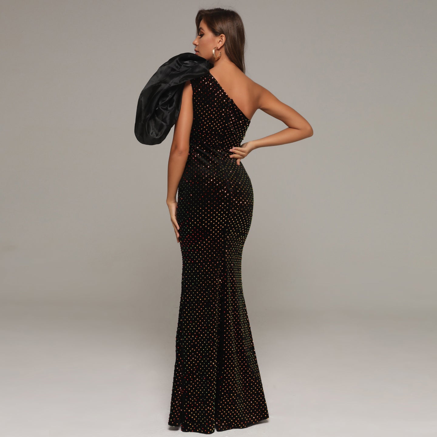 One Shoulder Short Sleeve Asymmetrical Maxi Prom Dress