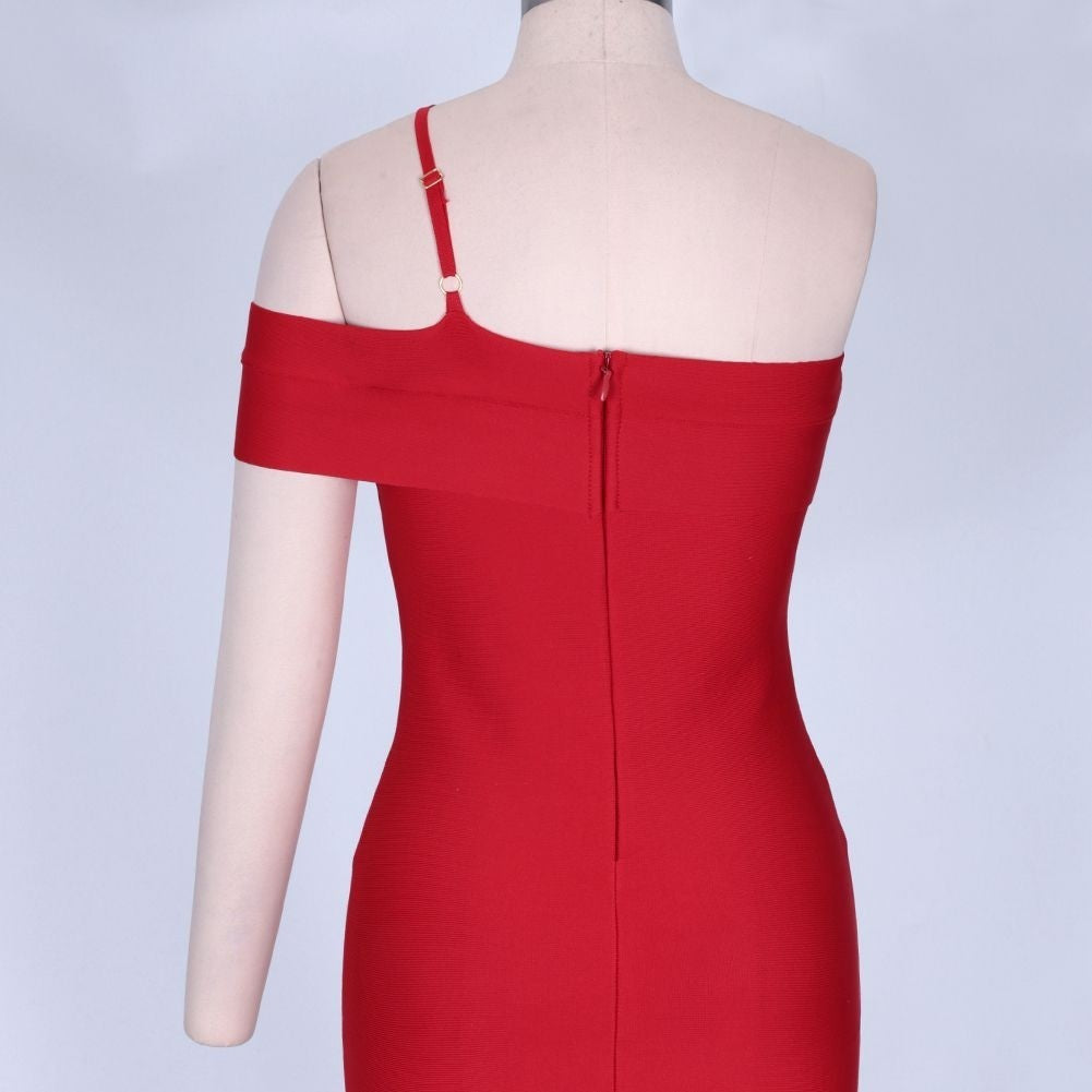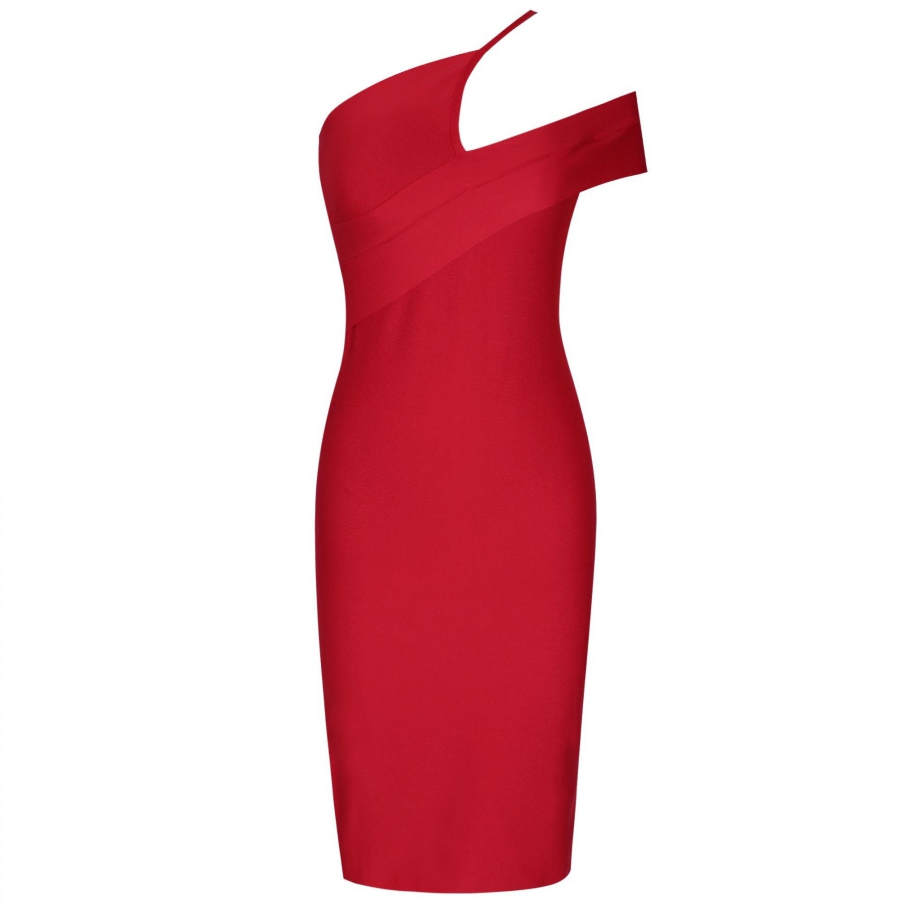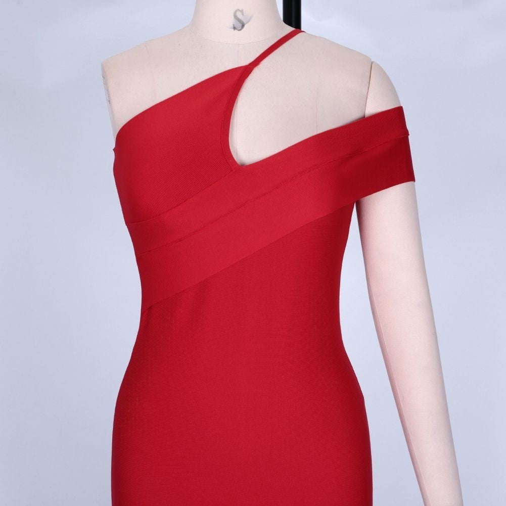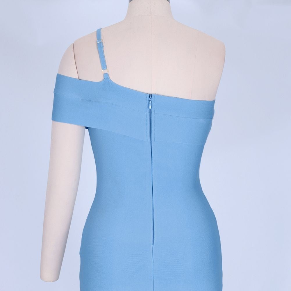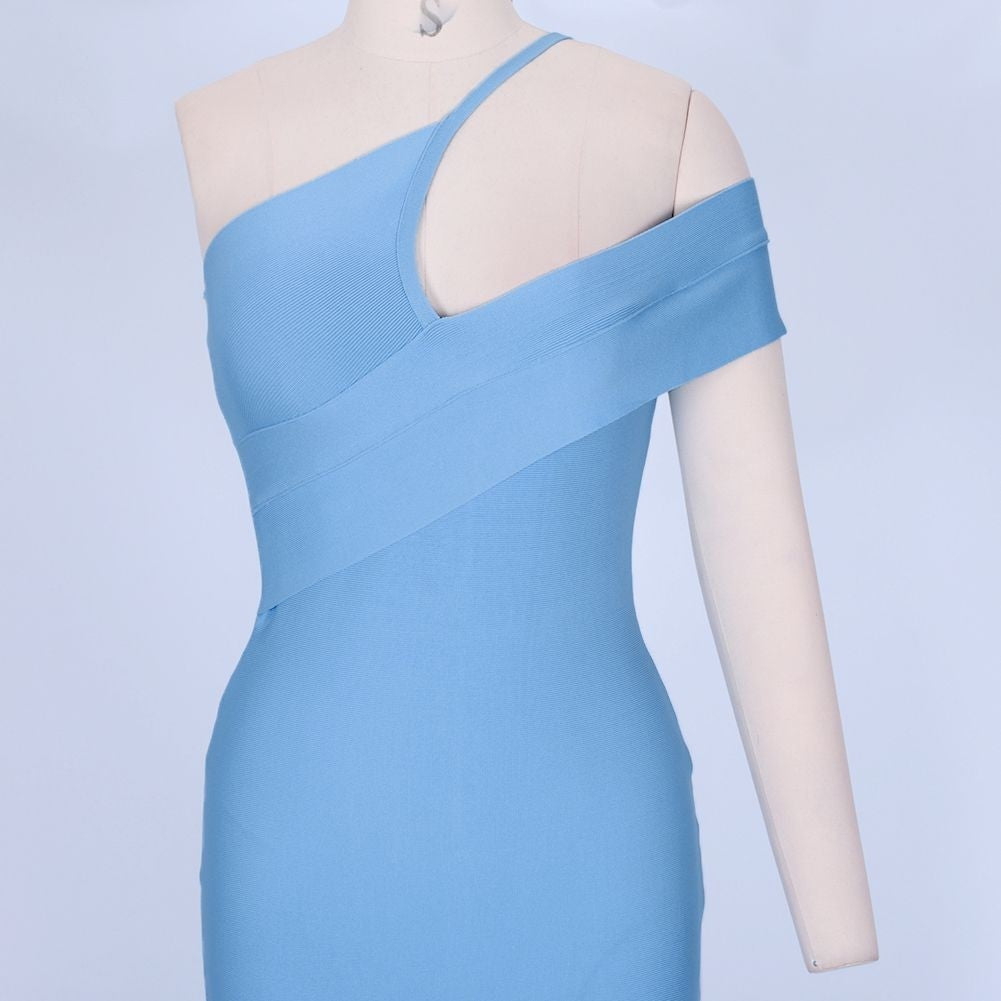 One Shoulder Short Sleeve Asymmetrical Over Knee Bandage Dress PZ19198