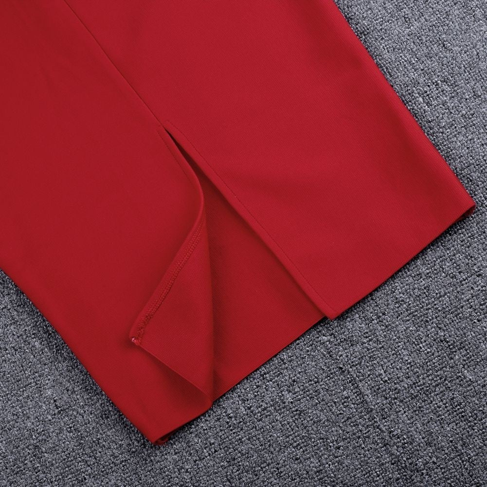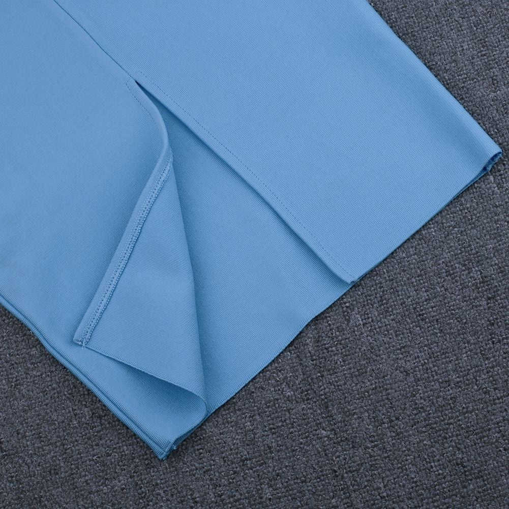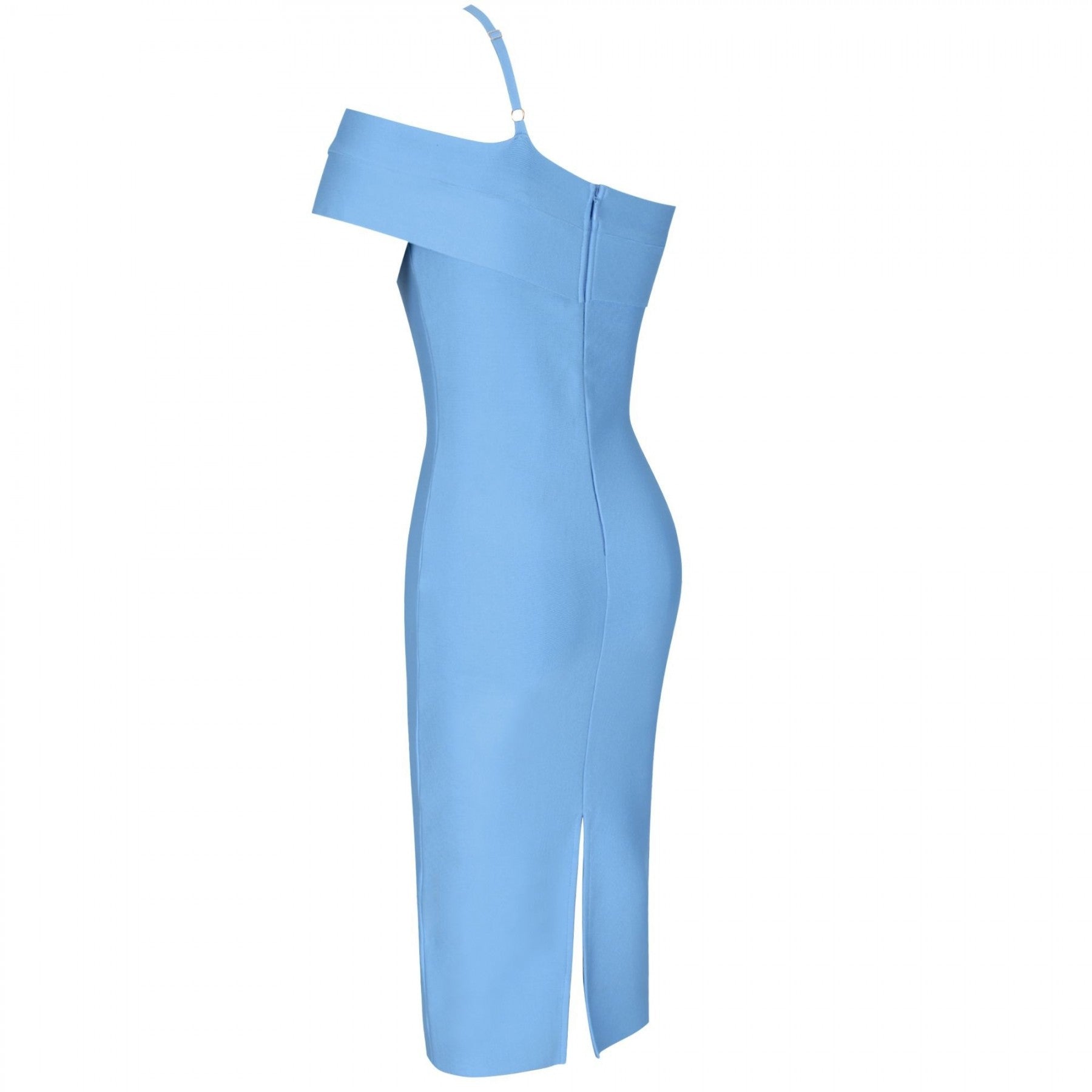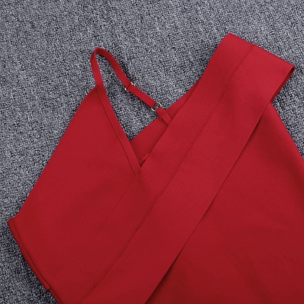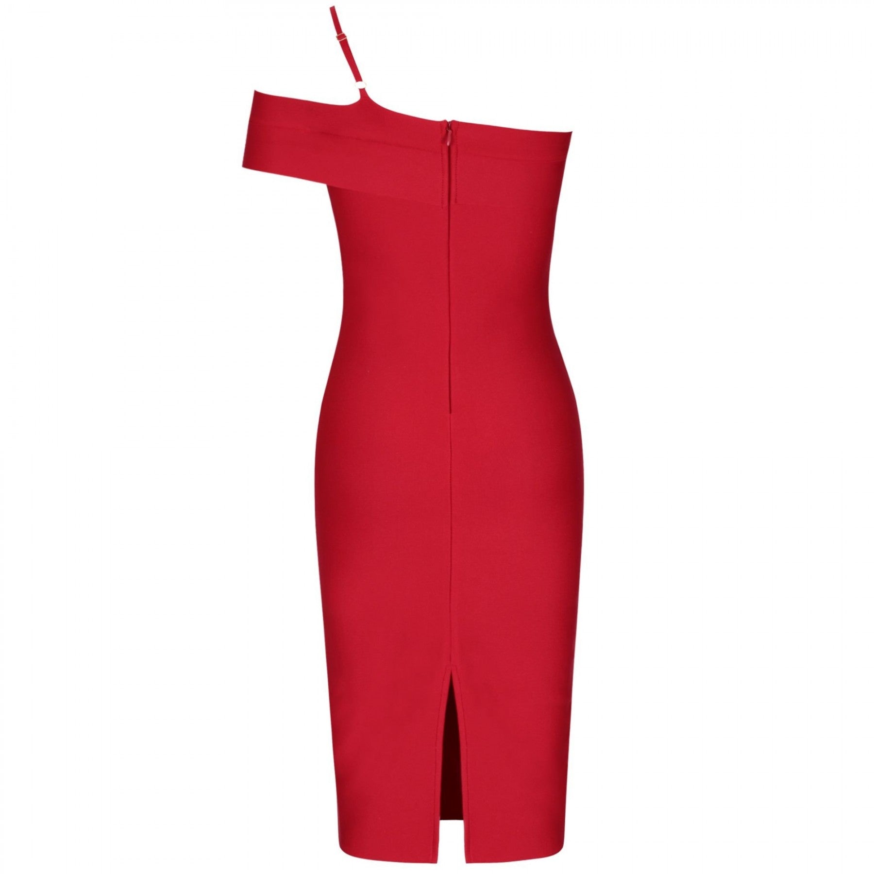One Shoulder Short Sleeve Asymmetrical Over Knee Bandage Dress PZ19198