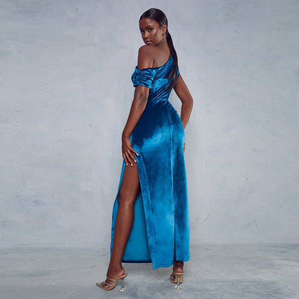 One Shoulder Short Sleeve Maxi Exposed Waist Bodycon Dress