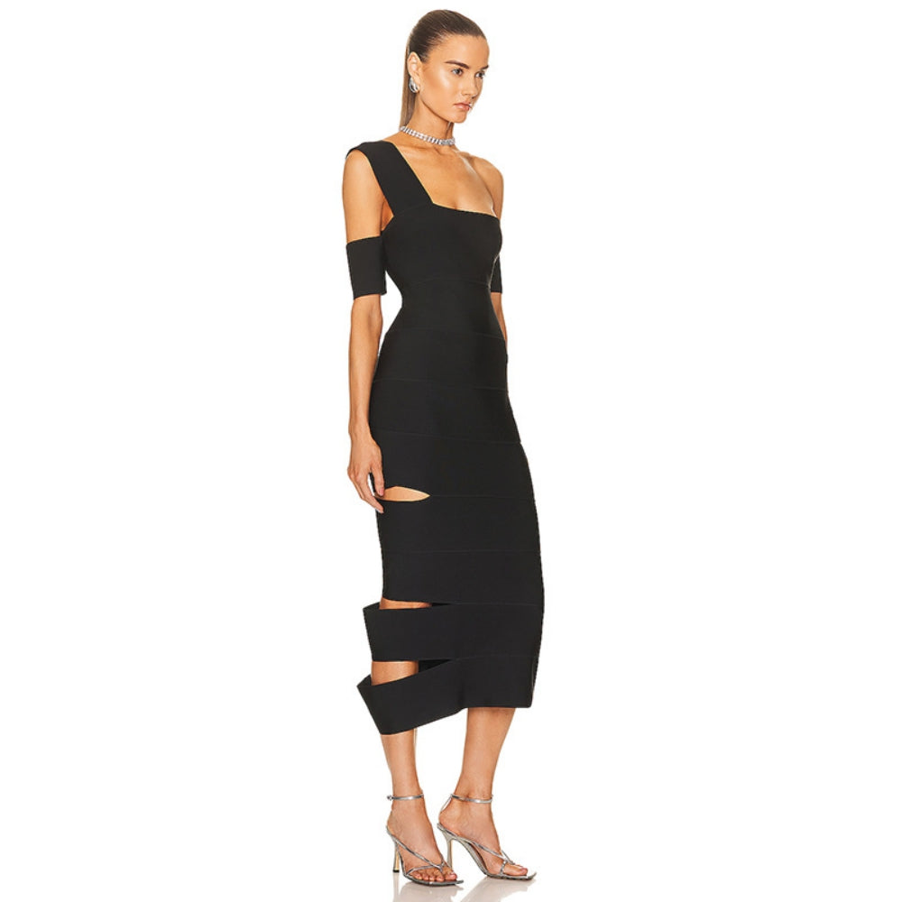 One Shoulder Short Sleeve Midi Cut Out Bodycon Dress