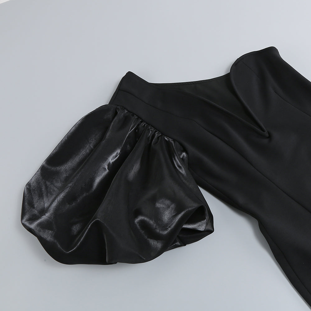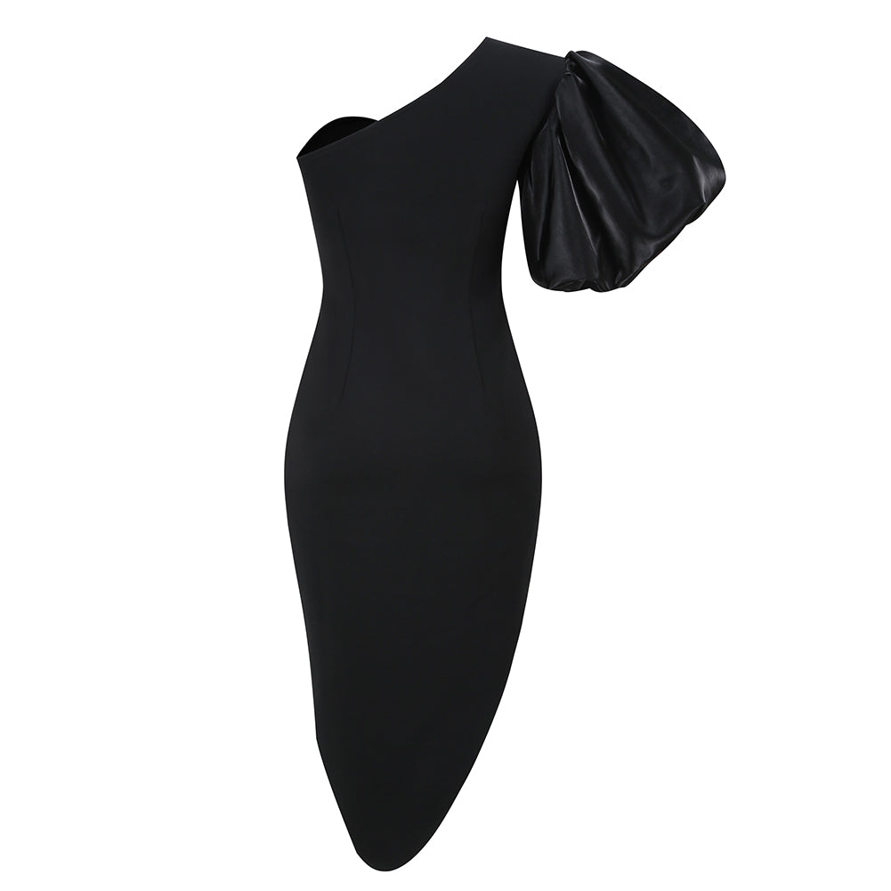 One Shoulder Short Sleeve Midi Puff Sleeve Bodycon Dress