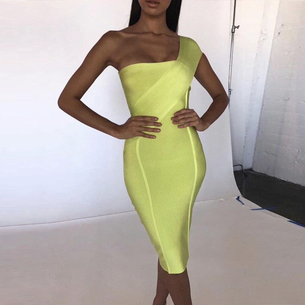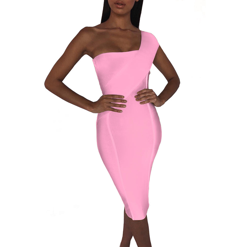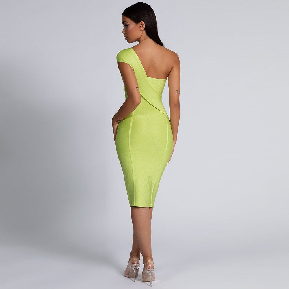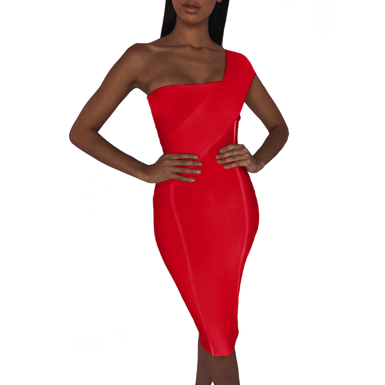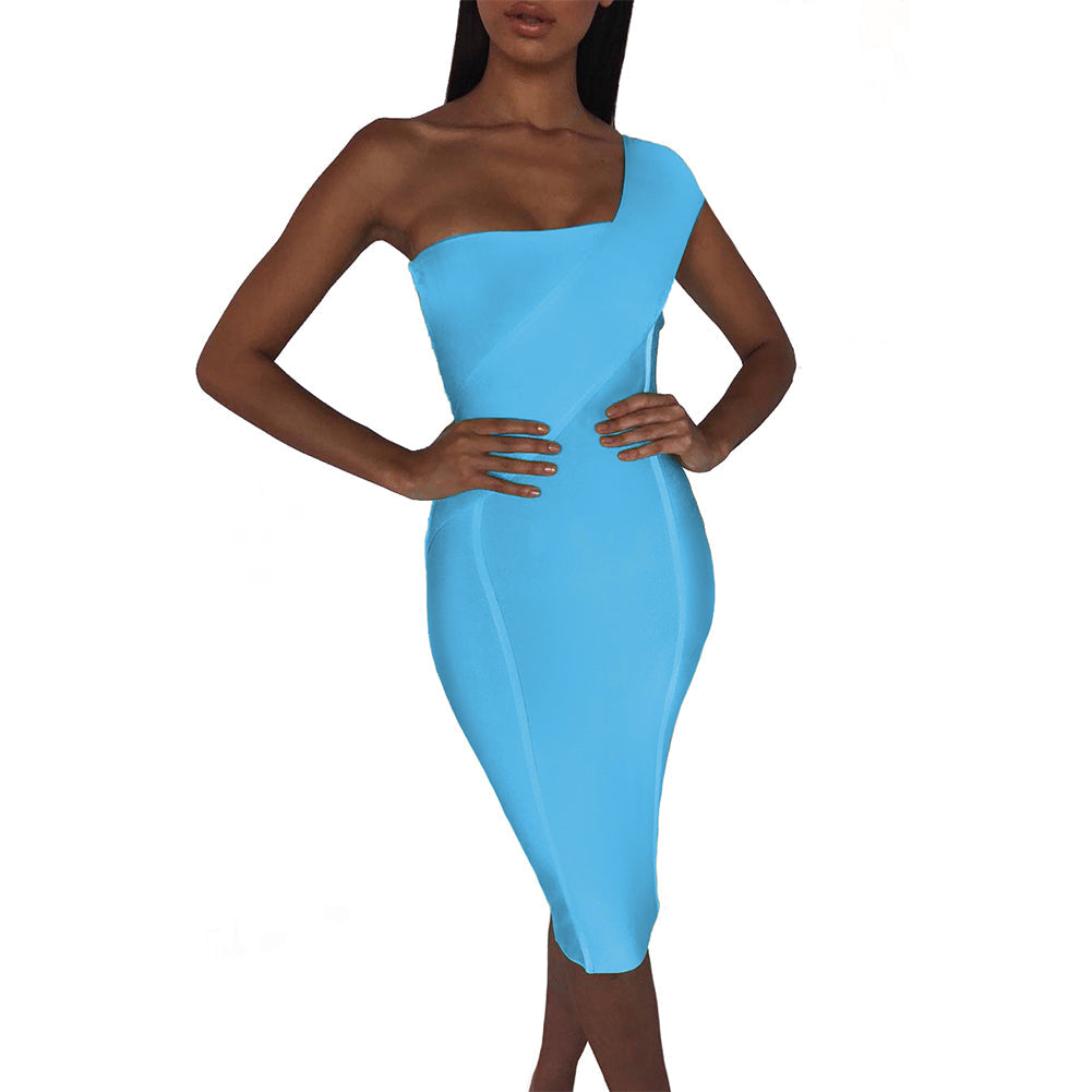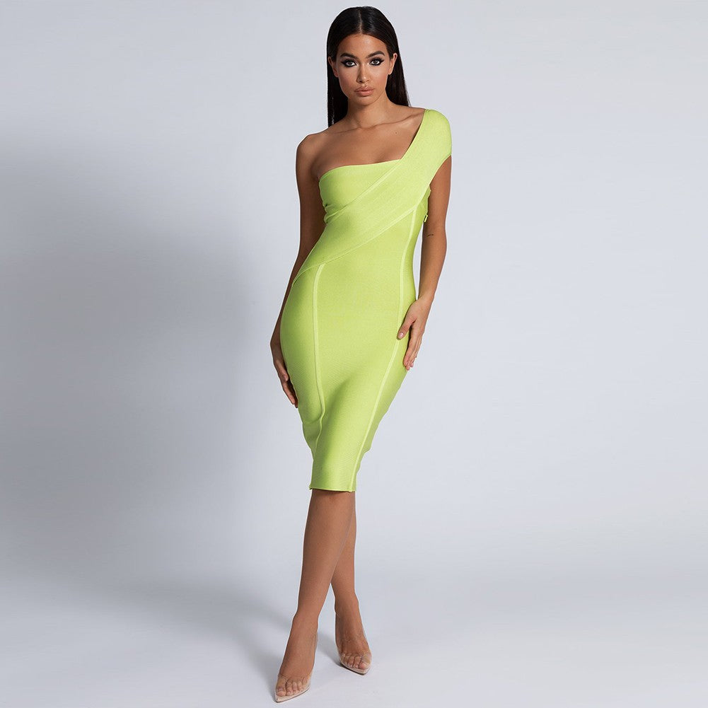 One Shoulder Asymmetrical Over Knee Bandage Dress