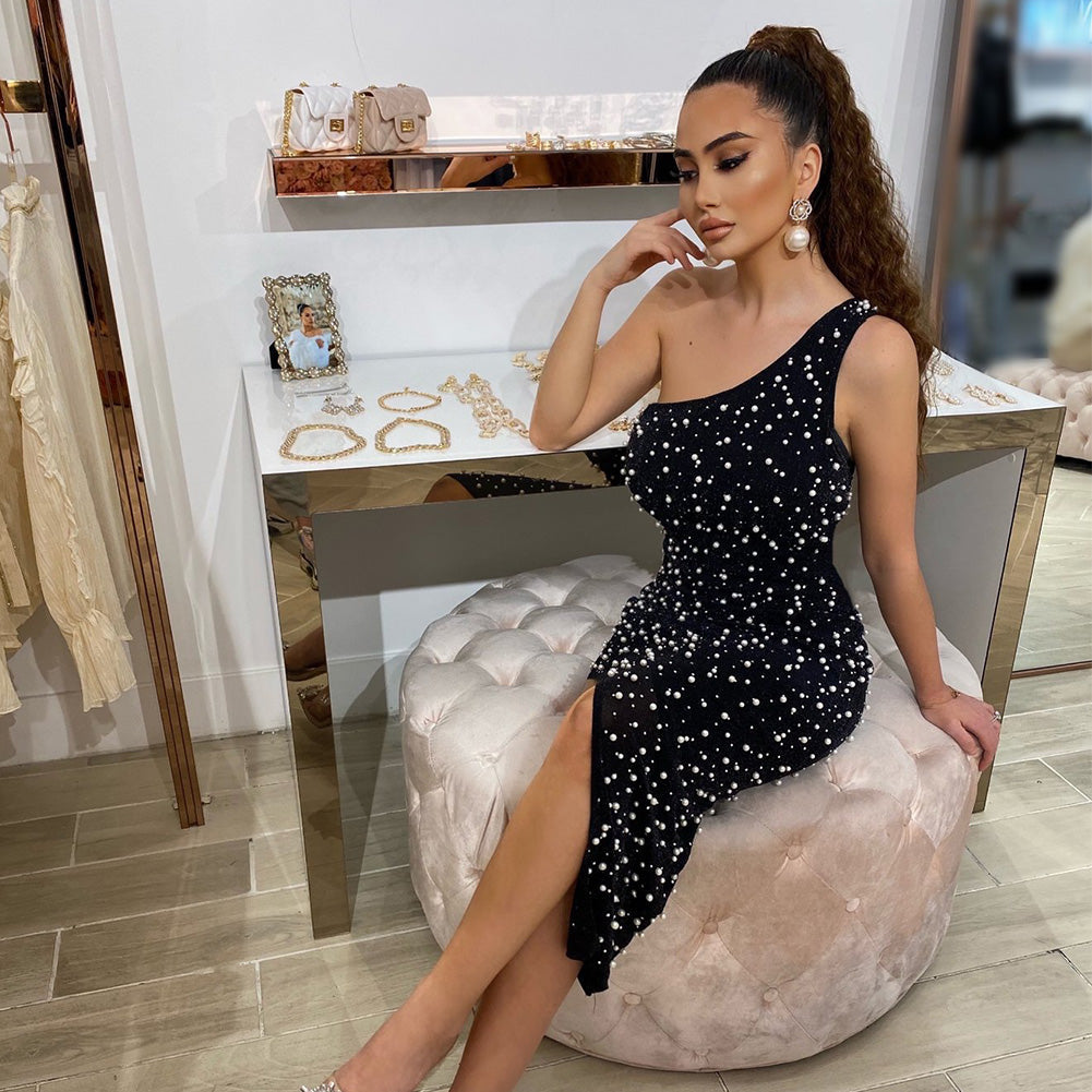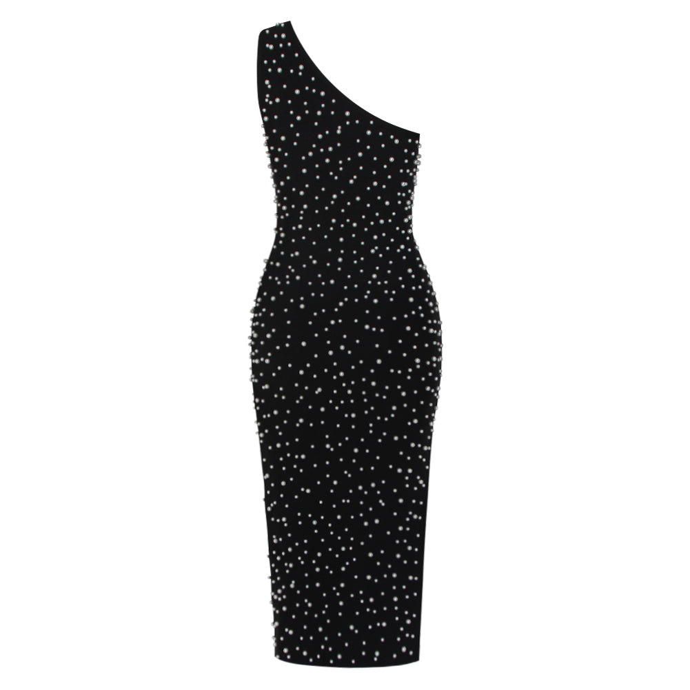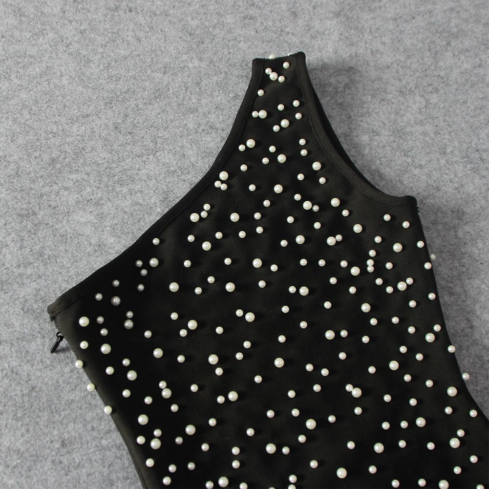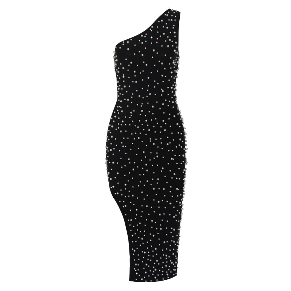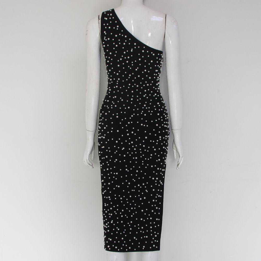 One Shoulder Sleeveless Bubble Beads Over Knee Bandage Dress